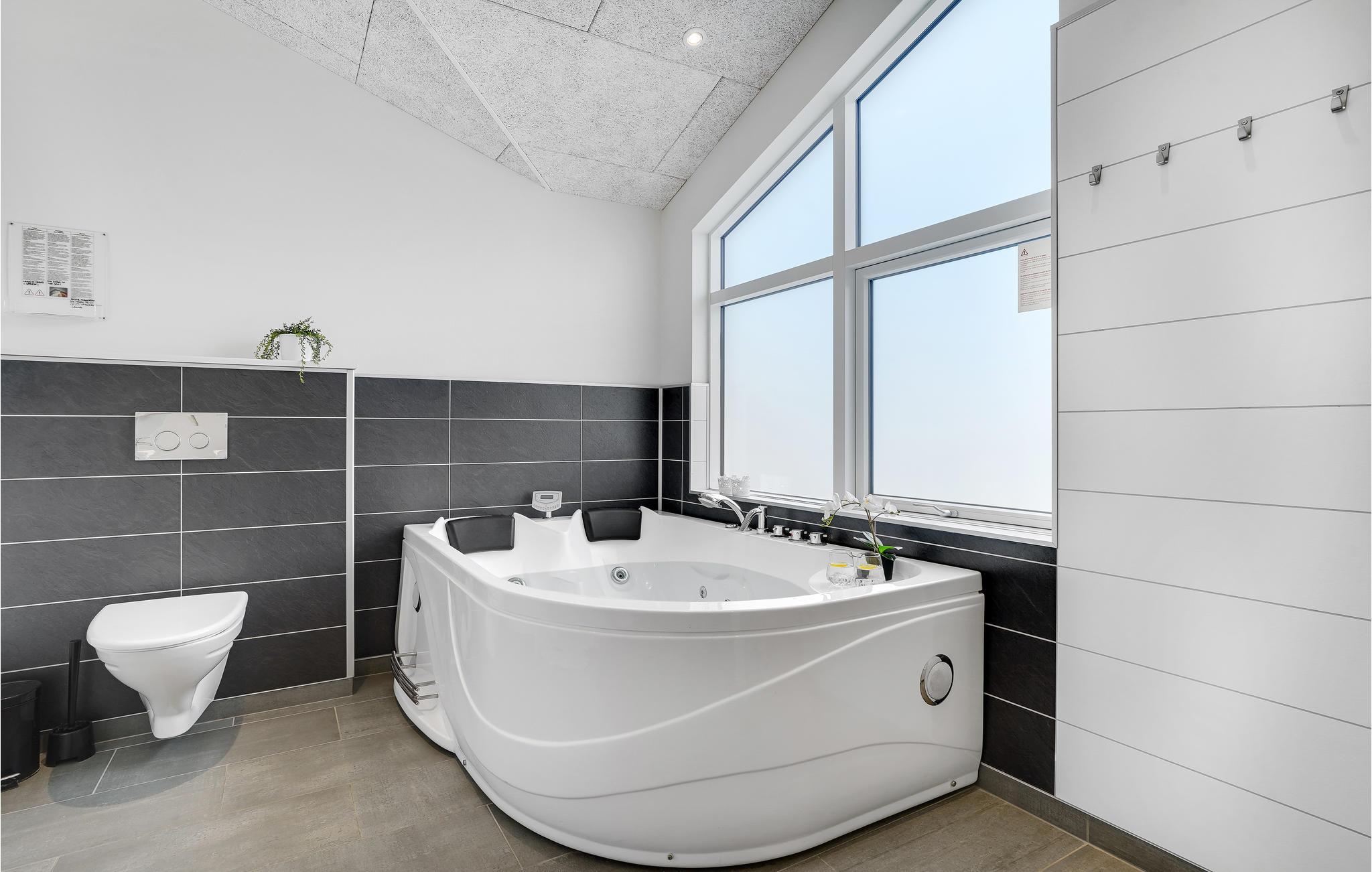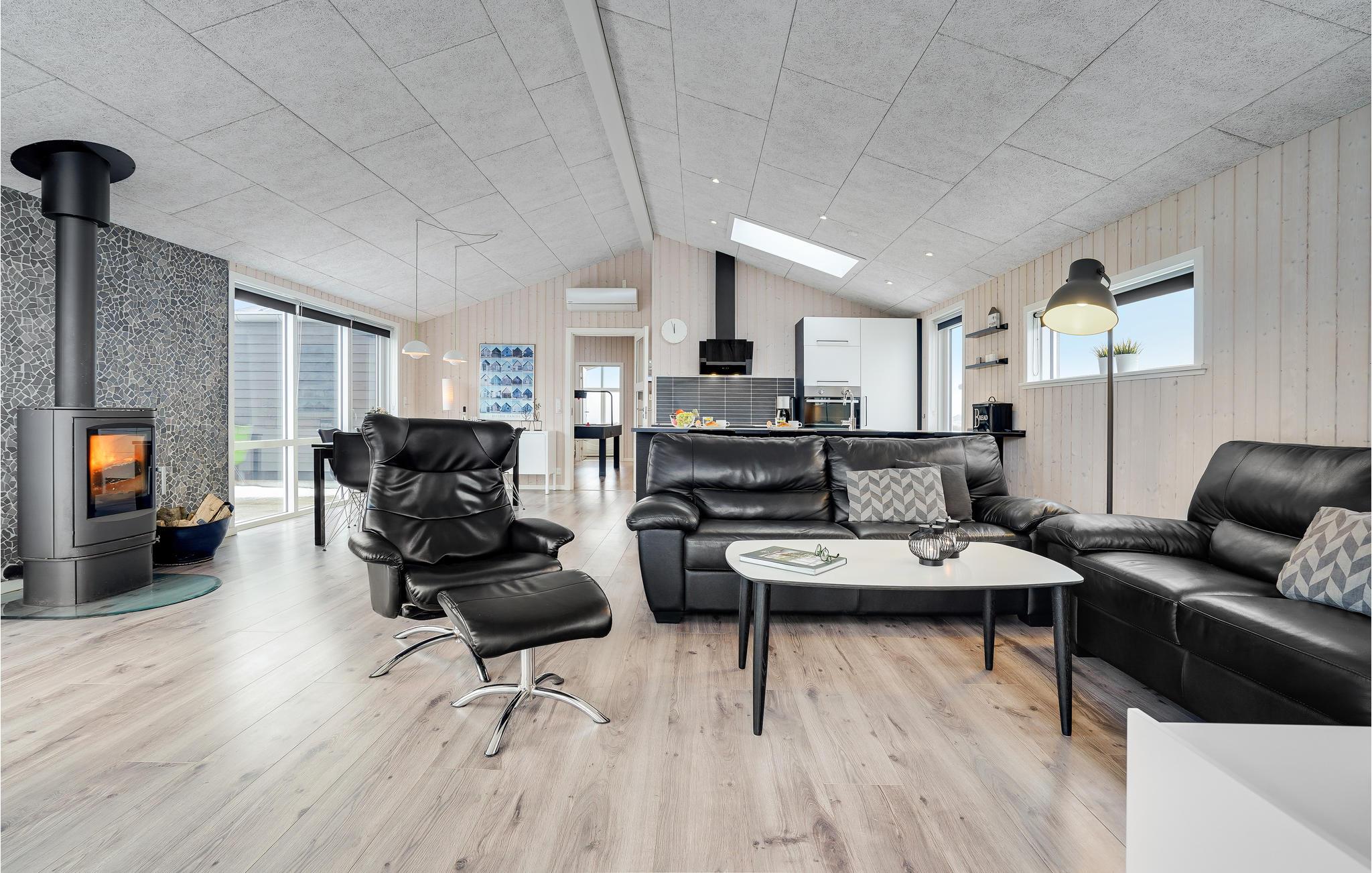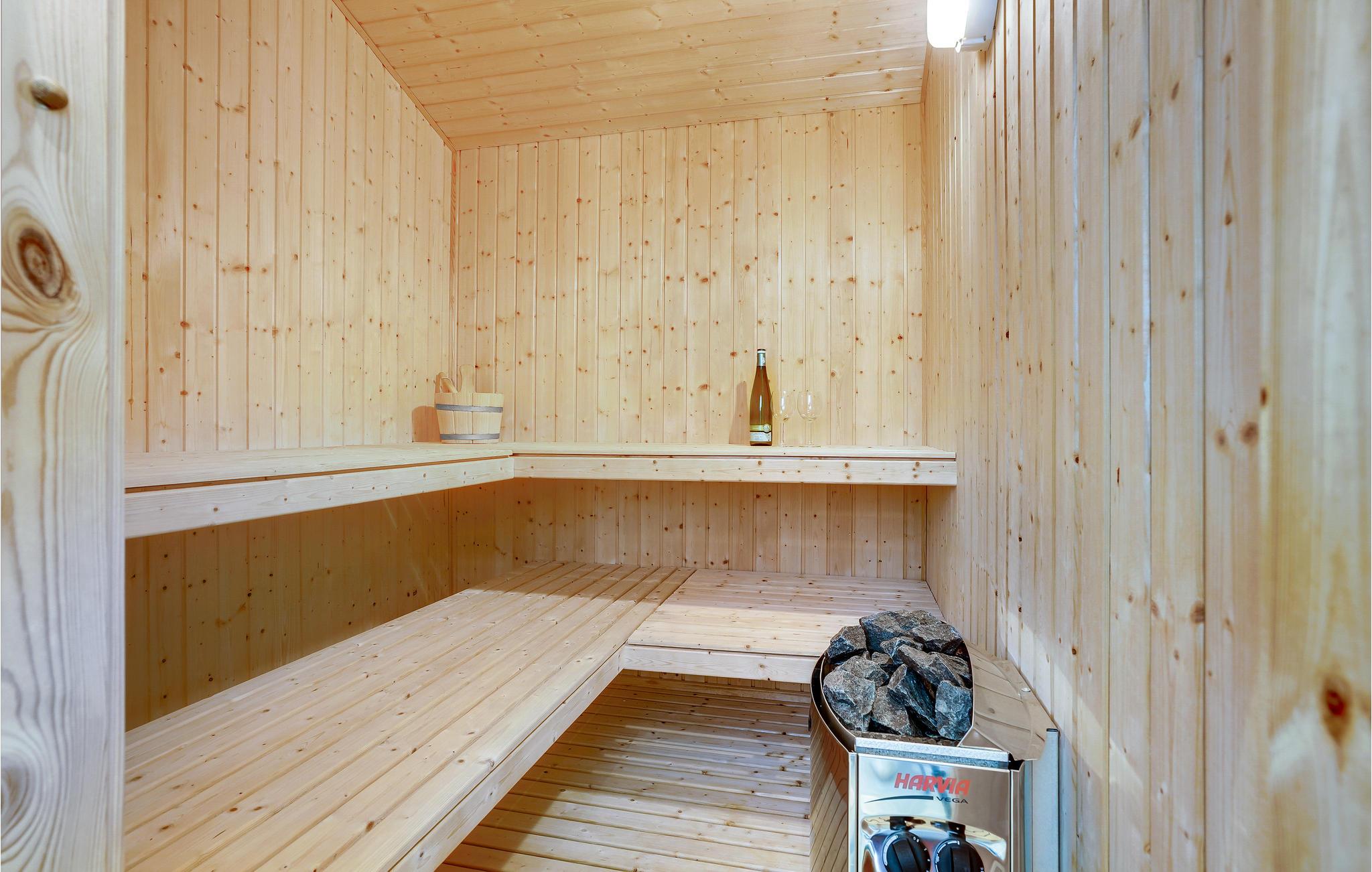 Det rummelige lyse køkken og den hyggelig stue er omkranset af store vinduespartier, som lukker naturen ind i huset. Huset har tre fine soveværelser som indeholder to dobbeltsenge og to enkeltsenge. I huset er der desuden to lyse badeværelser. I har også rig mulighed for at nyde afslappende wellness i spabadet og den rummelige sauna, ligesom I kan hygge jer med et spil airhockey i aktivitetetsrummet.