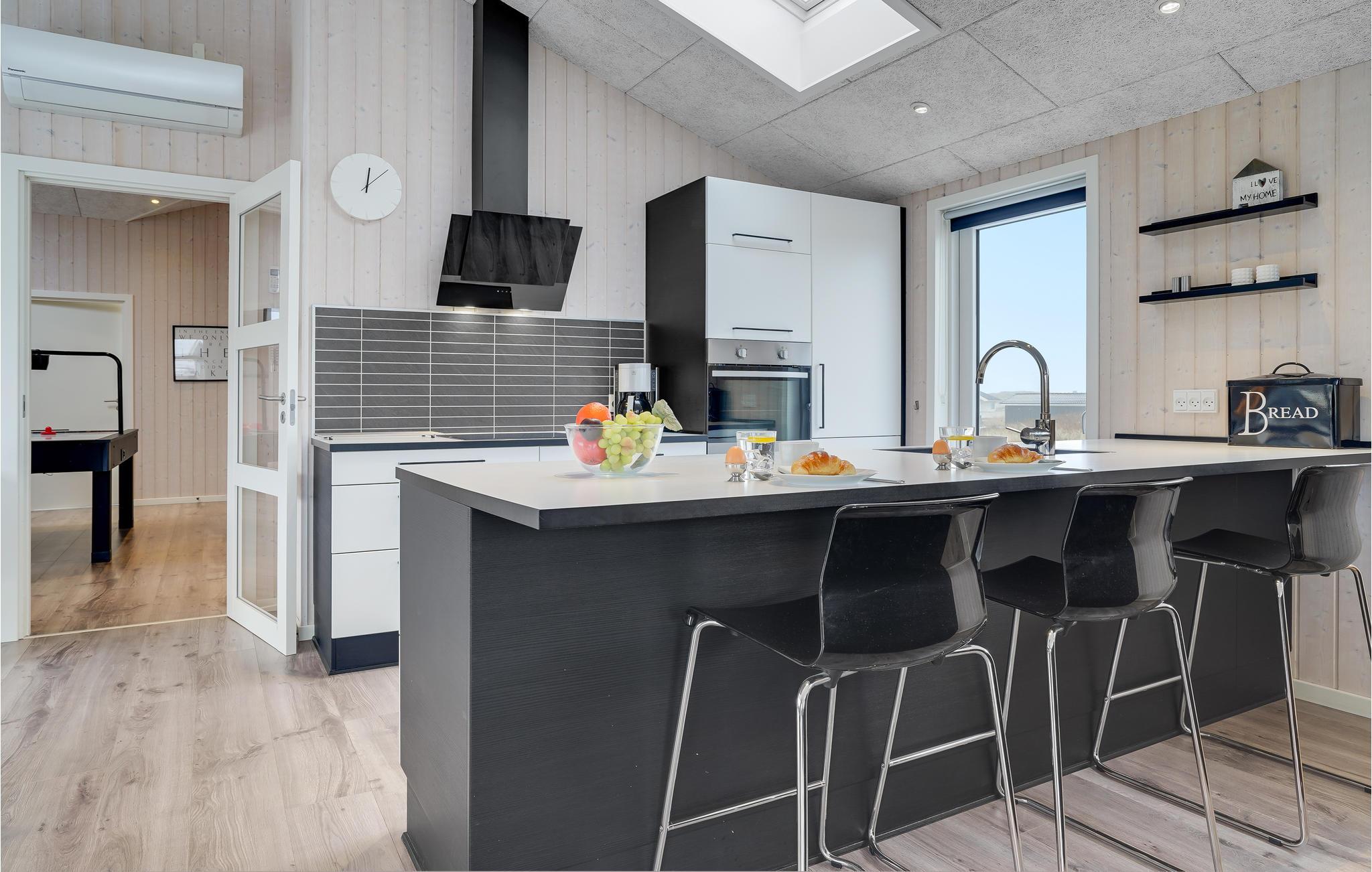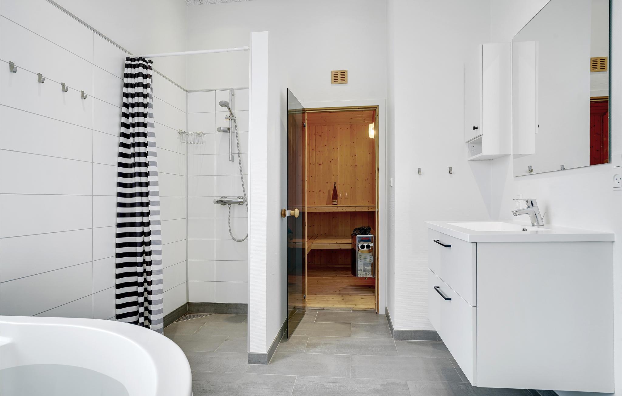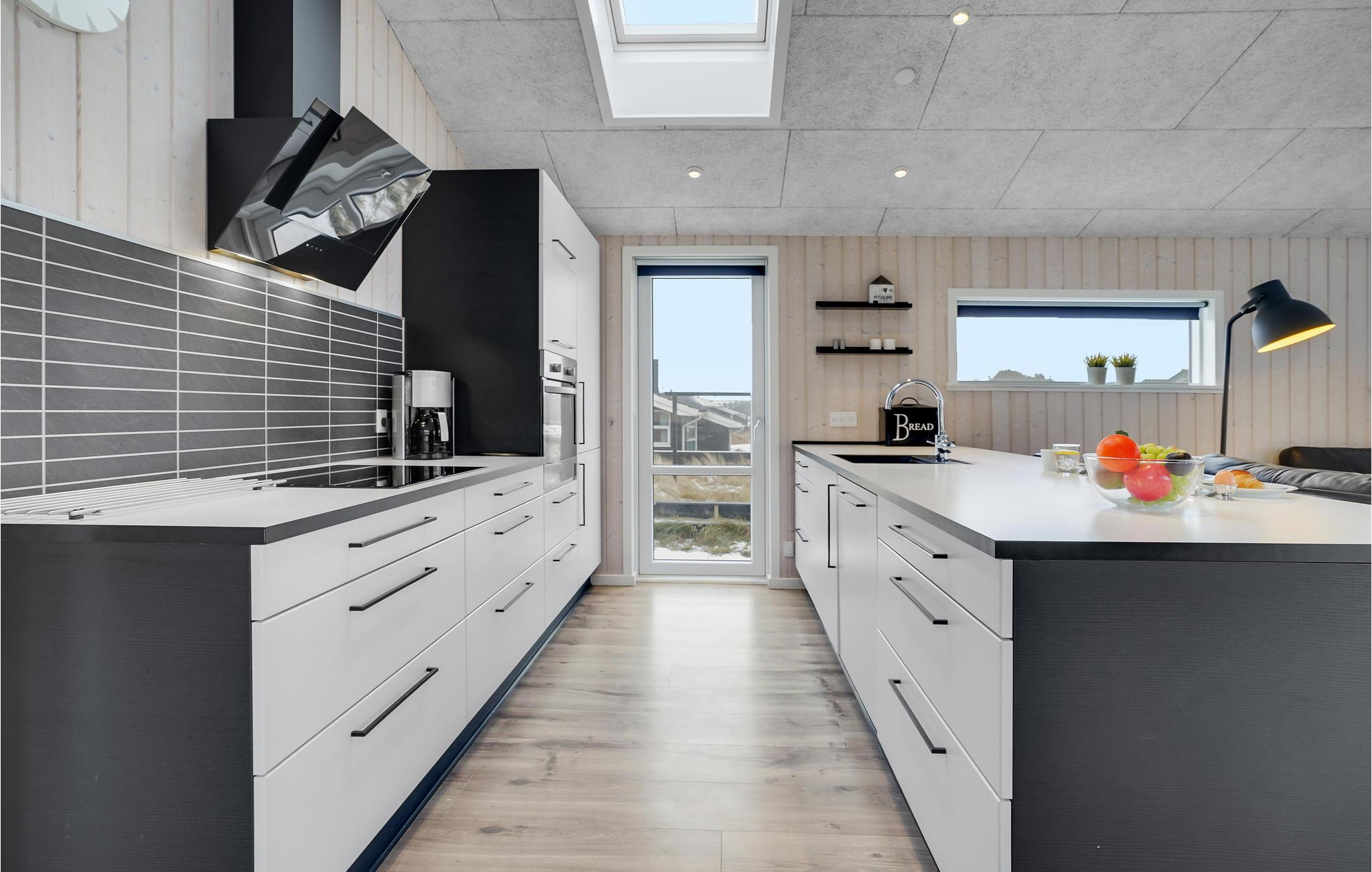 Det rummelige lyse køkken og den hyggelig stue er omkranset af store vinduespartier, som lukker naturen ind i huset. Huset har tre fine soveværelser som indeholder to dobbeltsenge og to enkeltsenge. I huset er der desuden to lyse badeværelser. I har også rig mulighed for at nyde afslappende wellness i spabadet og den rummelige sauna, ligesom I kan hygge jer med et spil airhockey i aktivitetetsrummet.