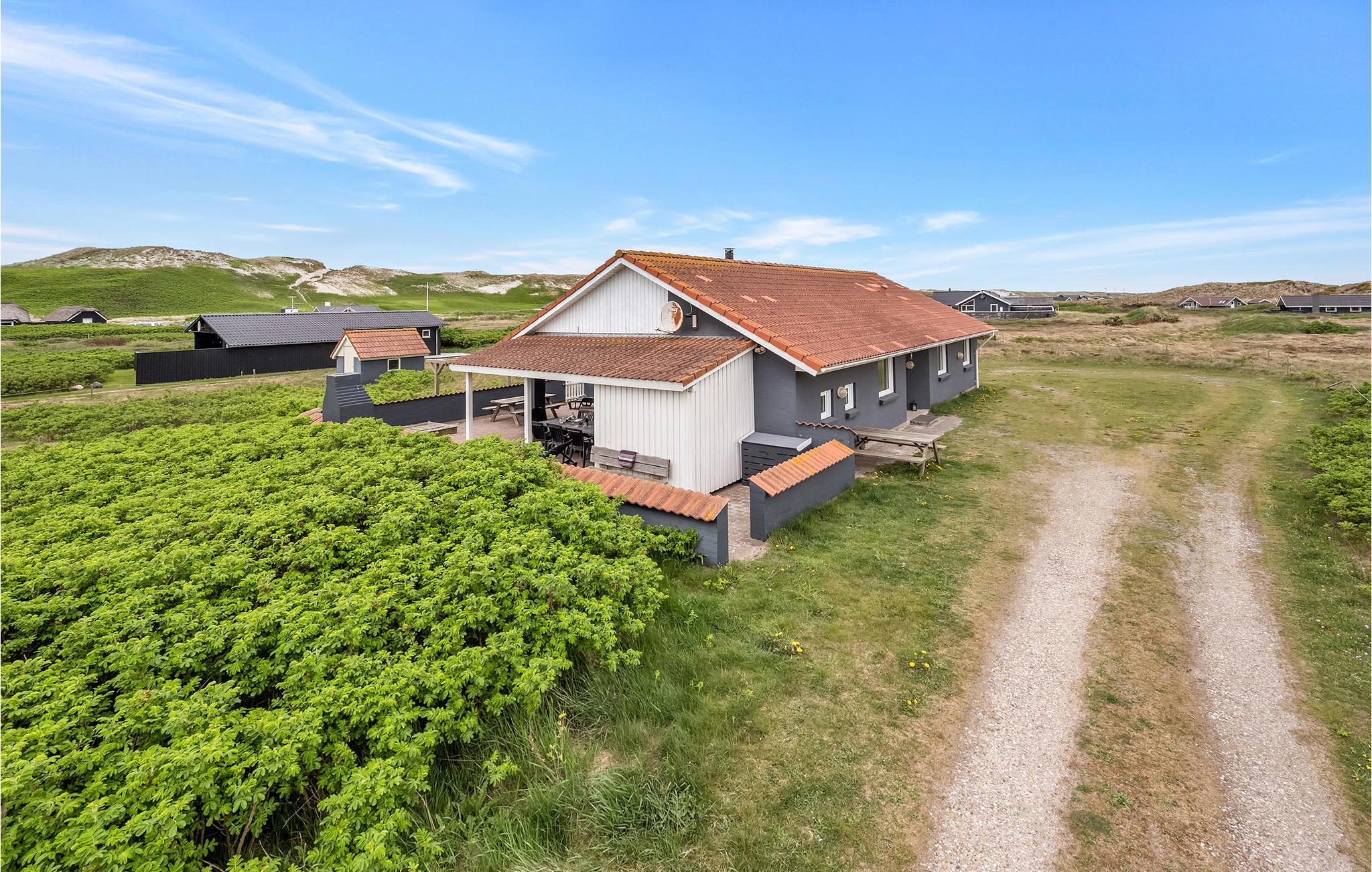 Et hyggeligt sommerhus beliggende på en skøn naturgrund i Årgab kun 200 m fra strand og klit. Der er en fantastisk udsigt fra huset og terrassen ud over klitlandskabet. Indendørs er huset velindrettet med køkken, stue og spisestue i åben forbindelse med hinanden, her er god plads til madlavning, en dejlig middag, spil, tv og hygge foran den knitrende brændeovn. Fra stuen har I et dejligt kig til terrassen med en åben pejs. Huset tilbyder desuden fire gode soveværelser og et dejligt badeværelse med spabad, sauna og gulvvarme samt et gæstetoilet ligeledes med gulvvarme. Ude på naturgrunden er der både en sandkasse og en gynge til de yngste feriegæster.