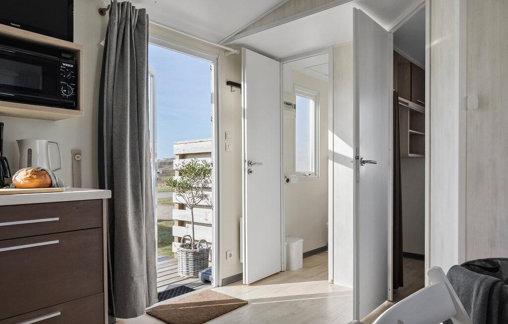 I kan høre havets brusen, uanset hvor I opholder jer på pladsen, for disse hytter er kun adskilt fra Vesterhavet af klitrækken, hvorfra der er en fantastisk udsigt til de uendeligt lange, hvide sandstrande og Vesterhavet på den ene side og Ringkøbing Fjord på den anden side. Her er masser af gratis aktiviteter dagen lang, f.eks. de populære børneaktiviteter, der samler børnene og giver venskaber - også efter ferien. Vil I surfe, cykle eller bade i havet, har I alle mulighederne på denne veludstyrede campingplads. I kan bade ganske gratis i det dejlige indendørs badeland på 1000 m2 med rutsjebane, sauna, dampbad og spa, så husk badetøjet!