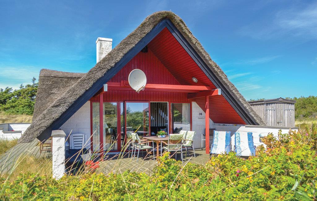 Dejligt sommerhus med stråtag på en stor og let kuperet klitgrund. Der er træ- og klinkegulve i hele huset så her er nemt at holde rent. Fra terrassen er der udsigt ned til klitterne, og det brusende Vesterhav kan både ses og duftes. Pak skovl, spand, solcreme og badehåndklæde og gå de få skridt ned til stranden hvor I kan tilbringe lange afslappede dage i den dejligt friske luft. I kan også besøge den smukke gamle by Ringkøbing med brostensbelagte gader og smukke gamle huse.