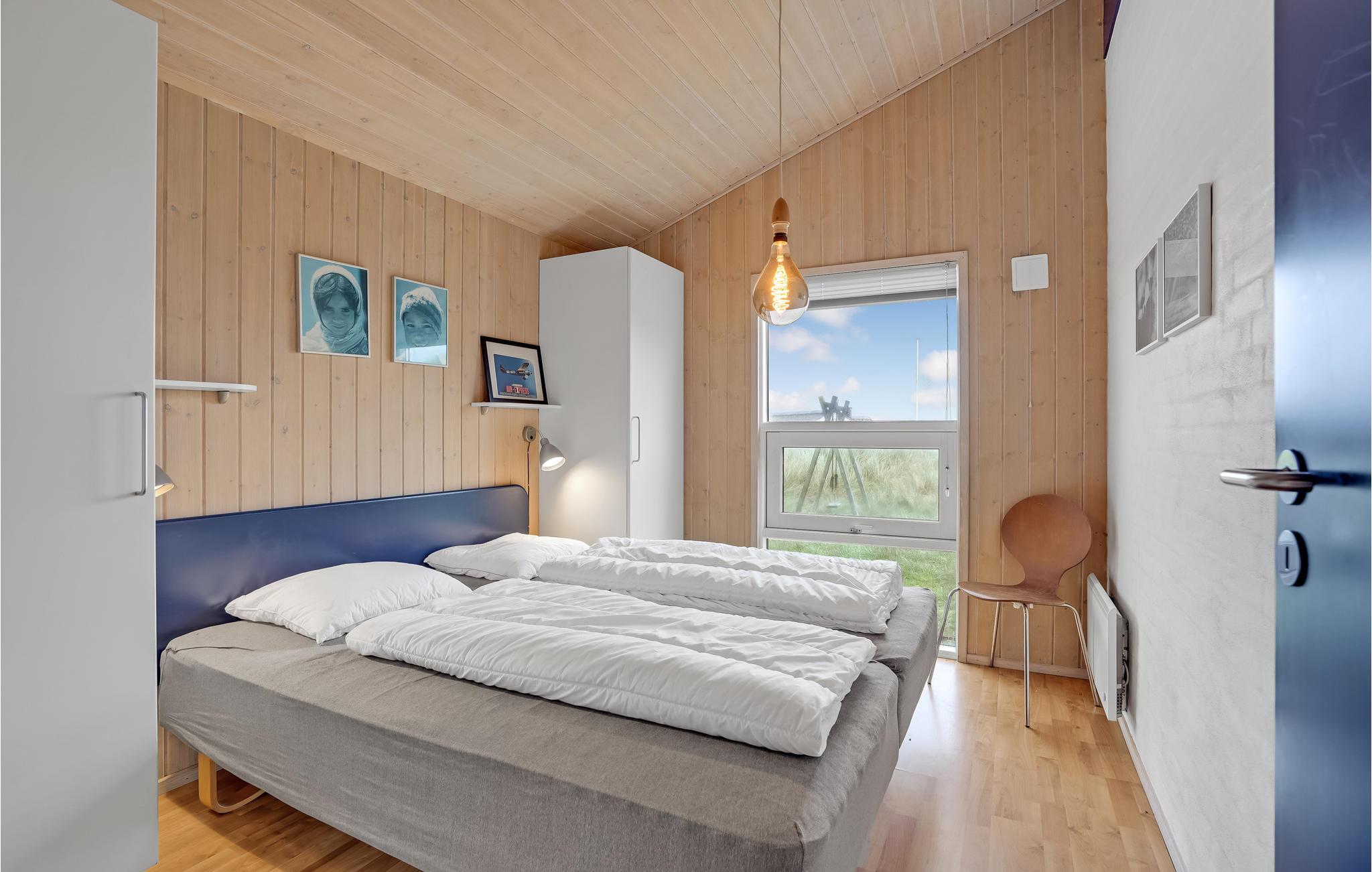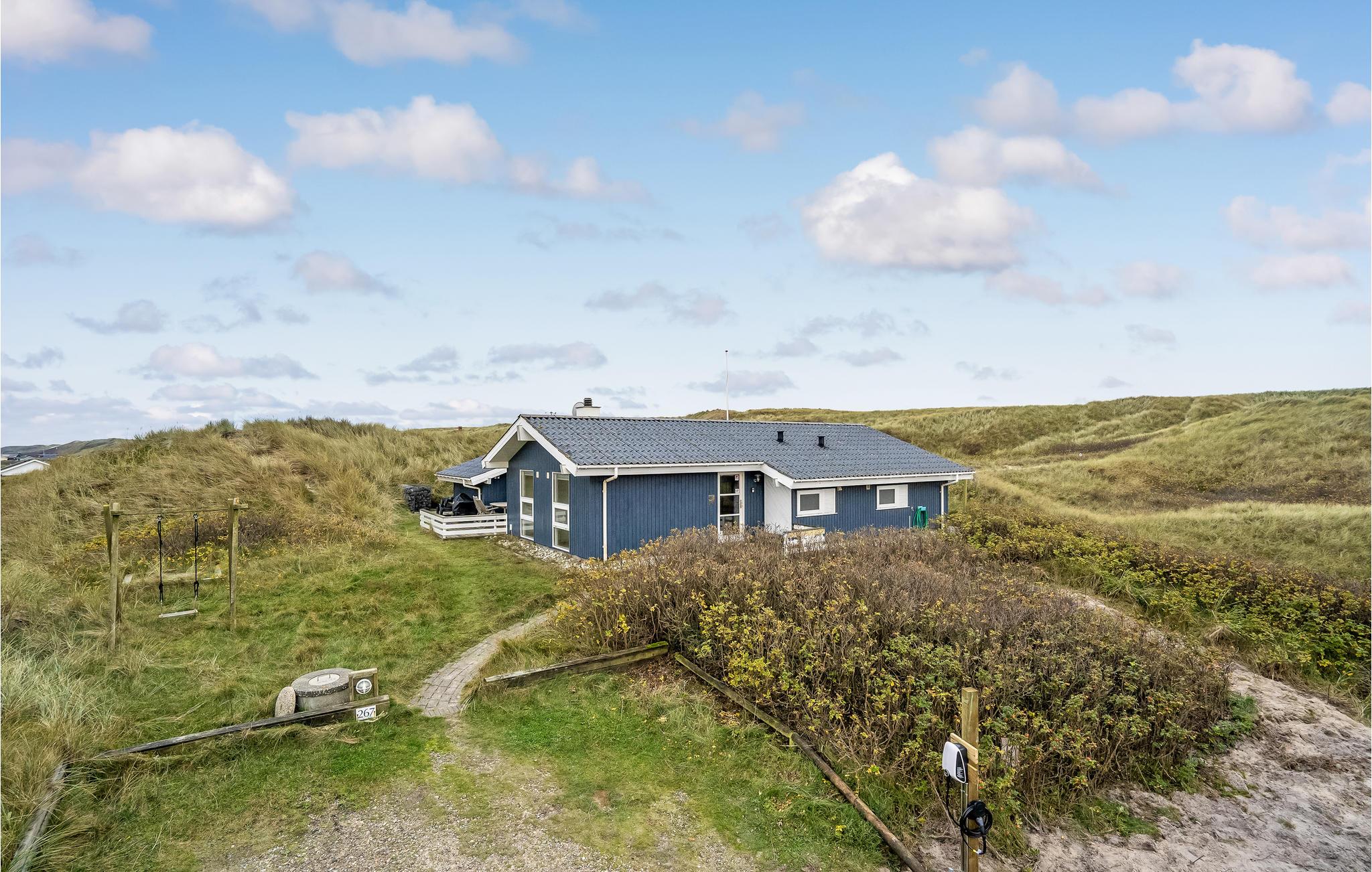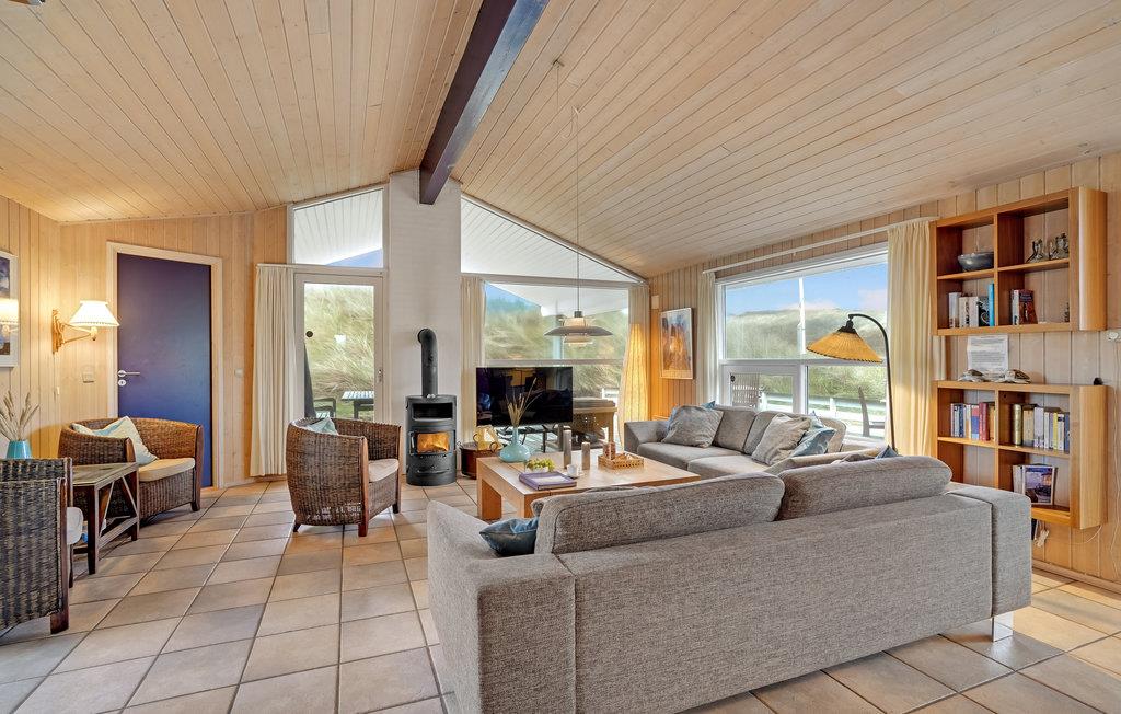 Med Vesterhavet som nærmeste nabo har denne perle af et feriehus en super beliggenhed på en stor kuperet klitgrund, hvorfra der over klitterne er direkte adgang til stranden. Huset passer flot ind i klitlandskabet. Fra den østvendte terrasse er der udsigt til Ringkøbing fjord og fra stuen og den vestvendte terrasse har I en smuk udsigt til klitterne. Huset er stort og flot indrettet med en hyggelig stue i direkte sammenhæng med køkkenet. I såvel køkken som stue er der klinkegulve med gulvvarme. Der er tre gode soveværelser, alle med dobbeltsenge og et stort og flot badeværelse med spabad og direkte adgang til saunaen. De gode sommerdage kan I nyde på terrassen, hvor der både er liggestole og solvogne. Der er redskabsrum til f.eks. cykler. Som et ekstra plus er der gratis trådløs internetopkobling (egen pc medbringes).