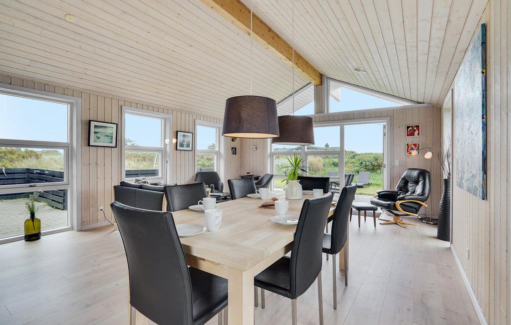 Dette hyggelige feriehus ligger i et af de mest populære områder på Holmsland Klit, med kort afstand til fiskeribyen Hvide Sande, Ringkøbing Fjord og Vesterhavet med de høje klitter, de friske bølger og den brede hvide sandstrand. Det åbne og smagfuldt indrettede opholdsrum afspejler feriens formål: Nærvær og samvær. De mange vinduer og det lyse træ skaber en lys og beroligende atmosfære. Udenfor indbyder den store naturgrund med flere legeredskaber til mange timers leg, ligesom terrasserne skaber den perfekte ramme om dagens måltider. Her kan I både finde sol og skygge. Sæt jer med en kop kaffe og en god bog, mens jeres børn leger på grunden.