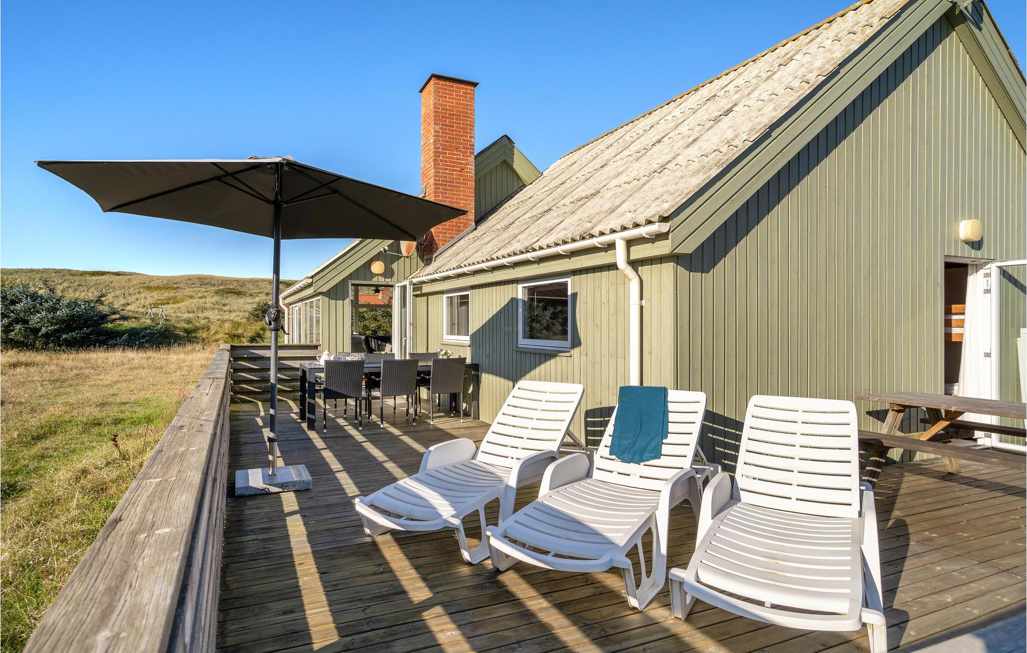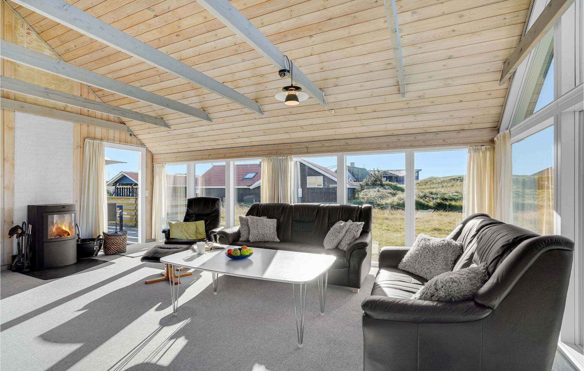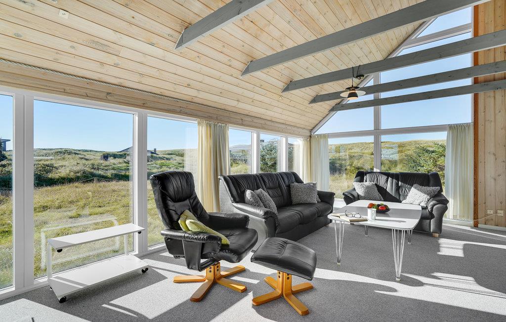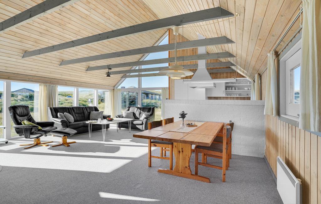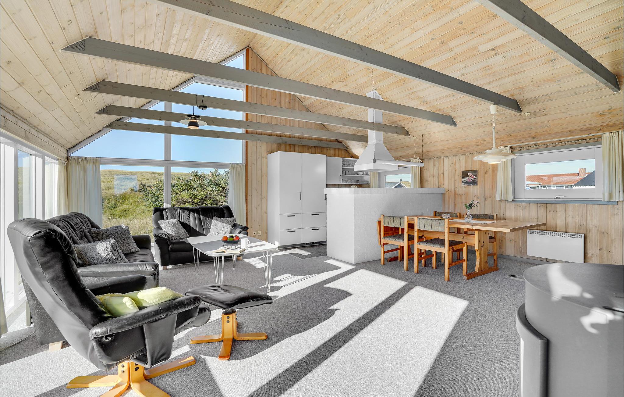 Velindrettet og hyggeligt feriehus beliggende på en naturgrund ikke langt fra Vesterhavet. De store vinduespartier i stuen giver ikke blot et dejligt lysindfald, men samtidig kan I sidde i stuen og nyde udsigten til klitterne. Lige bag klitterne venter den brede strand og de brusende bølger, hvis beroligende lyd kan nydes fra terrassen, som indbyder til både grill og solbadning. Uanset årstid er en tur i saunaen den perfekte afslutning på en lang gåtur i den smukke natur, som er lige uden for døren.