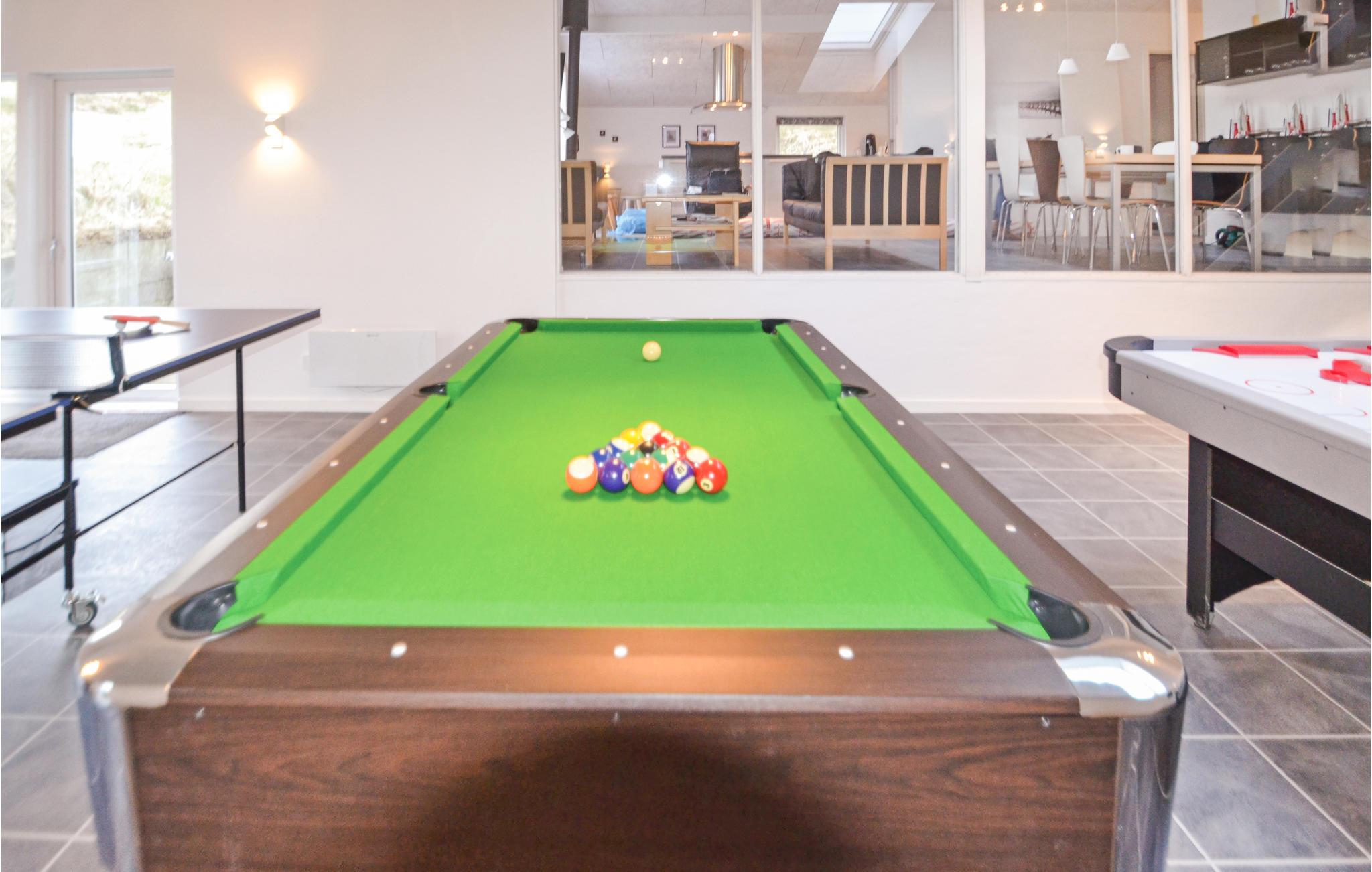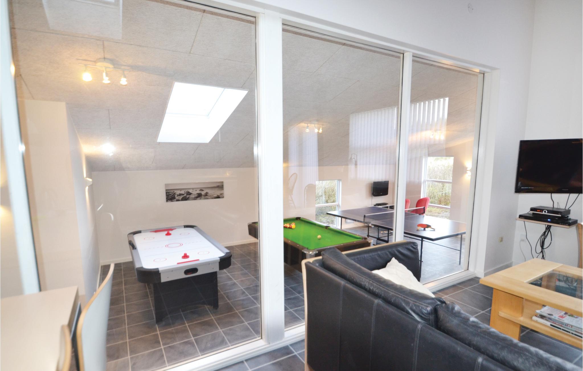 Med pragtfuld udsigt over Ringkøbing Fjord, smukke klittoppe, og den skønne solnedgang i vest ligger dette dejlige sommerhus med spændende indretning i to niveauer på en stor og meget kuperet klitgrund. Her, ikke langt fra Vesterhavets brusende bølger og kilometerlange sandstrande, kan I nyde områdets mest imponerende panoramaudsigter. Huset er smagfuldt indrettet i en moderne stil med flotte laminatgulve i alle opholdsrum. Der er en gennemgående stil, som skaber en hyggelig stemning i hele huset. Begge badeværelser har gulvvarme, og det ene badeværelse fungerer også som wellnessrum med infrarød sauna og spabad. I det flotte og store aktivitetsrum er der mulighed for at hele familien kan nyde mange sjove og hyggelige timer med bordtennis, air hockey og pool/billard. Området byder også på udendørs aktiviteter, i fjorden er der optimale betingelser for al slags sejlsport, og på det nærliggende surfcenter er der mulighed for at købe instruktørtimer. Der er 300 m til en put-and-take-fiskesø og 16 km til golfbane. Besøg også Kabelparken i Hvide Sande, hvor I kan stå på vandski, wakeboard m.m. på kablet - der er introhold hver dag sommeren igennem.