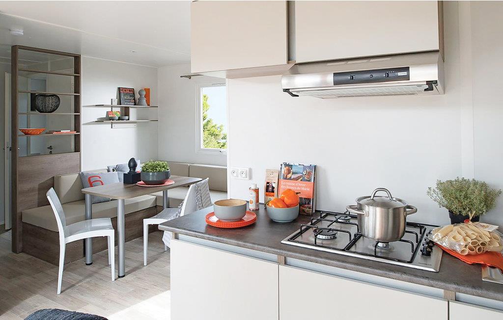 I kan høre havets brusen, uanset hvor I opholder jer på pladsen, for disse hytter er kun adskilt fra Vesterhavet af klitrækken, hvorfra der er en fantastisk udsigt til de uendeligt lange, hvide sandstrande og Vesterhavet på den ene side og Ringkøbing Fjord på den anden side. Her er masser af gratis aktiviteter dagen lang, f.eks. de populære børneaktiviteter, der samler børnene og giver venskaber - også efter ferien. Vil I surfe, cykle eller bade i havet, har I alle mulighederne på denne veludstyrede campingplads. I kan bade ganske gratis i det dejlige indendørs badeland på 1000 m2 med rutsjebane, sauna, dampbad og spa, så husk badetøjet!