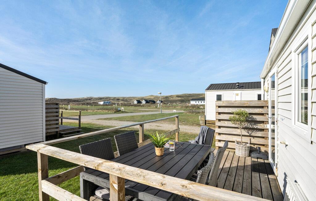 I kan høre havets brusen, uanset hvor I opholder jer på pladsen, for disse hytter er kun adskilt fra Vesterhavet af klitrækken, hvorfra der er en fantastisk udsigt til de uendeligt lange, hvide sandstrande og Vesterhavet på den ene side og Ringkøbing Fjord på den anden side. Her er masser af gratis aktiviteter dagen lang, f.eks. de populære børneaktiviteter, der samler børnene og giver venskaber - også efter ferien. Vil I surfe, cykle eller bade i havet, har I alle mulighederne på denne veludstyrede campingplads. I kan bade ganske gratis i det dejlige indendørs badeland på 1000 m2 med rutsjebane, sauna, dampbad og spa, så husk badetøjet!