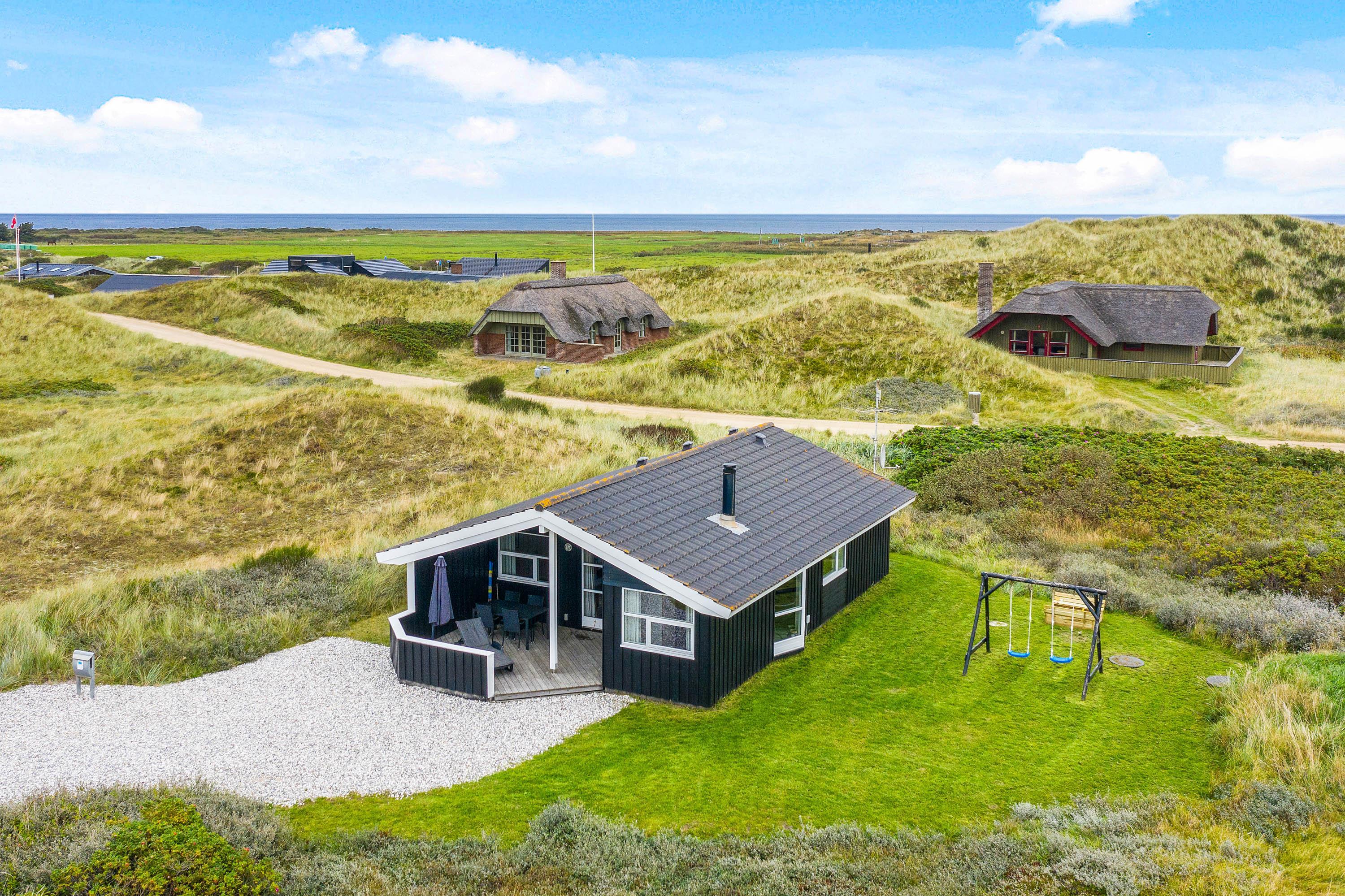 Feriehuset på Mettes Bjerg 2i har en dejlig beliggenhed, og med bare 200 meter til Vesterhavet er der mulighed for at høre brændingen og havets brusen, hvis ikke I vælger at tilbringe dagen på stranden, hvor der er rig mulighed for at mætte alle sanser.