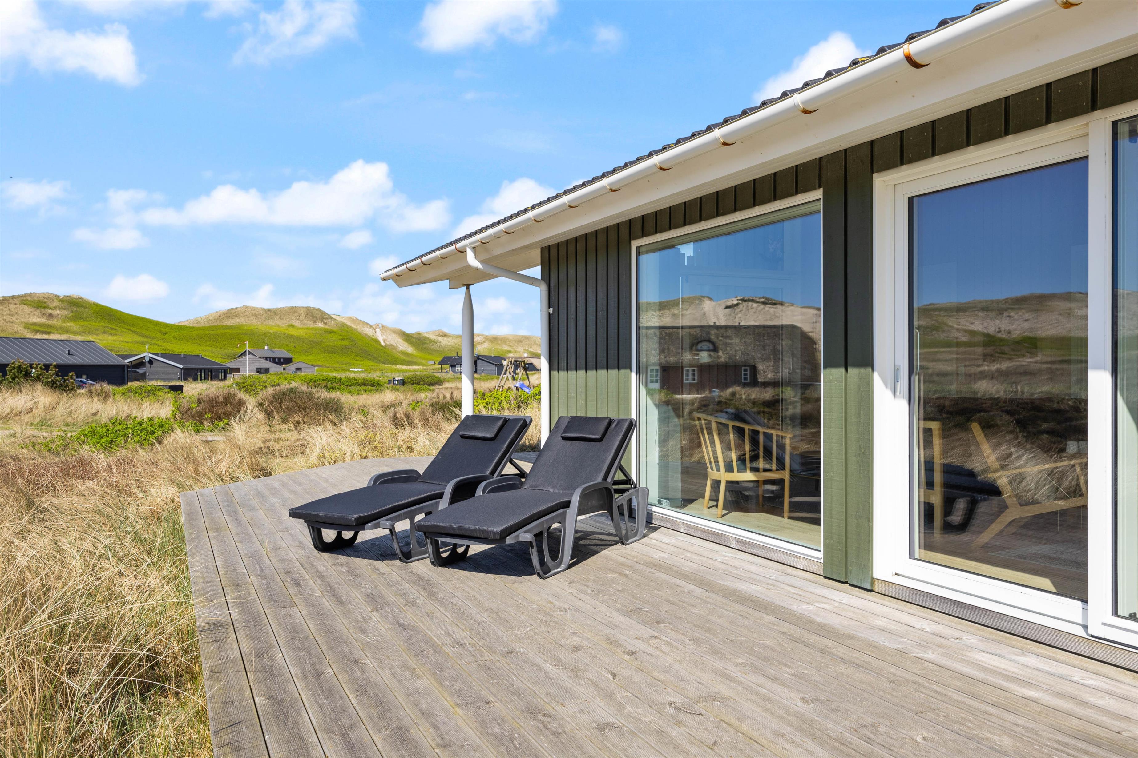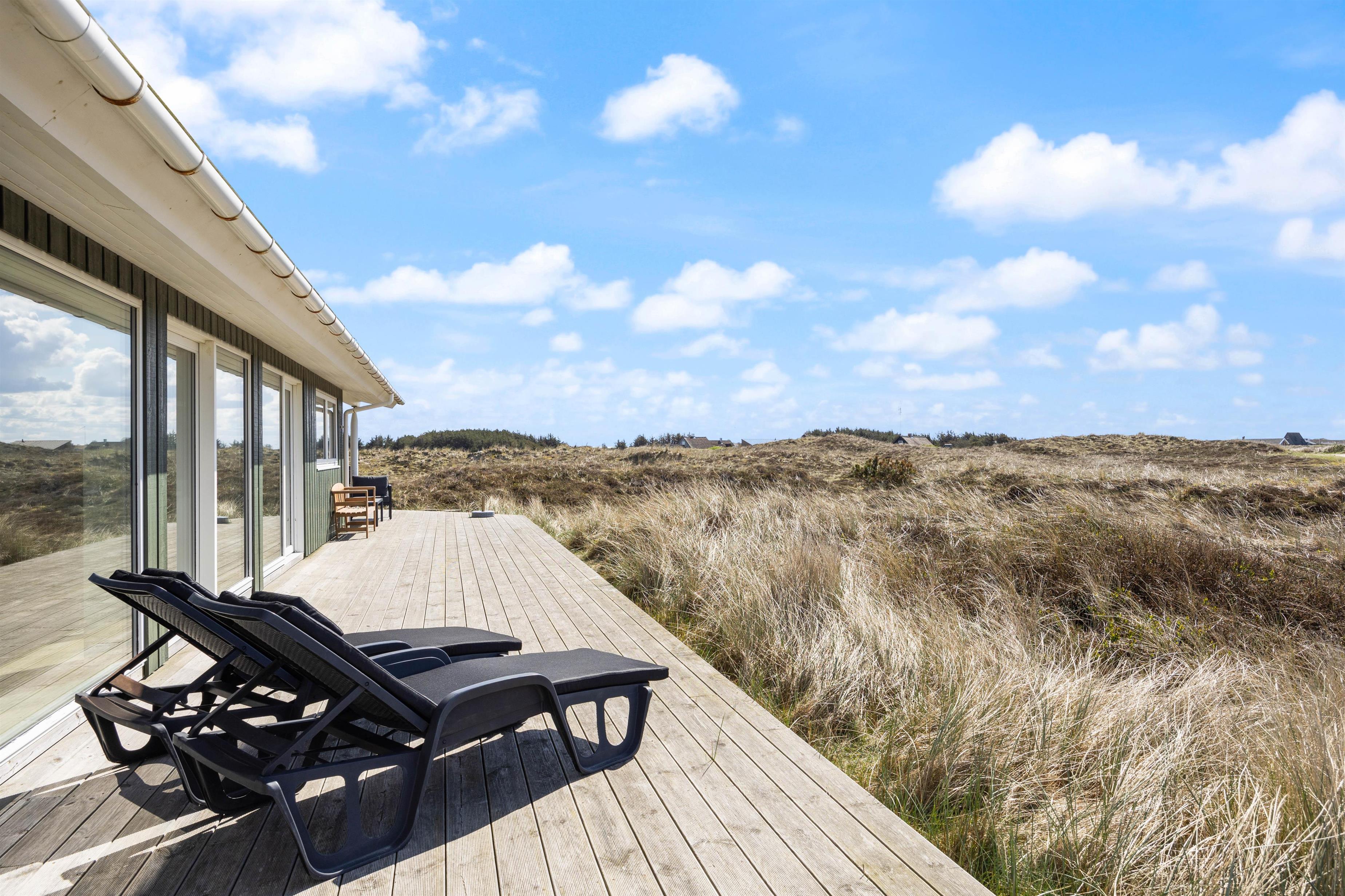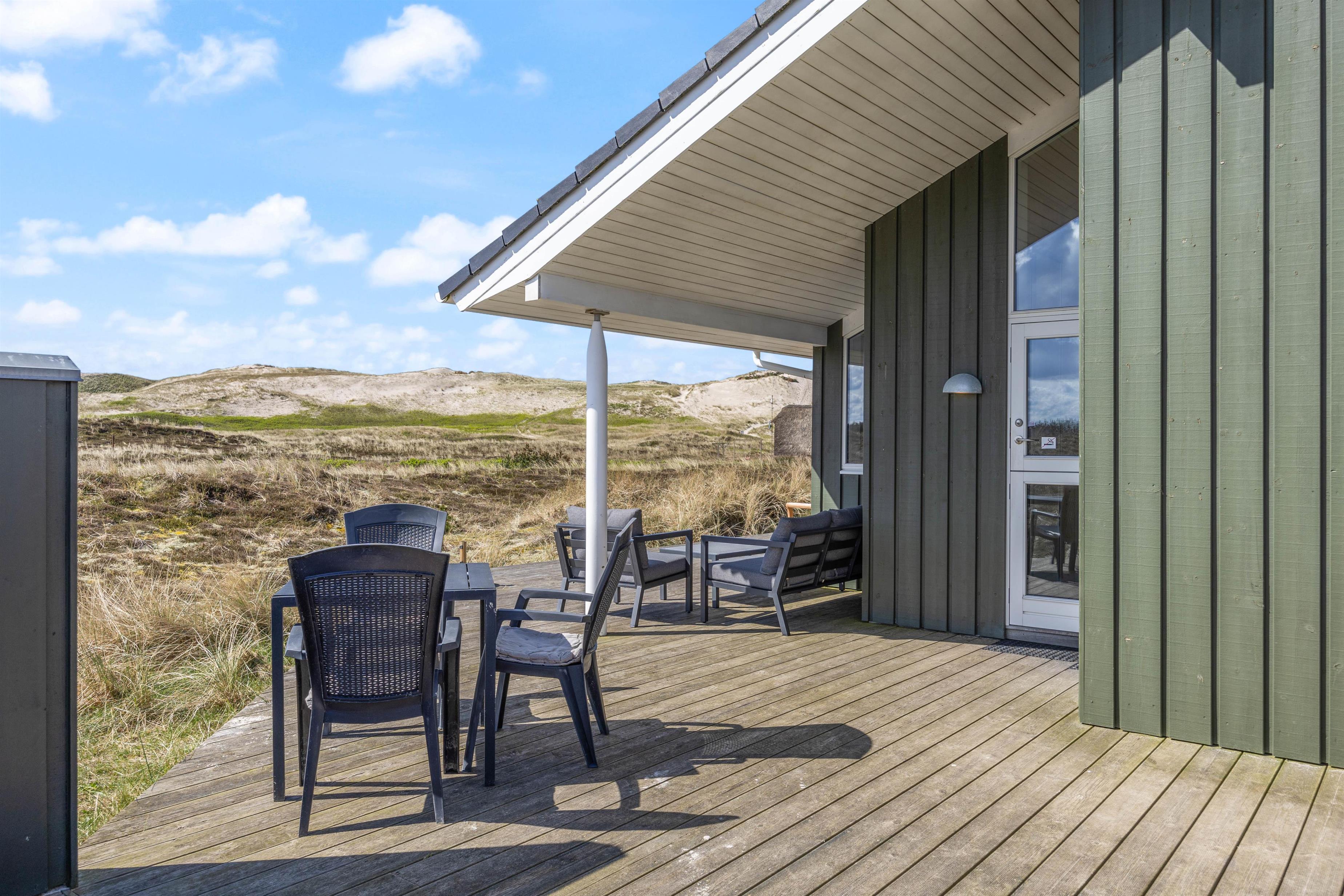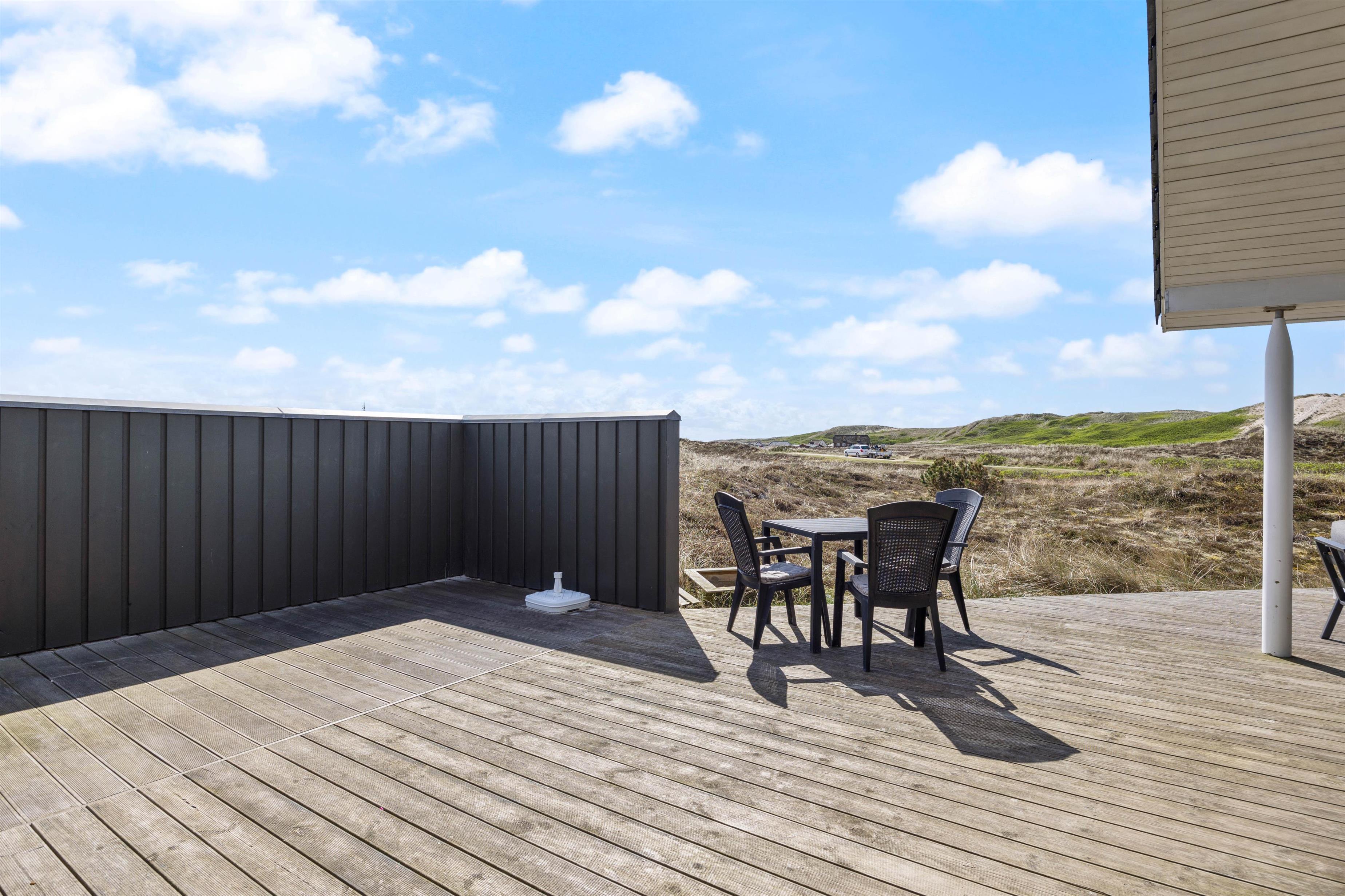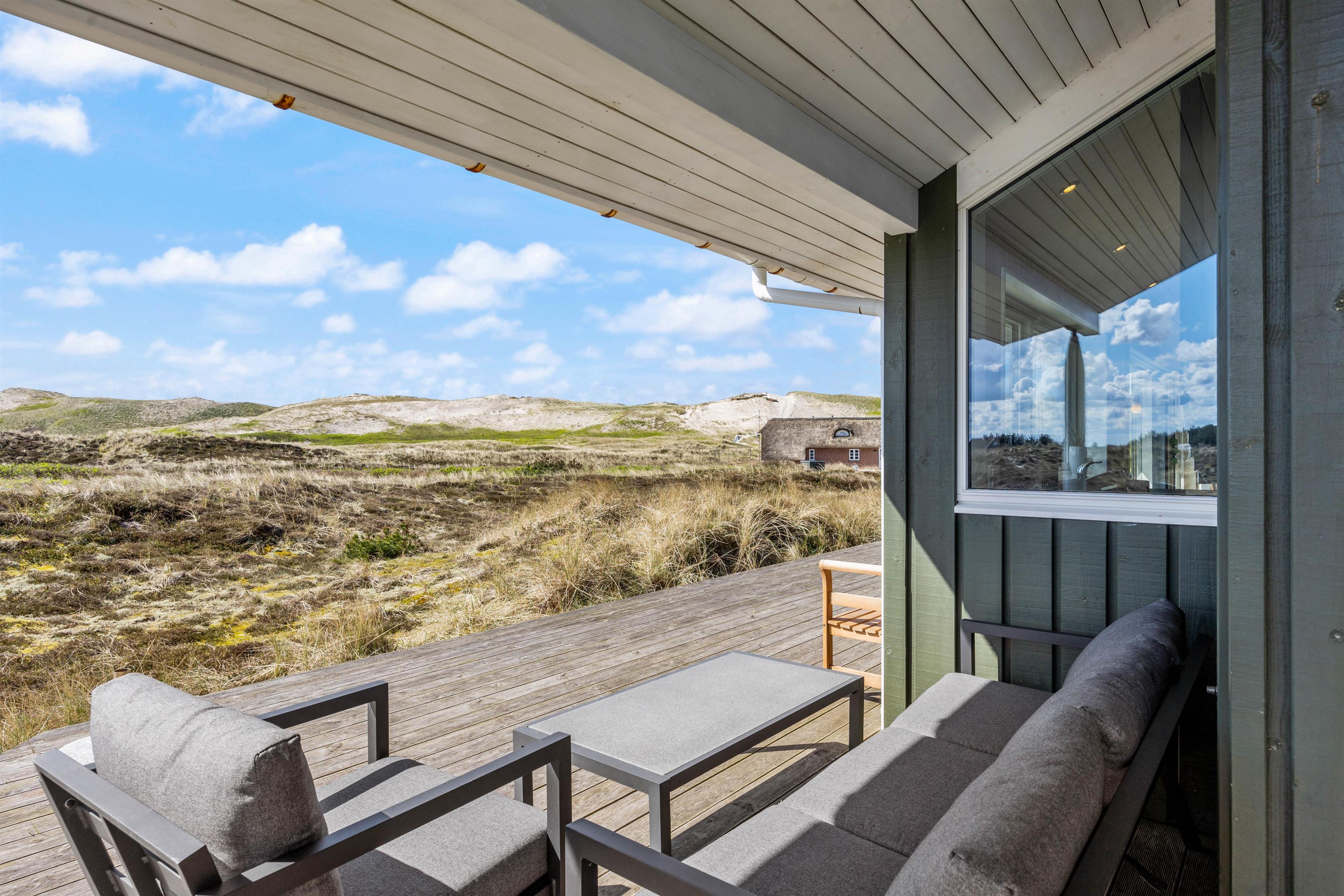 Afslapning og ro er især vigtige, når man holder ferie. 1 af husets 4 soveværelser har direkte adgang til den åbne træterrasse, som ligger i direkte forbindelse med klitlandskabet. Tag morgenkaffen med ud og nyd en langsom start på dagen – måske endda med lyden af bølgerne i brændingen i baggrunden.