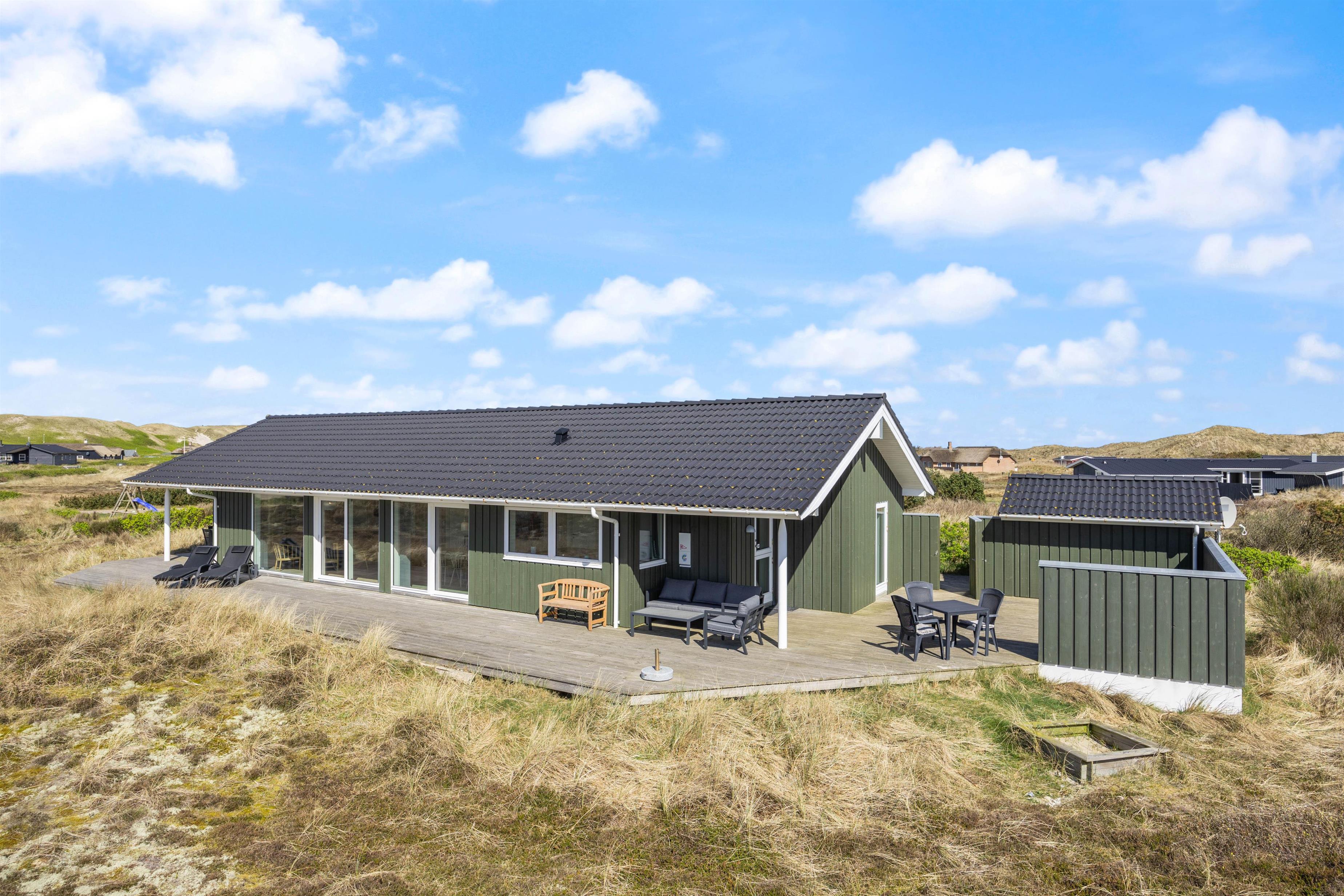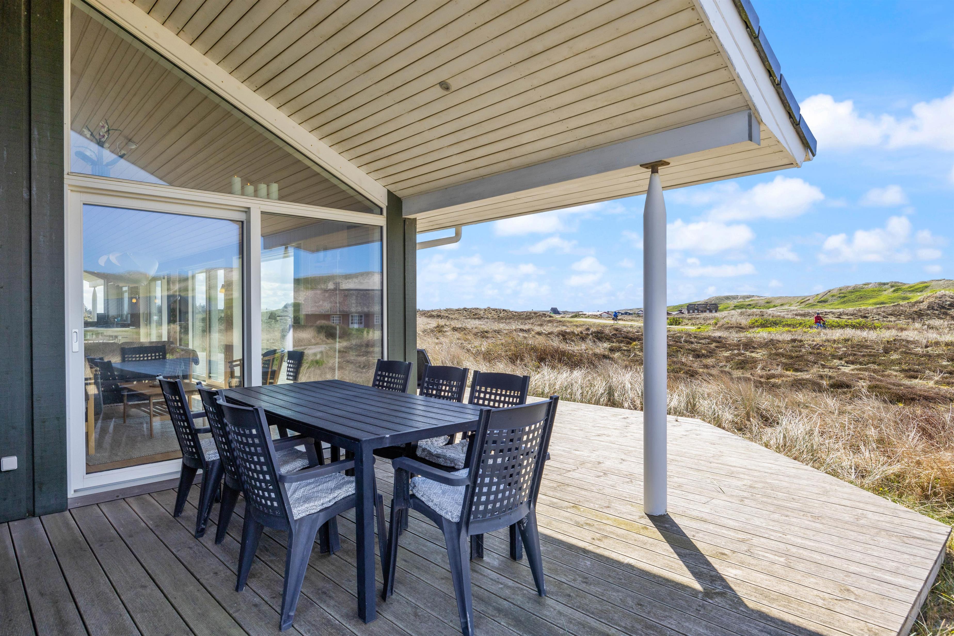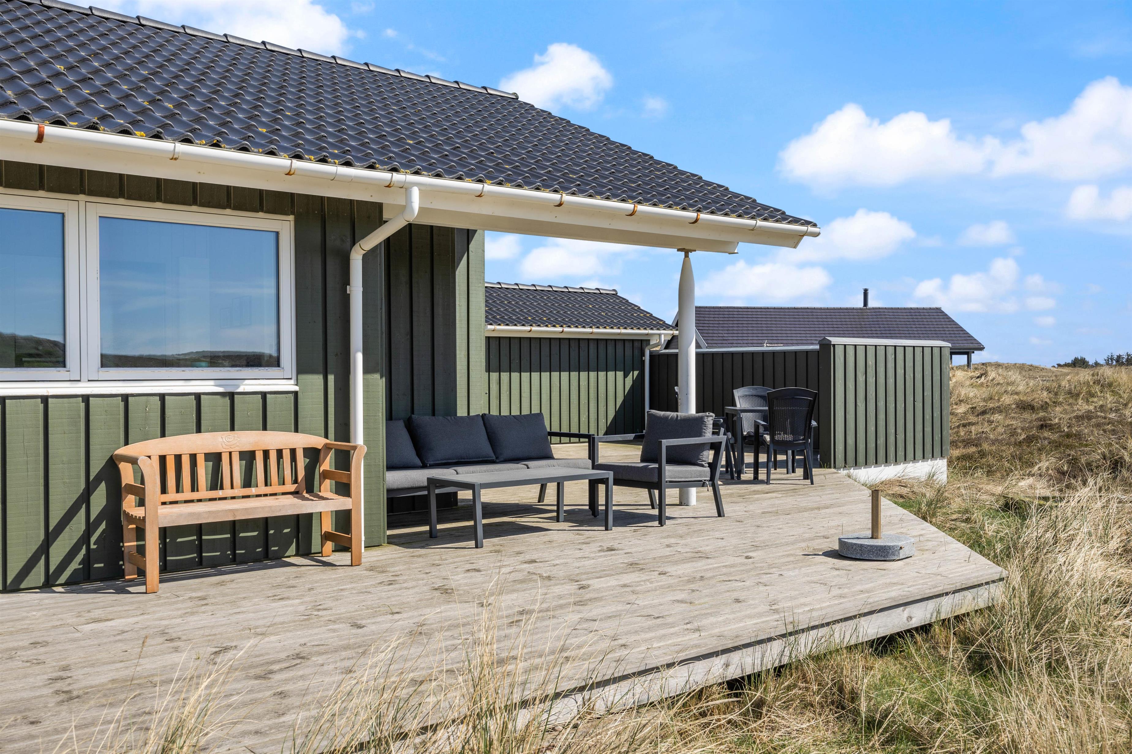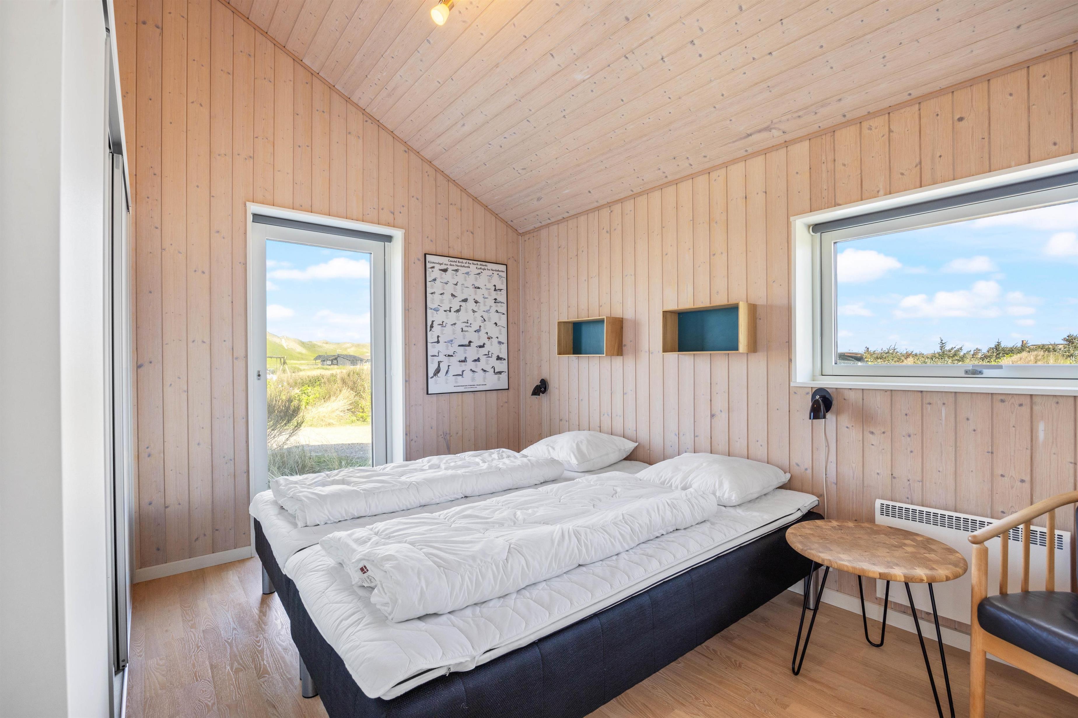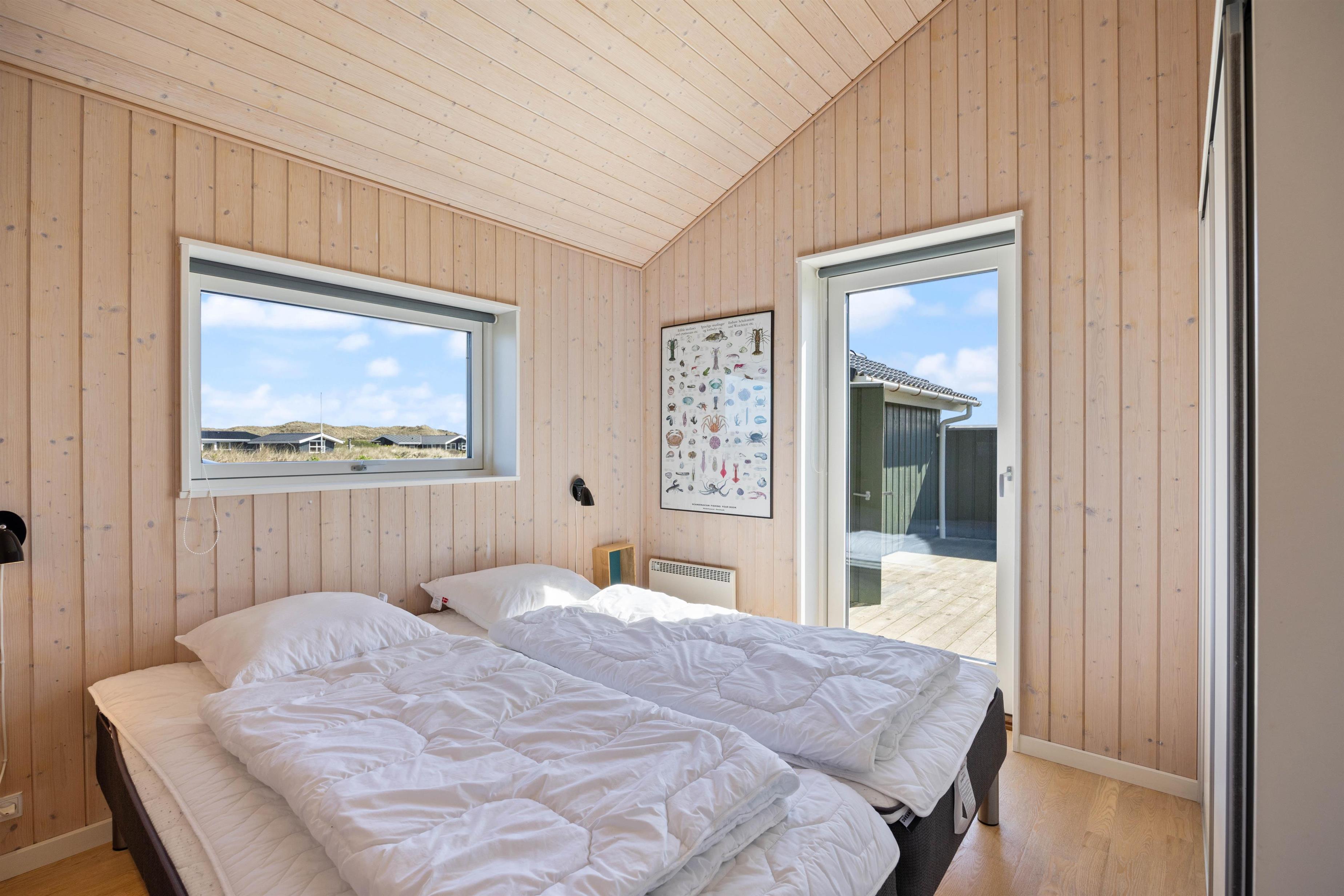 Afslapning og ro er især vigtige, når man holder ferie. 1 af husets 4 soveværelser har direkte adgang til den åbne træterrasse, som ligger i direkte forbindelse med klitlandskabet. Tag morgenkaffen med ud og nyd en langsom start på dagen – måske endda med lyden af bølgerne i brændingen i baggrunden.