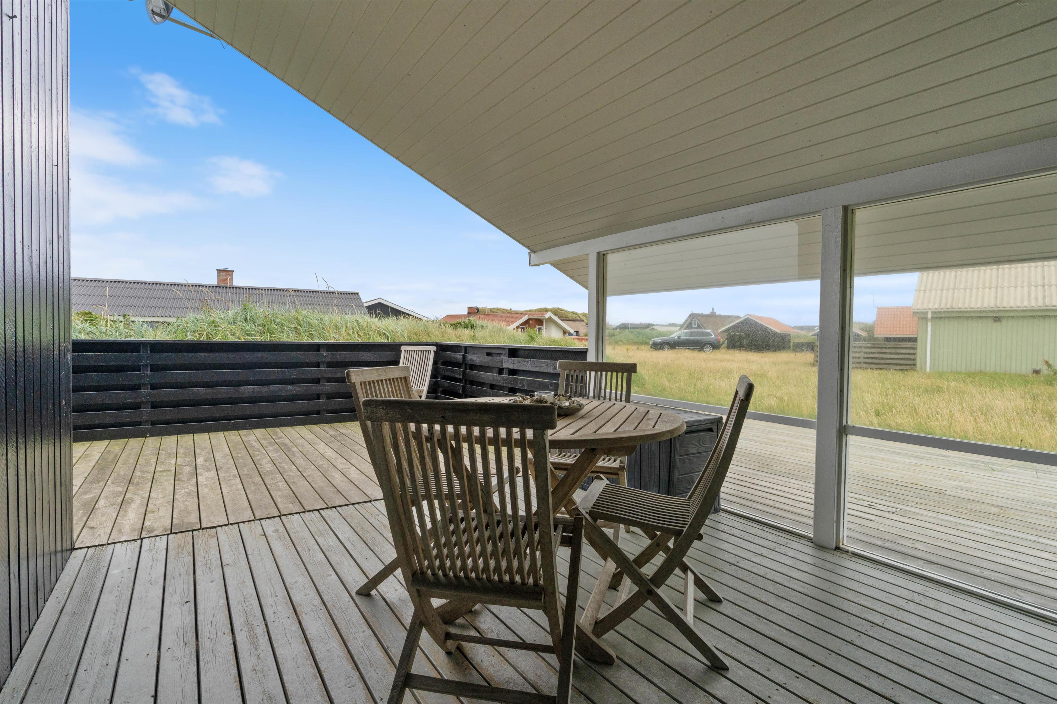 Terrassen er det rene luksus, specielt når man har børn og hunde. Her kan ungerne og familiehunden suse rundt med højt humør, imens du roligt kan se til fra terrassemøblerne. Imens ungerne sover trygt efter en lang dag på stranden, kan de voksne forlænge grillaftenen på terrassen i stearinlysets hyggelige skær.