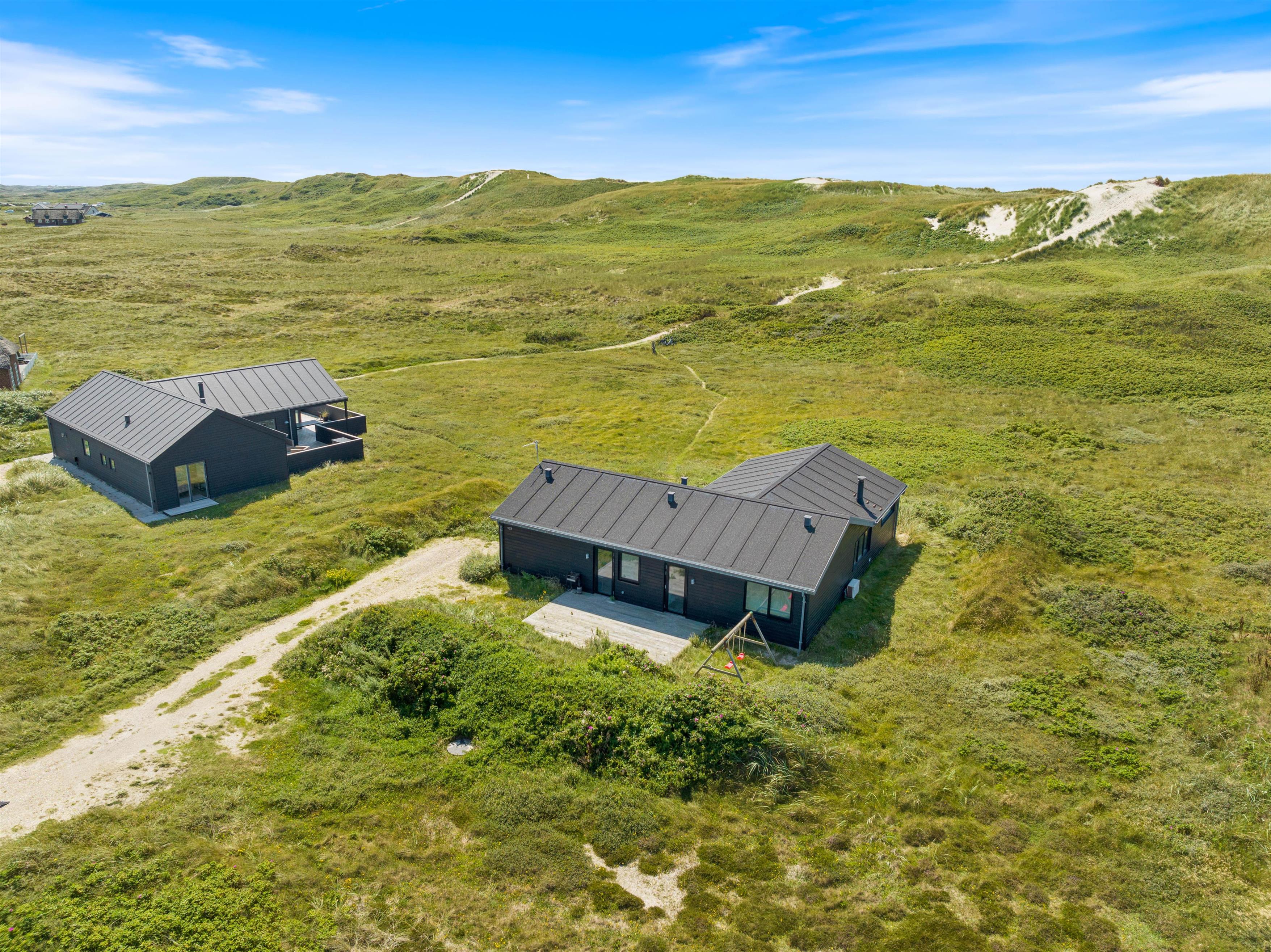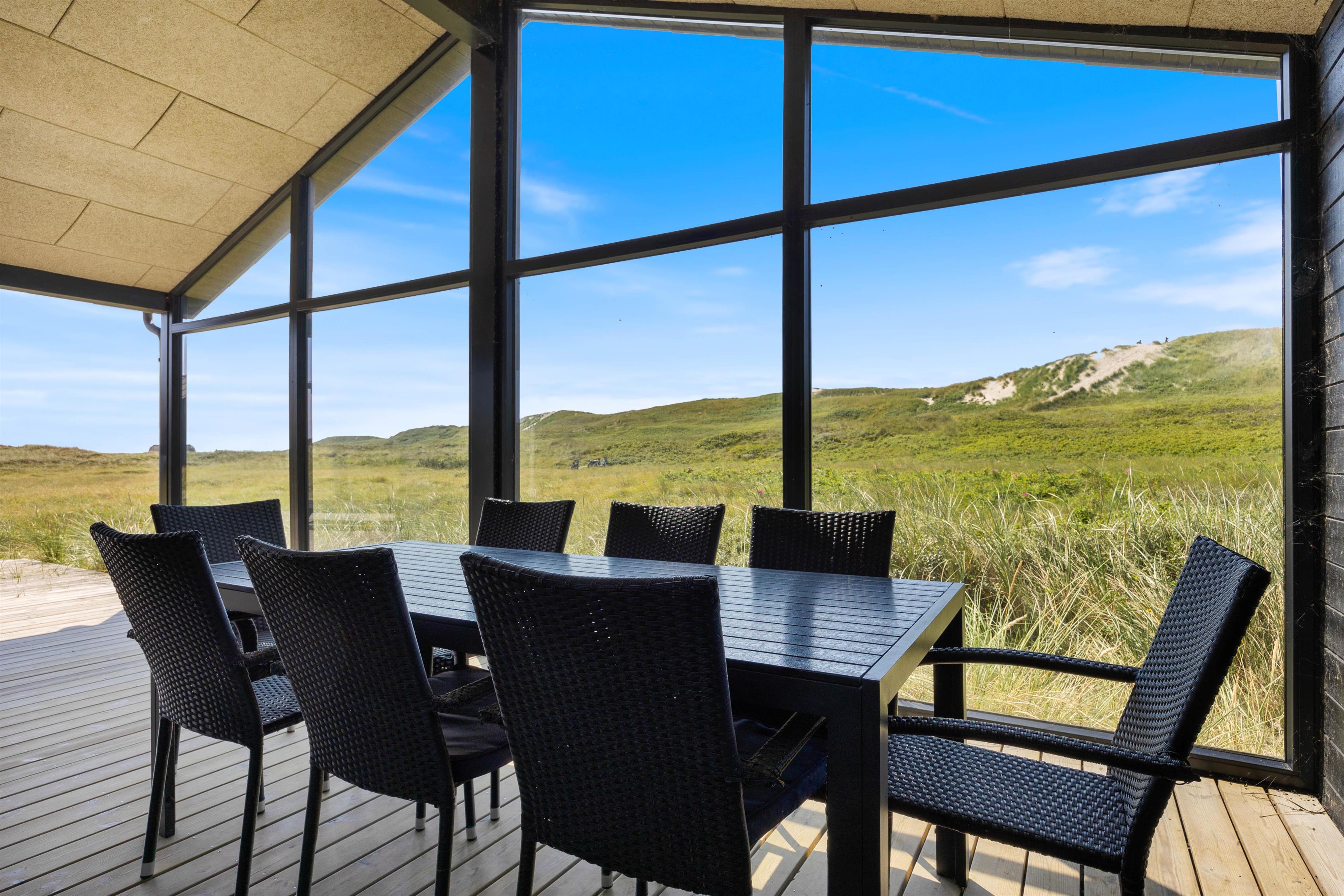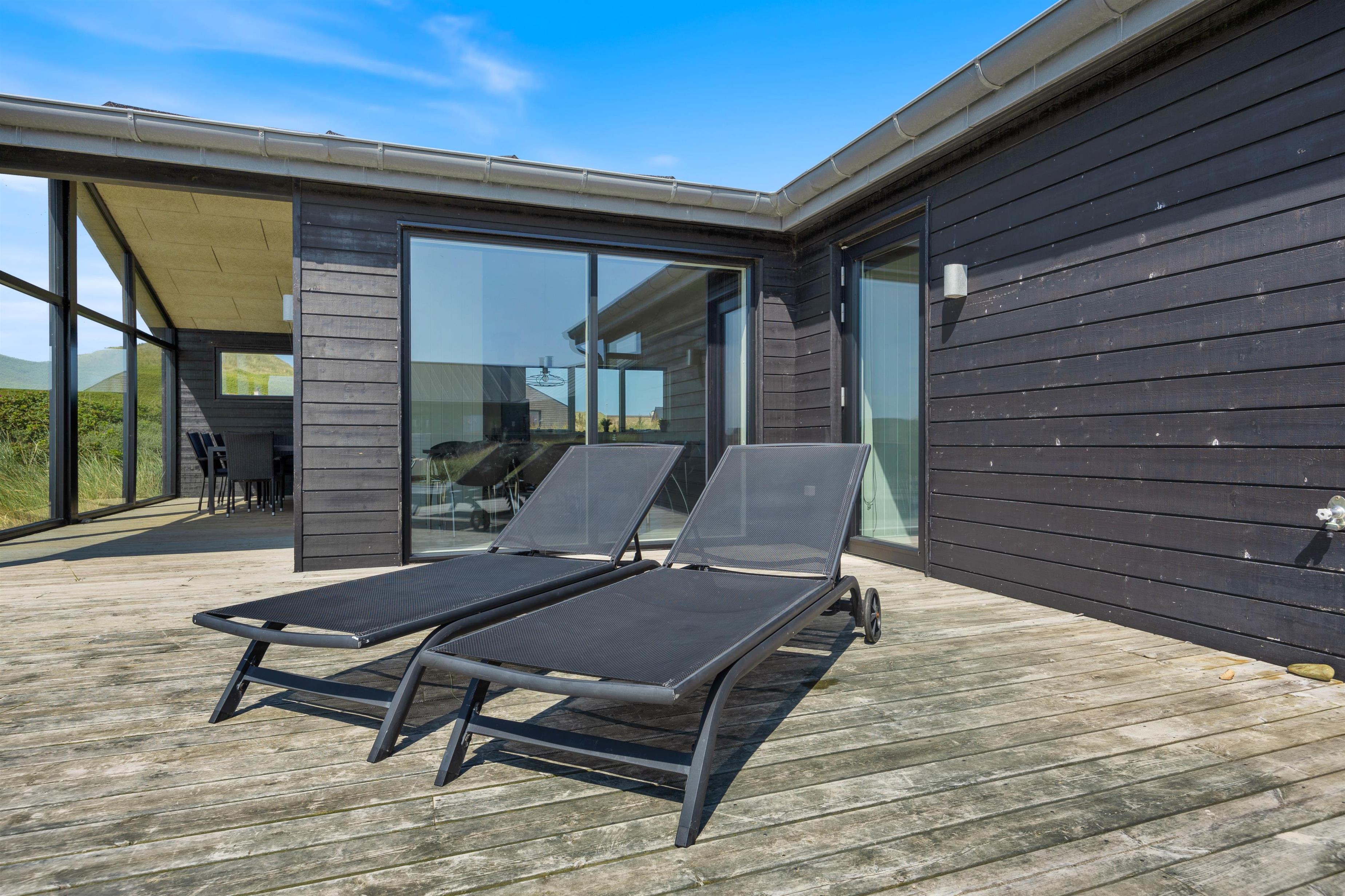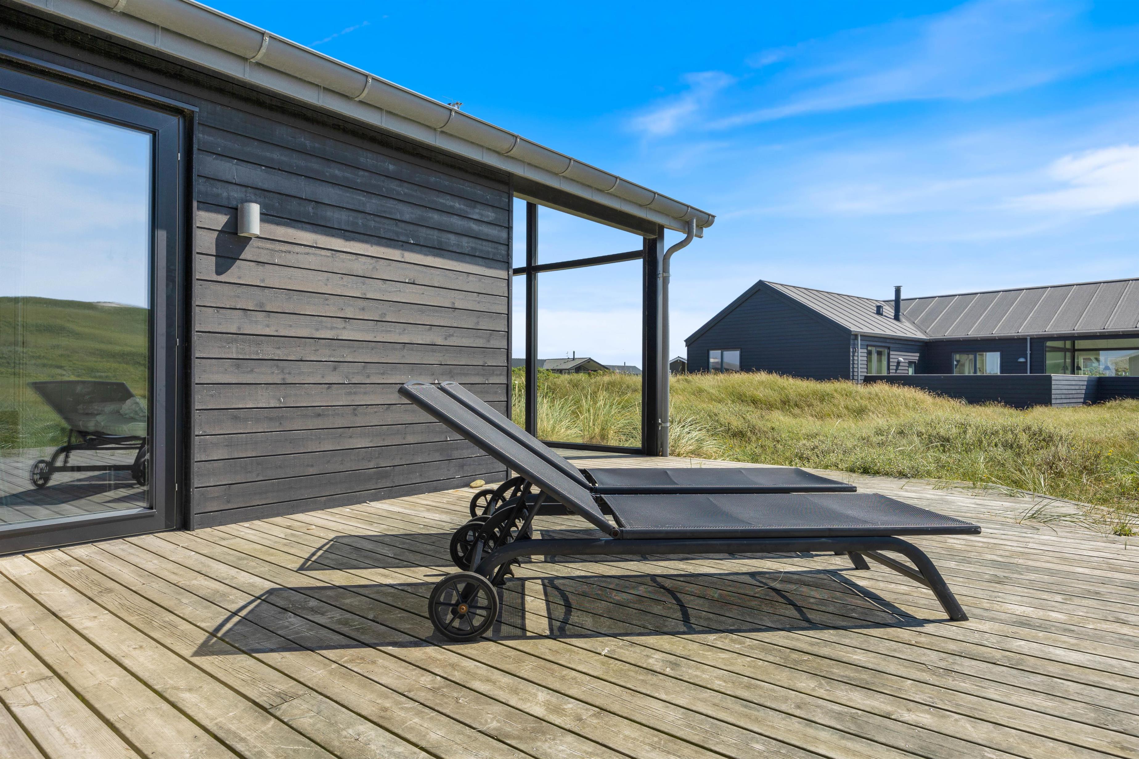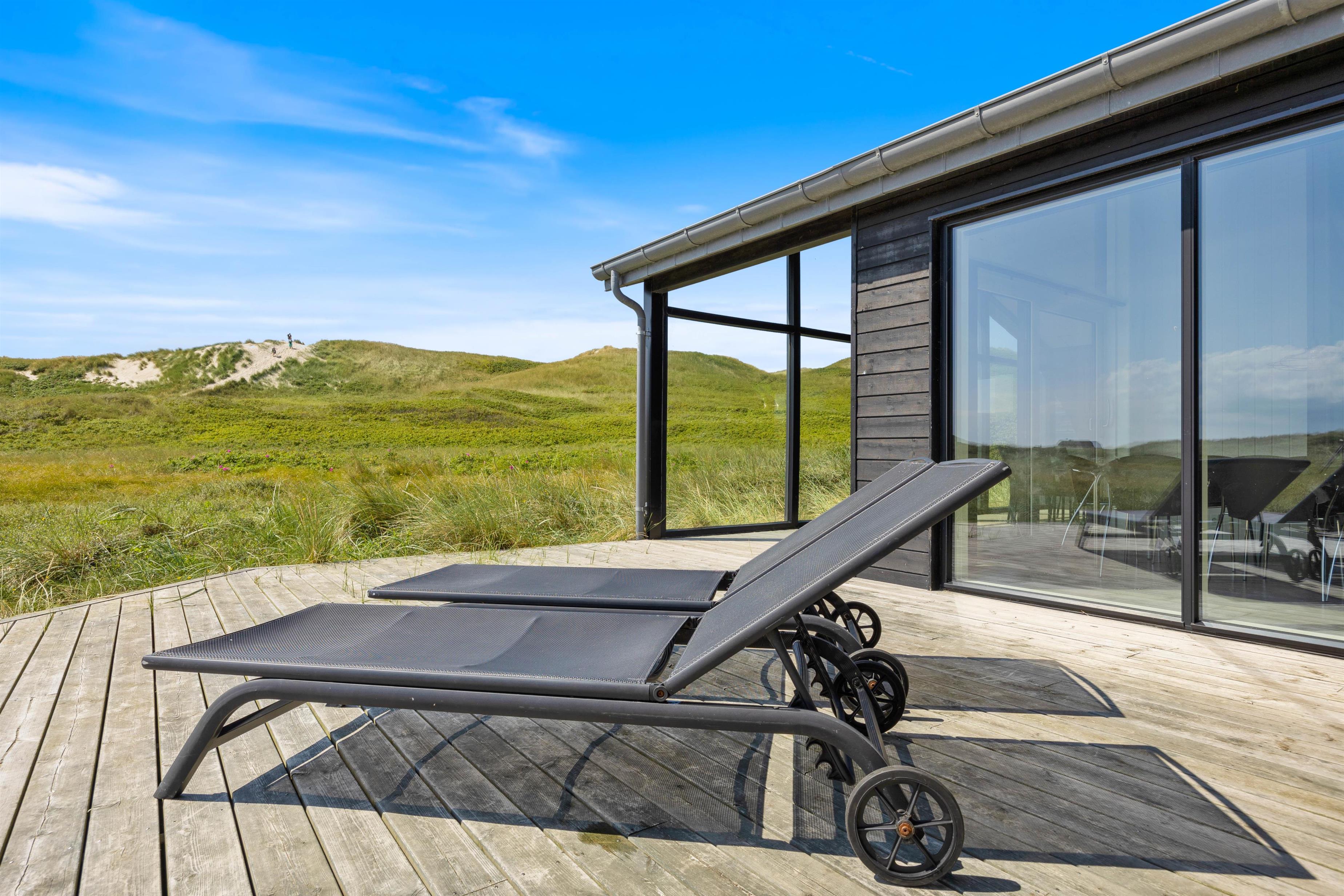Ved feriehuset har du nogle rigtig dejlige terrasser, så du også kan sidde ude og nyde ferien. At sidde her og lytte til bølgerne i det fjerne, dufte den salte havluft og nyde den smukke udsigt til klitterne giver ro i sjælen og fornyet energi.
