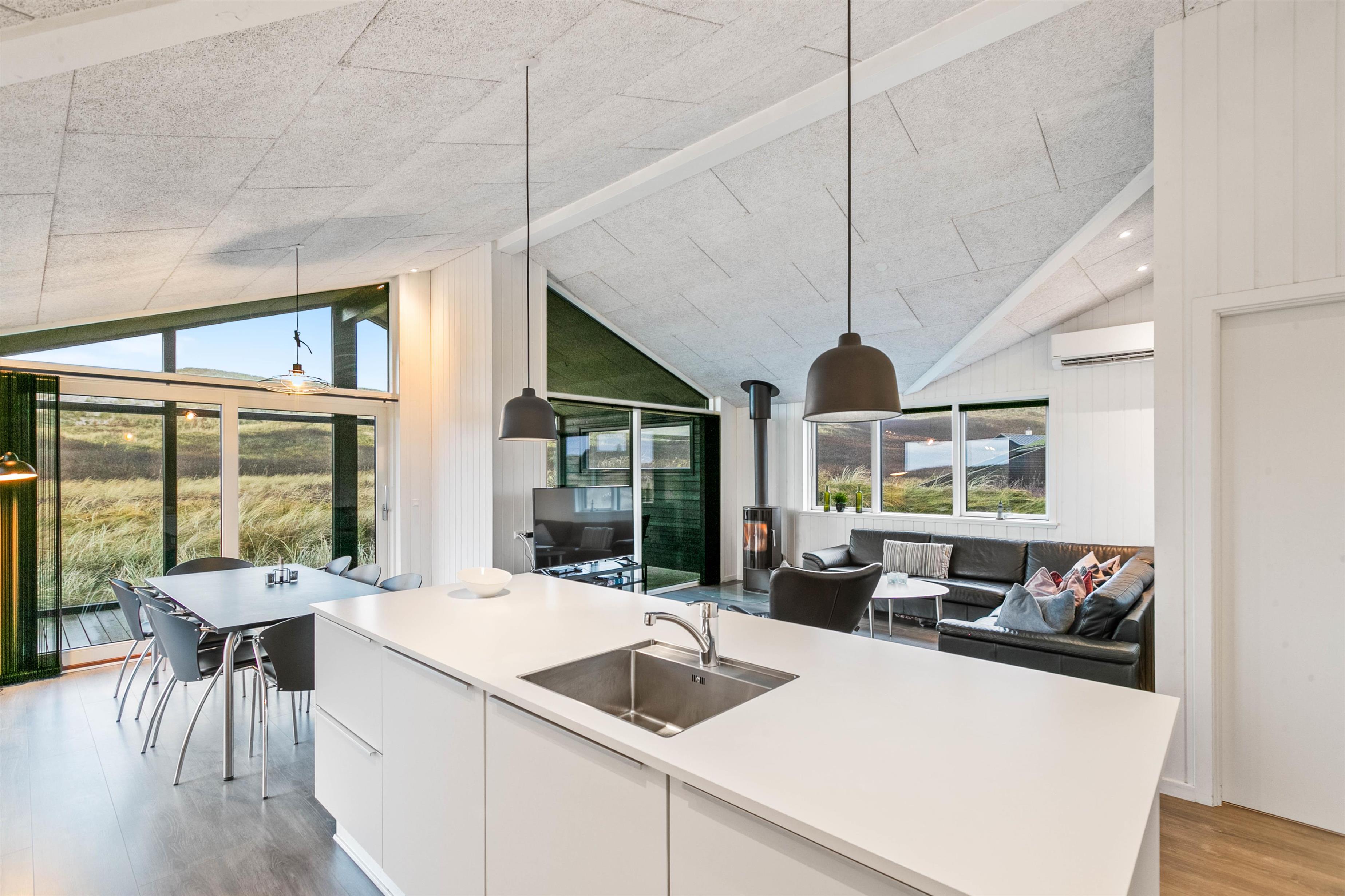 Feriehuset er bygget og indrettet med omtanke for, hvordan du får den bedst mulige ferie. Her er der både plads til samvær og kvalitetstid med familien, uanset om det er omkring sjove spil, planlægning af feriens udflugter eller bare hyggesnak over en lækker middag.