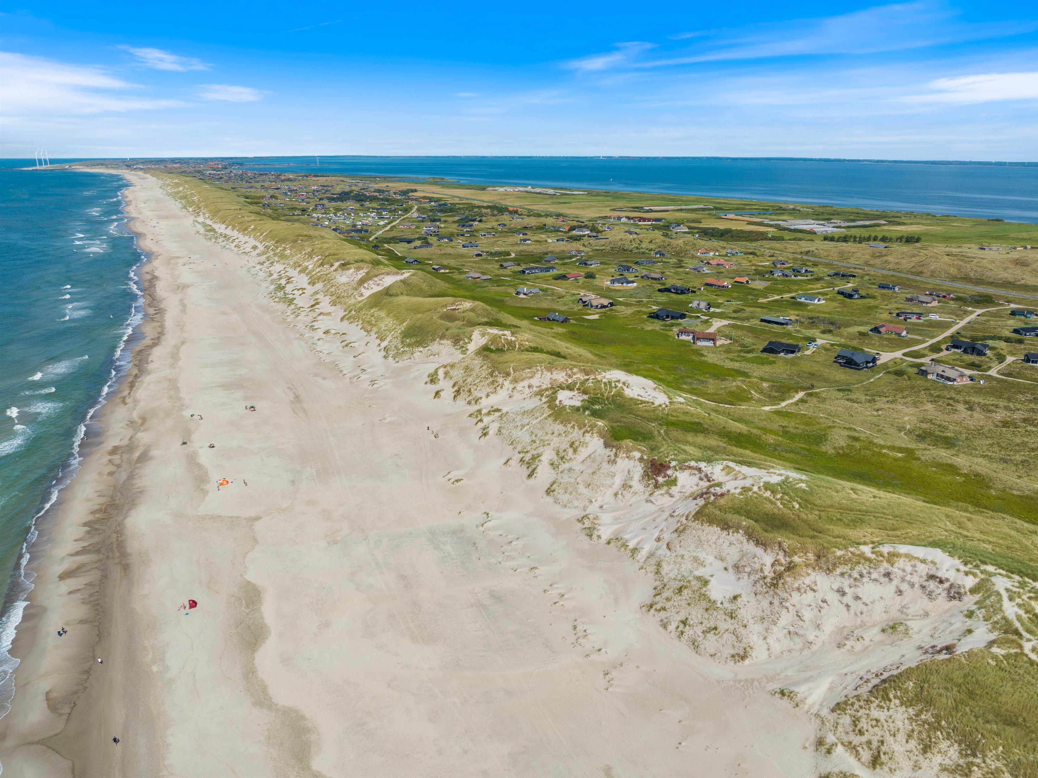 Men feriehuset ligger også meget tæt på Vesterhavet og den gode sandstrand, der indbyder til lange gåture langs vandet hele året rundt. Og at lege og tumle i sandet er en skøn oplevelse for hunde, børn og barnlige sjæle.