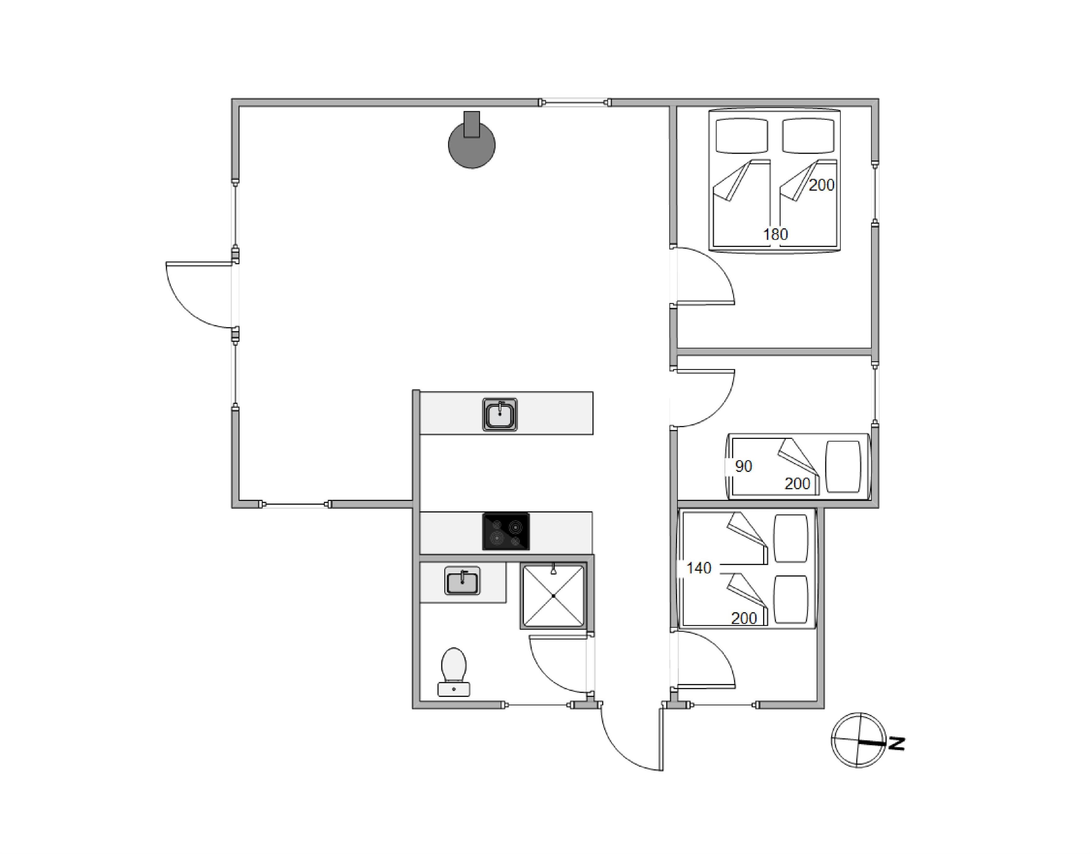 I sommerhuset er der 5 sovepladser, som fordeler sig på 3 soveværelser, hvor I kan finde til ro efter en dejlig dag. Derudover finder I et badeværelse i sommerhuset.