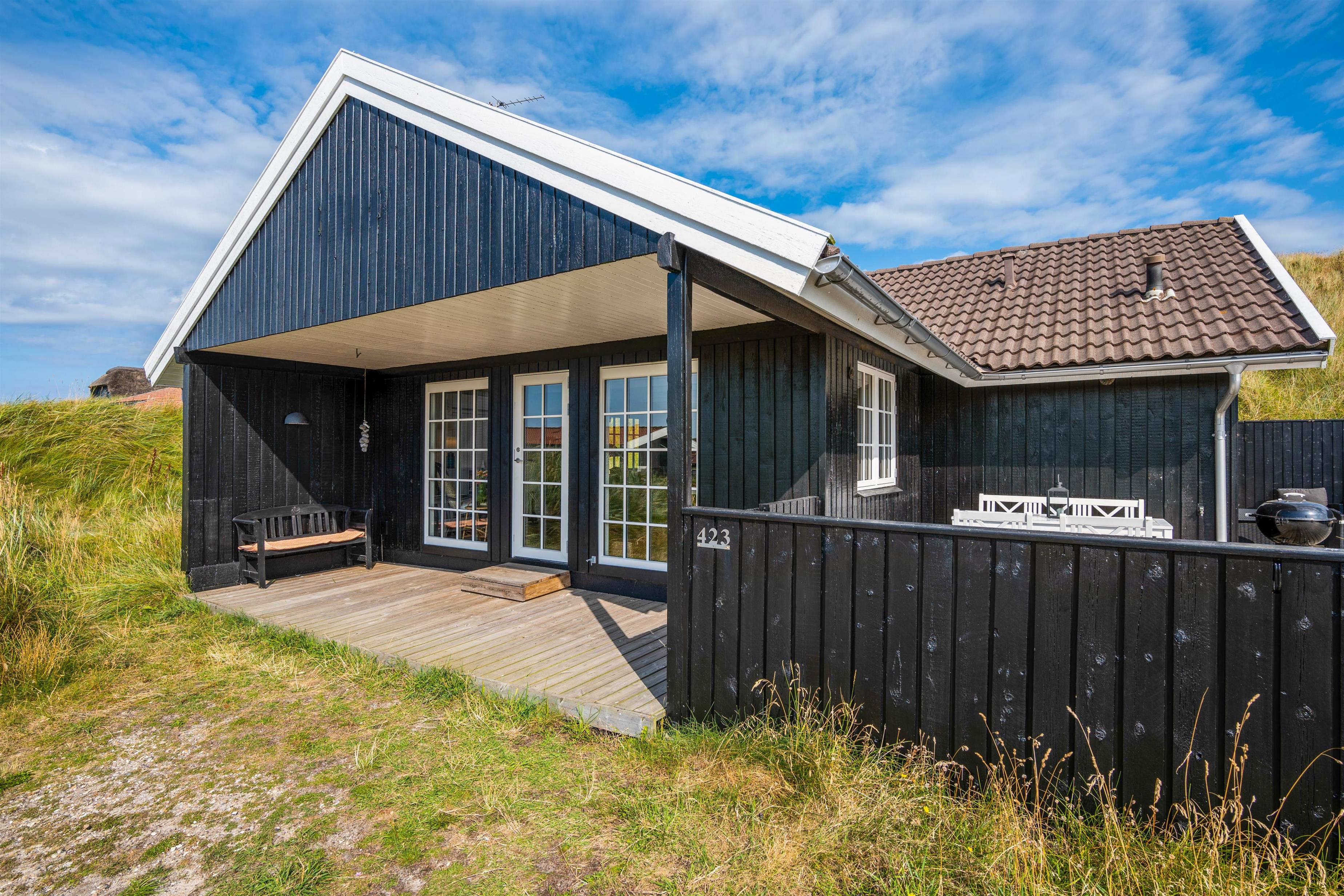 Dette charmerende sommerhus på Tingodden 423 rummer plads til 5 personer og sætter rammerne for en rigtig dejlig ferie kun 350 meter fra det brusende Vesterhav. Dette hyggelige sommerhus er indrettet med kærlighed og sans for detaljen, og med til huset hører en lækker, stor terrasse med fantastisk fjordudsigt. Hunden er også velkommen her!
