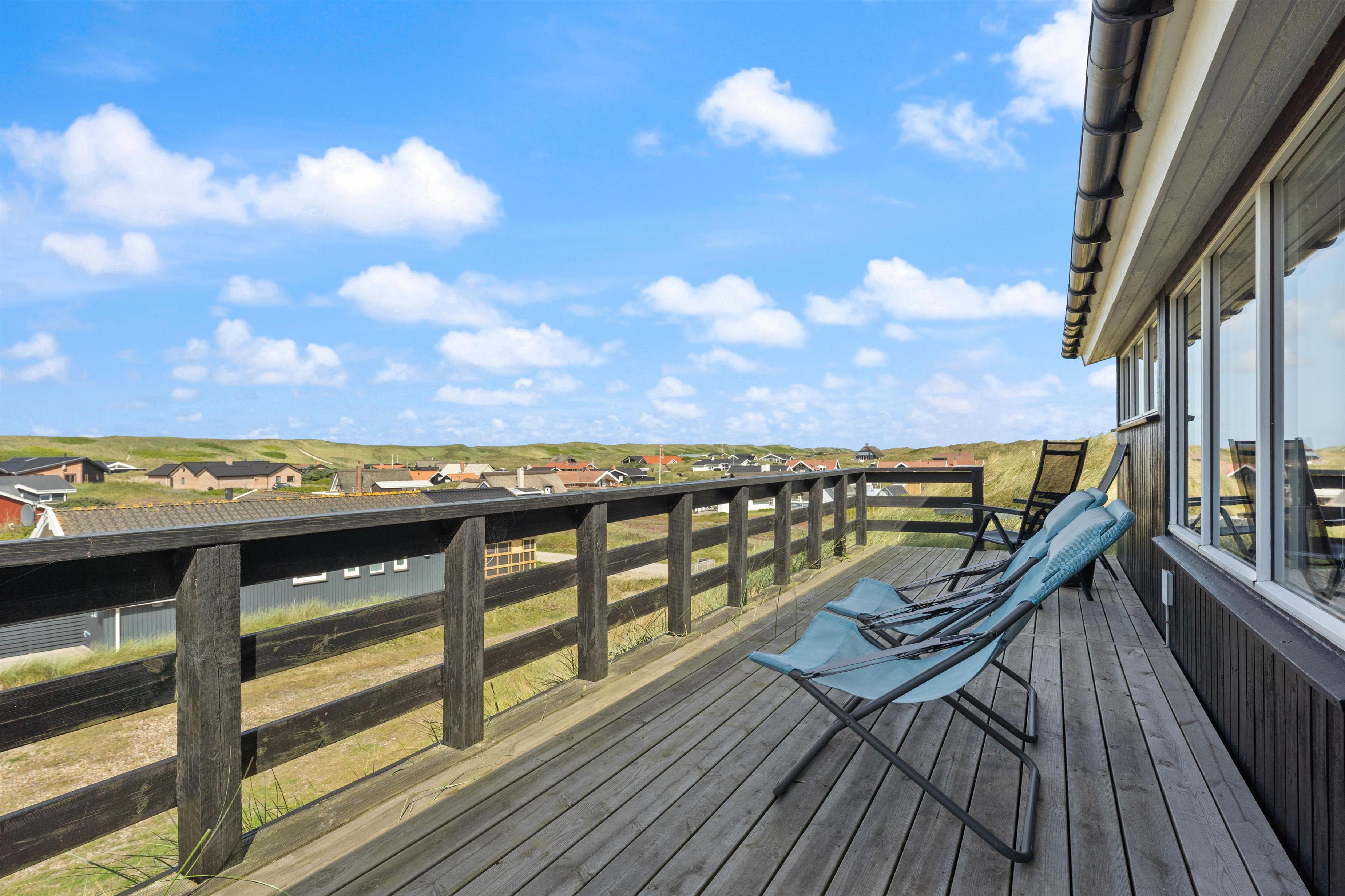 Når I har parkeret bilen, bliver I mødt af en trappe, som fører jer op til feriehuset og den skønne træterrasse. Fra terrassen er der direkte udgang til klitterne. I øst er terrassen overdækket, og her kan I nyde morgenkaffen eller blot sidde i læ for solen. På den anden side af sommerhuset, er der derimod mulighed for fuld sol. Solens varme kan bl.a. nydes fra sommerhusets liggestole eller langs strandkanten.