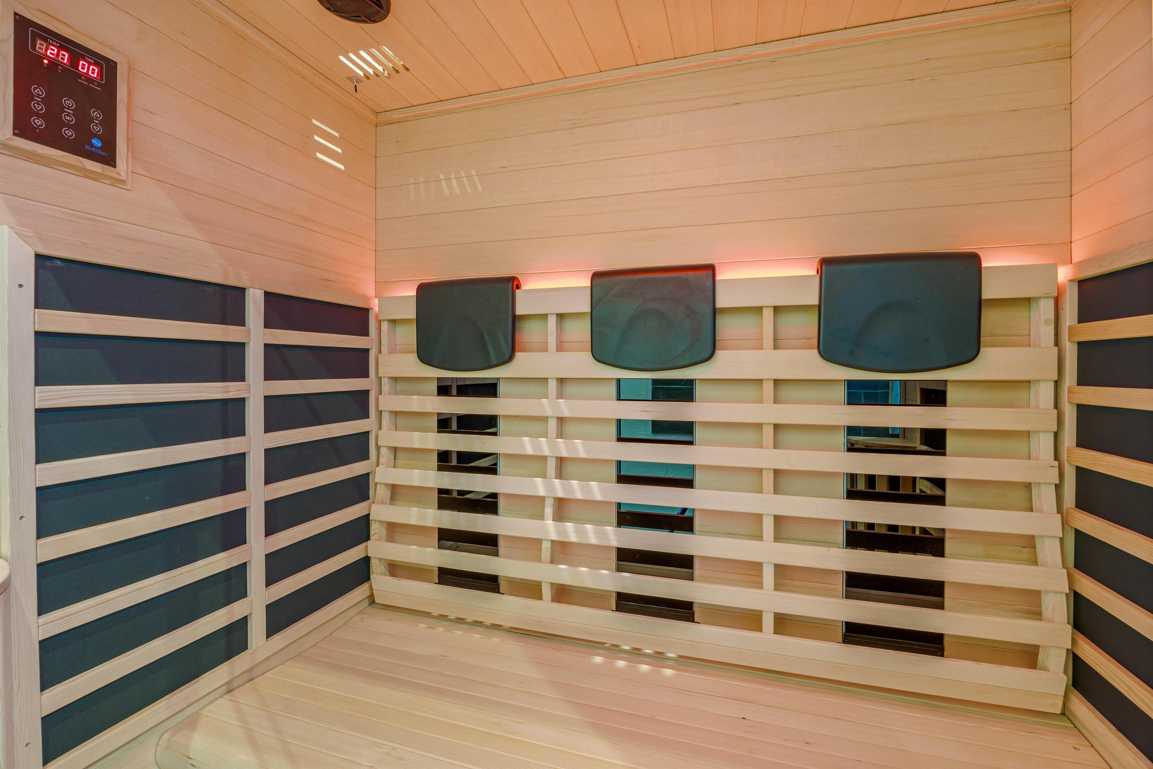 De to badeværelser i sommerhuset er udstyret med gulvvarme, hvilket sikrer, at alle kan blive mødt af den dejlige gulvvarme på de kolde morgener. På det ene af de to badeværelser findes et badekar, hvor man kan smide sig i det varme vand.