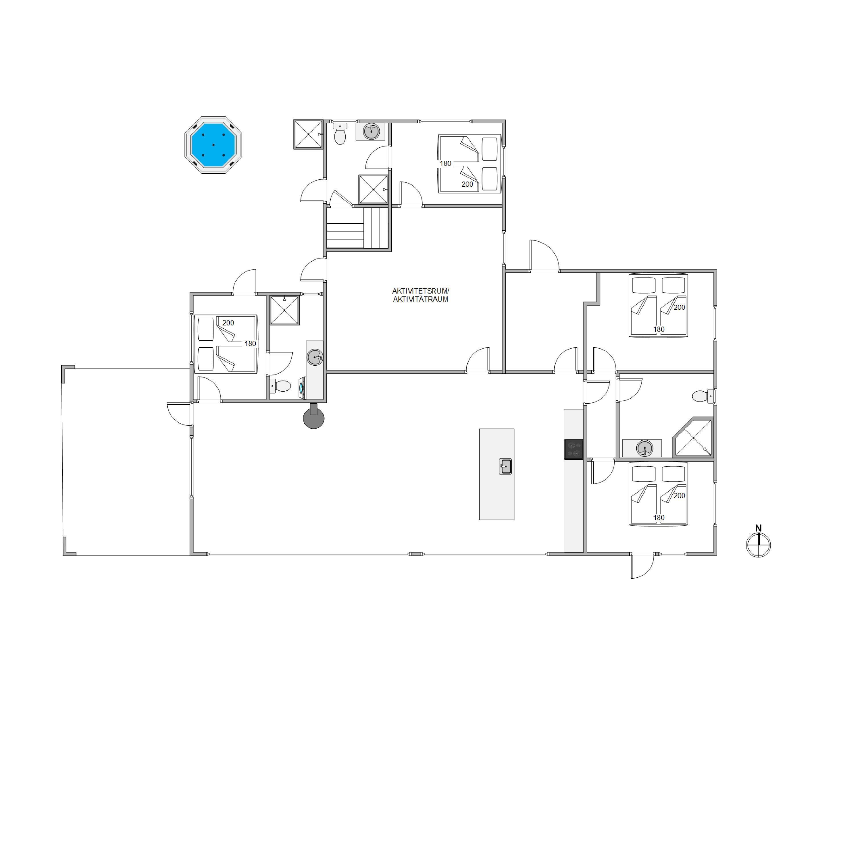 Aktivitetsrum og 250 meter til havet