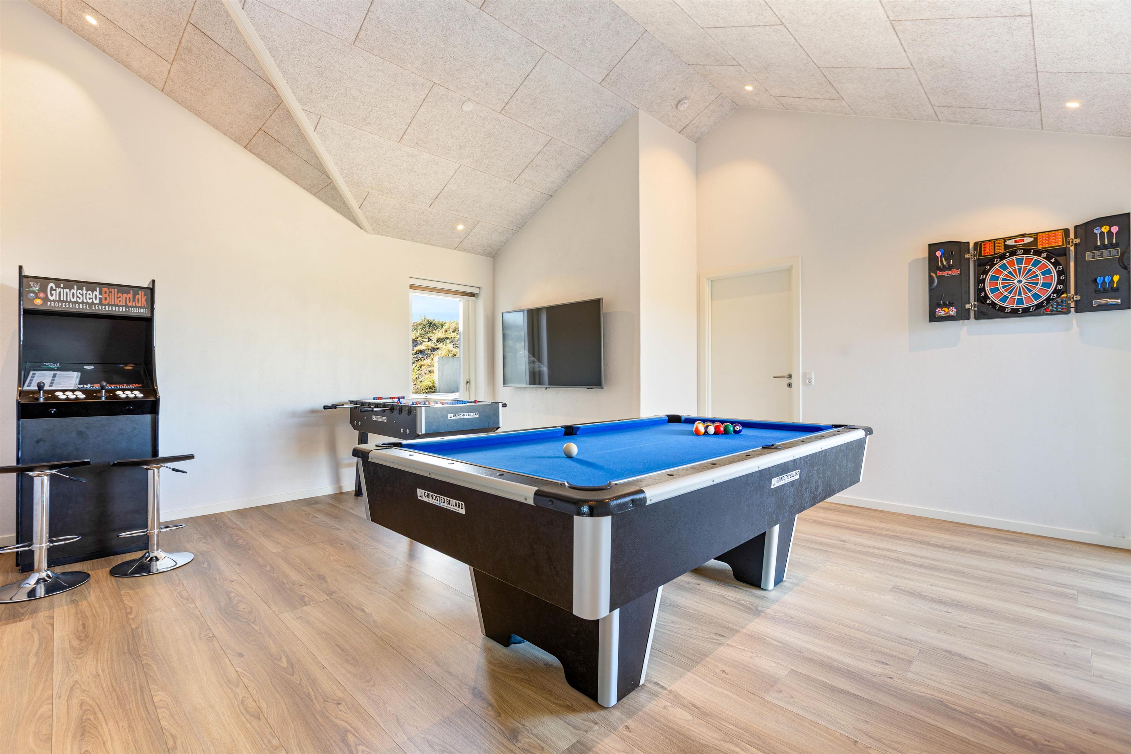 Et stenkast fra sommerhuset ligger det fantastiske Vesterhav, der med årstidens charme altid er et besøg værd. I sommerhusets aktivitetsrum med billard kan I sætte et sjovt og hyggeligt punktum for en skøn dag ved Vesterhavet, inden I siger godnat og går hver til sit i de 4 soveværelser.