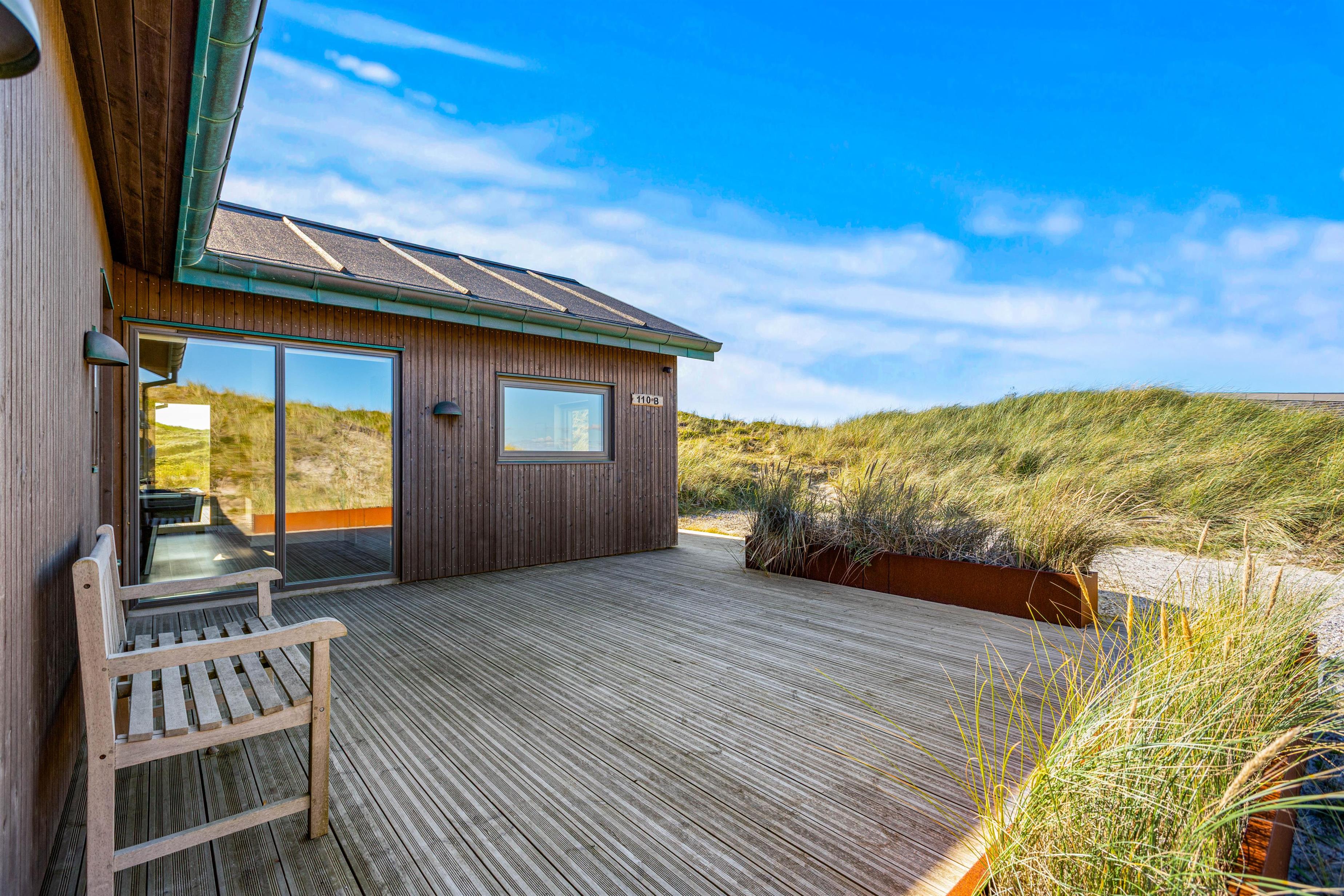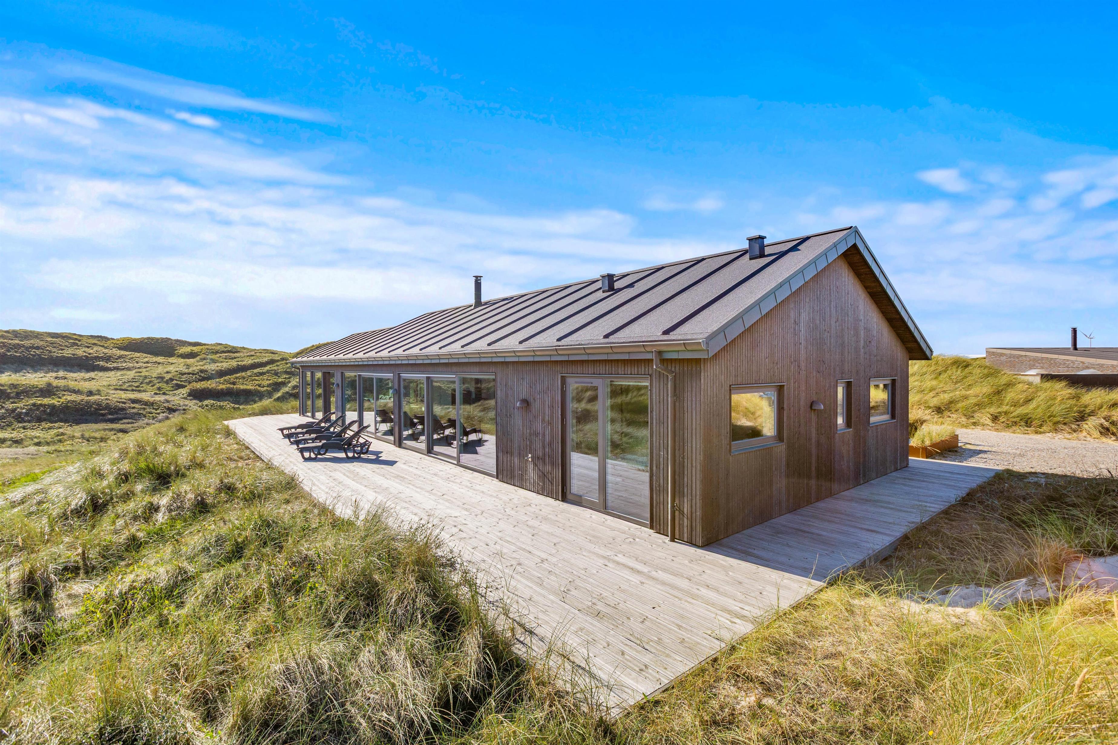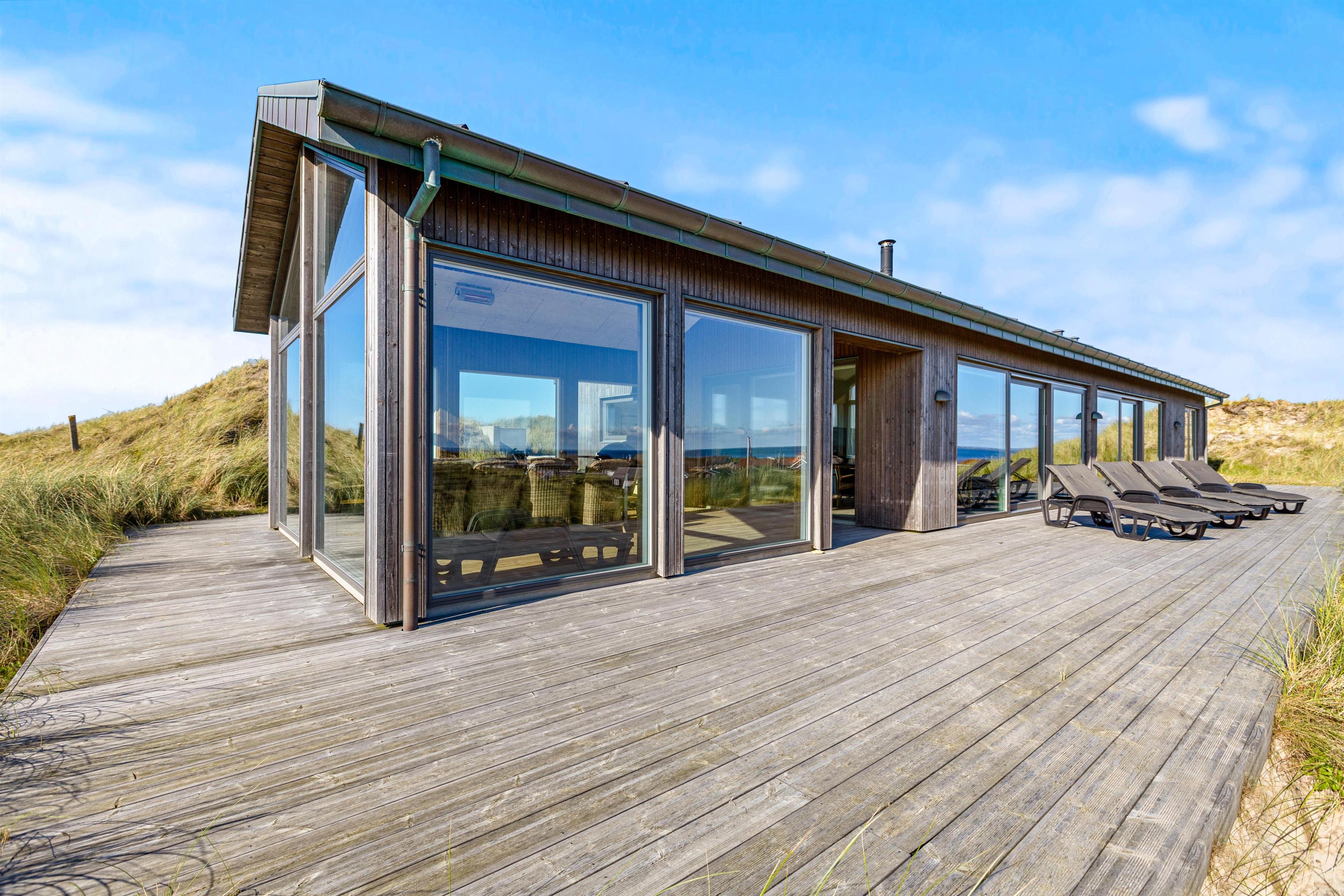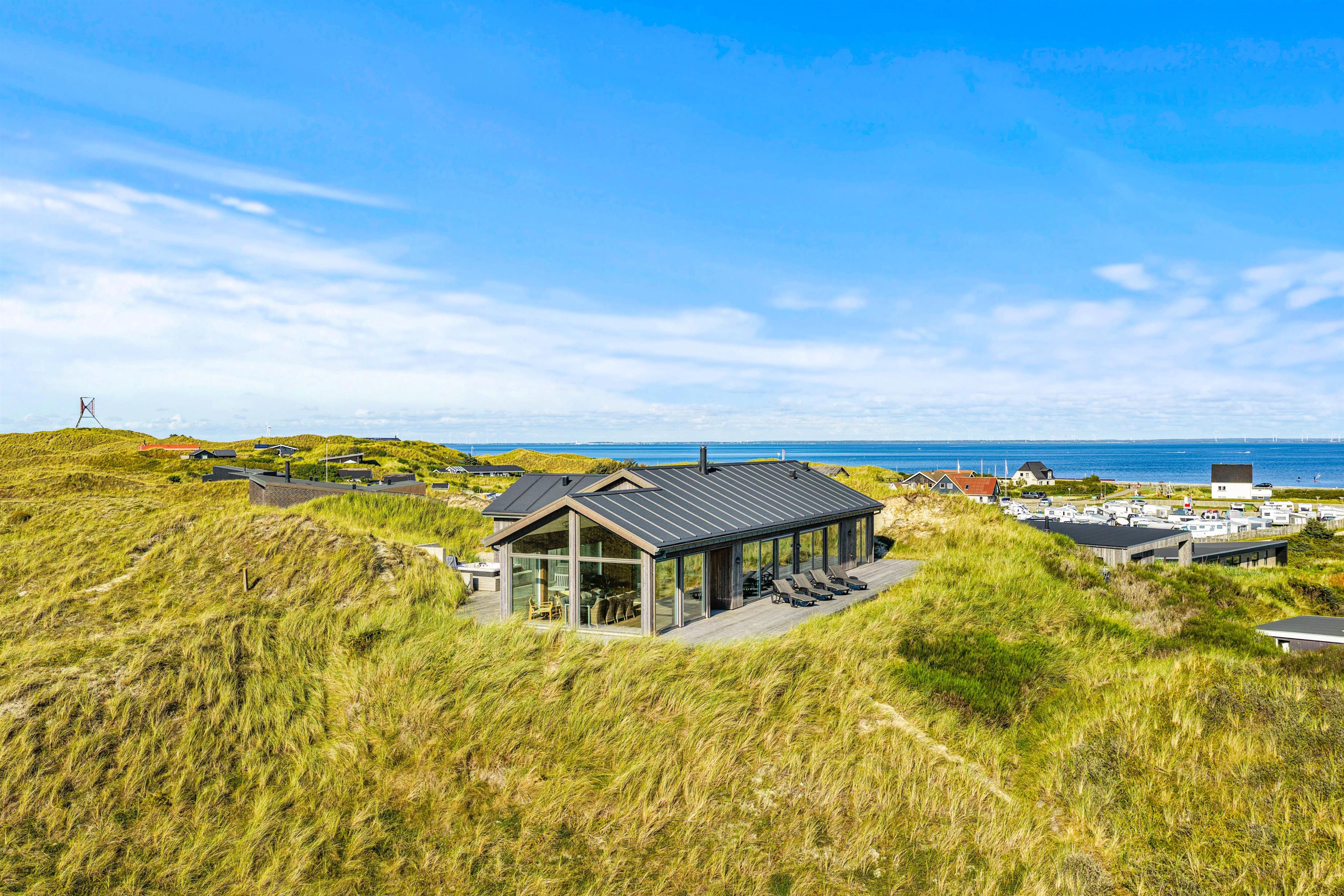 Hvis I er på jagt efter noget helt specielt, så kan ferieboligen på Karen Brands Vej 110 B være noget for jer. Sommerhuset er fra 2021 og byder på wellness i form af sauna og udespa, aktivitetsrum med billard – og dette krydret med en fantastisk panoramaudsigt over klitterne hele vejen til fjorden og en ugeneret beliggenhed.