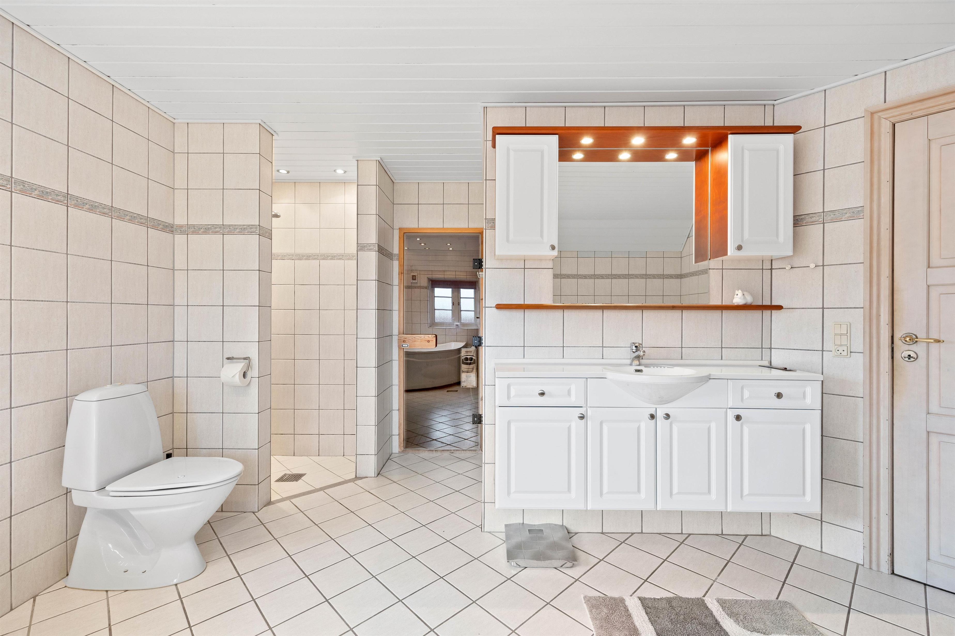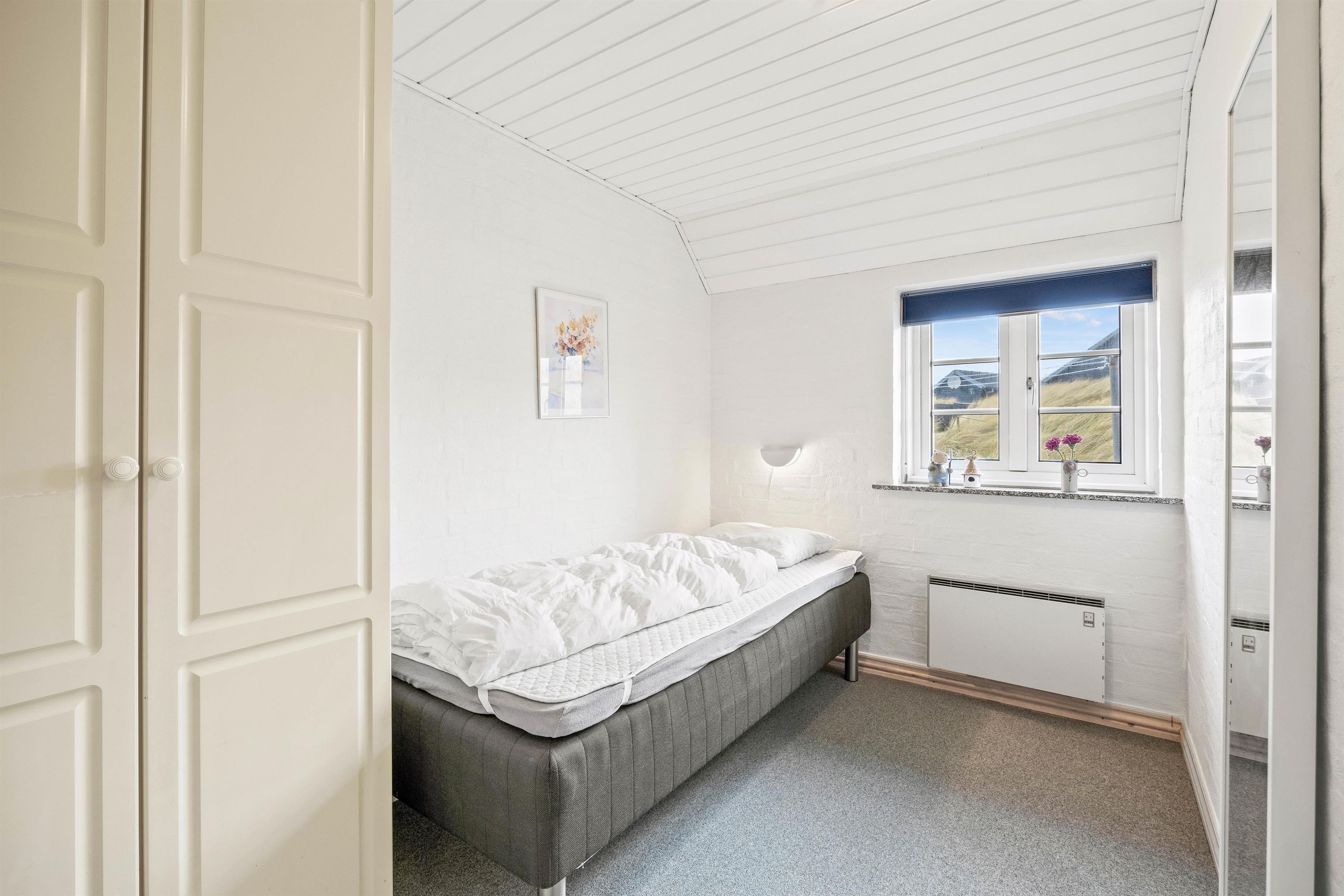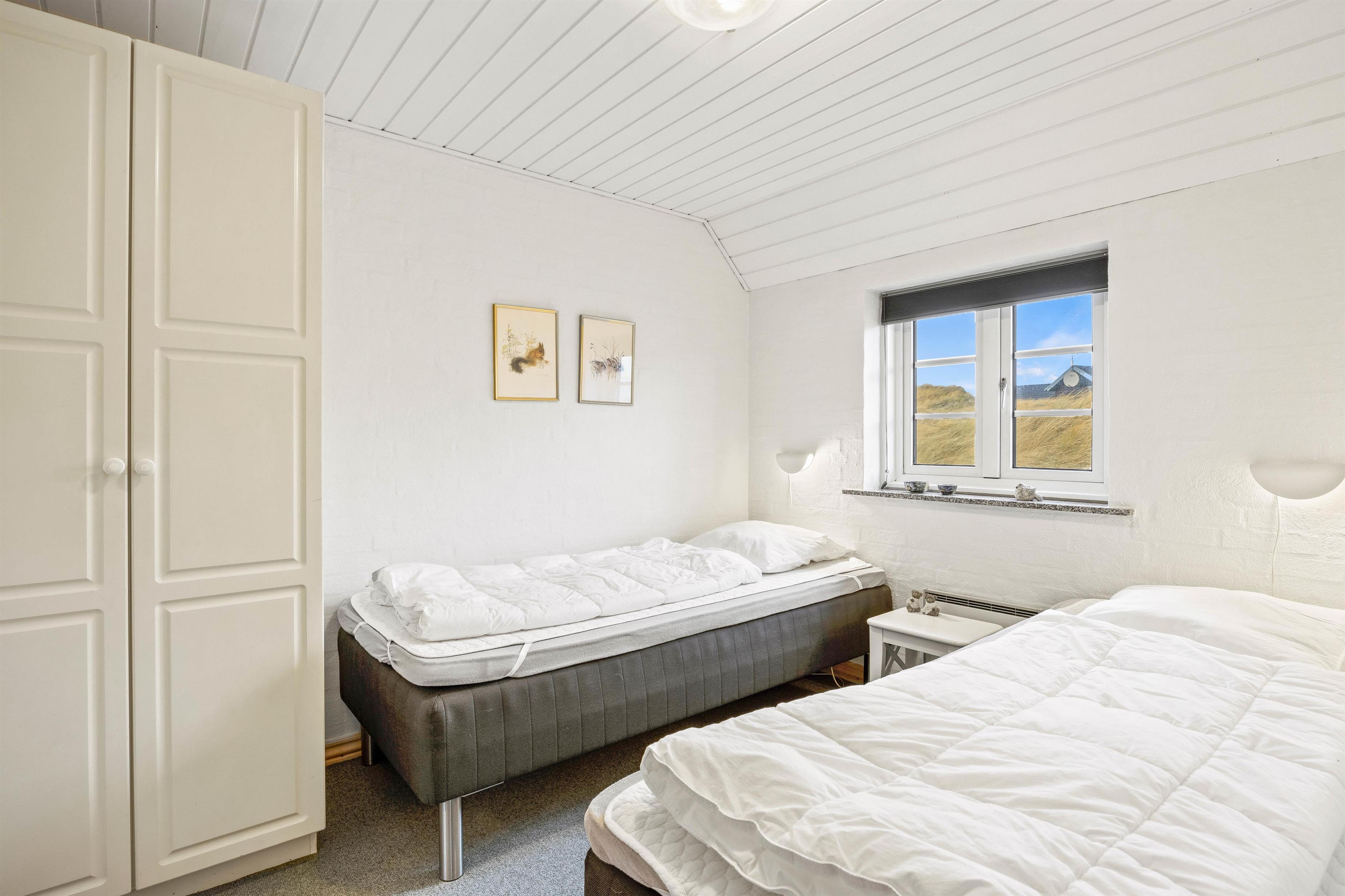 Udover det skønne opholdsrum, byder planløsningen på fire værelser, to badeværelser og et stort bryggers/indgangsparti med vaskemaskine og tørretumbler. Alle værelser har gulvtæppe samt indbyggede skabe med masser af opbevaringsplads. To værelser er med dobbeltseng, ét med to enkeltsenge, mens det sidste er indrettet med en enkeltseng. Desuden er badeværelserne er placeret lige ved siden af værelserne. På det store badeværelse har I mulighed for at slappe helt af med sauna og spa – ægte feriefornemmelser, hvor man er helt nede i gear. Mærk varmen efter en lang gåtur ved Vesterhavet, ligesom børnene vil elske at lege i det varme vand.