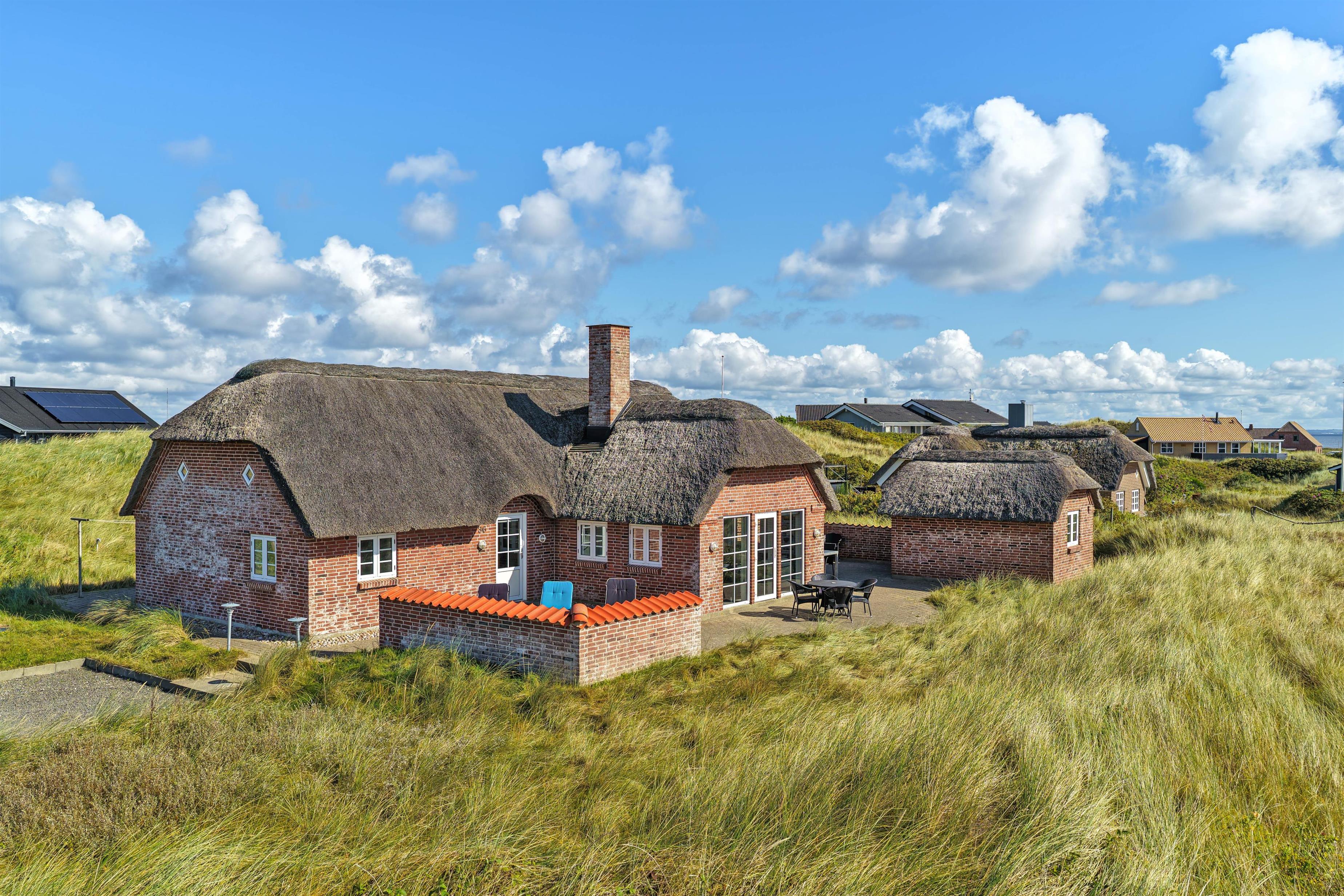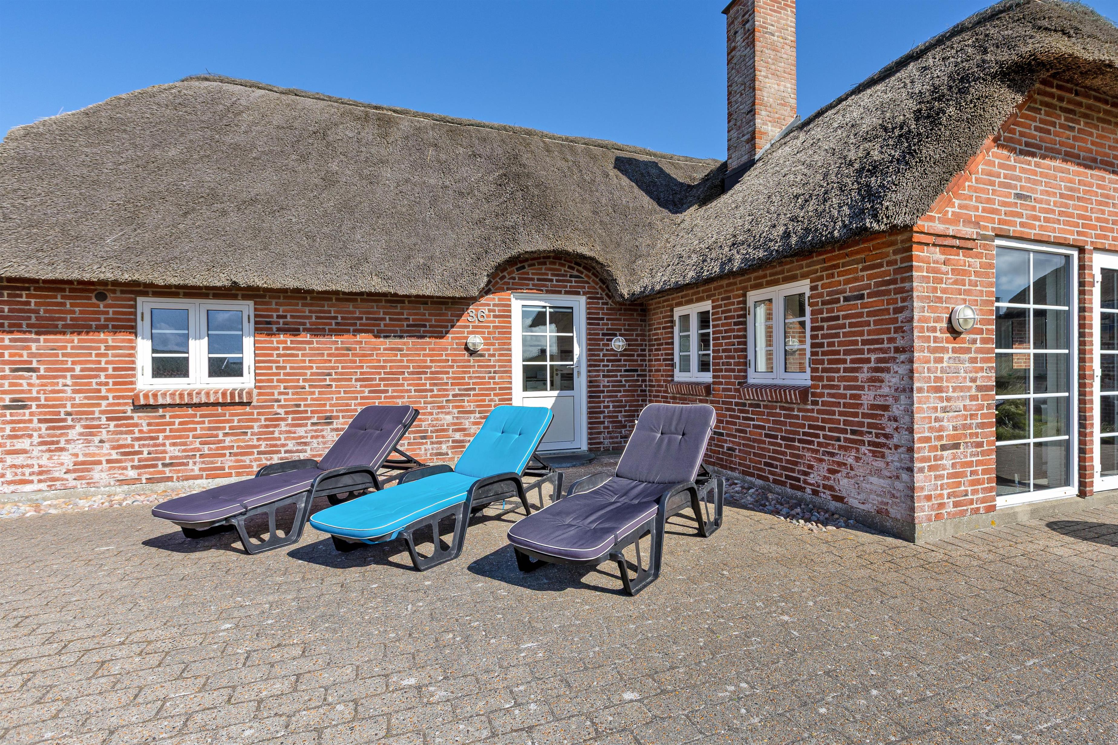 Rundt om huset har I en dejlig terrasse, der er perfekt til solbadning, grillaftner og leg. Her er alt det, man kunne tænke sig for at nyde vejret samt en sandkasse og gynger til fri afbenyttelse. Beliggenheden på Strandkrogvejen, gør det især attraktivt for børnefamilier. Vejen ligger godt og isoleret bag Karen Brands Vej og har derfor ikke trafik eller støj i nærområdet. Derimod er det et dejligt, roligt område med gode stier og flot natur, der kan udforskes på cykel eller til fods. Med kun 150 m til stranden, har I nærmest Vesterhavet brusende bølger i baghaven. Skønne Hvide Sande ligger også kun 2 kilometer væk. Her findes et bredt udvalg af hyggelige caféer, restauranter, mens her også er så hyggeligt at spise en god is og kigge i butikker på havnen. Et sand ferieparadis året rundt.