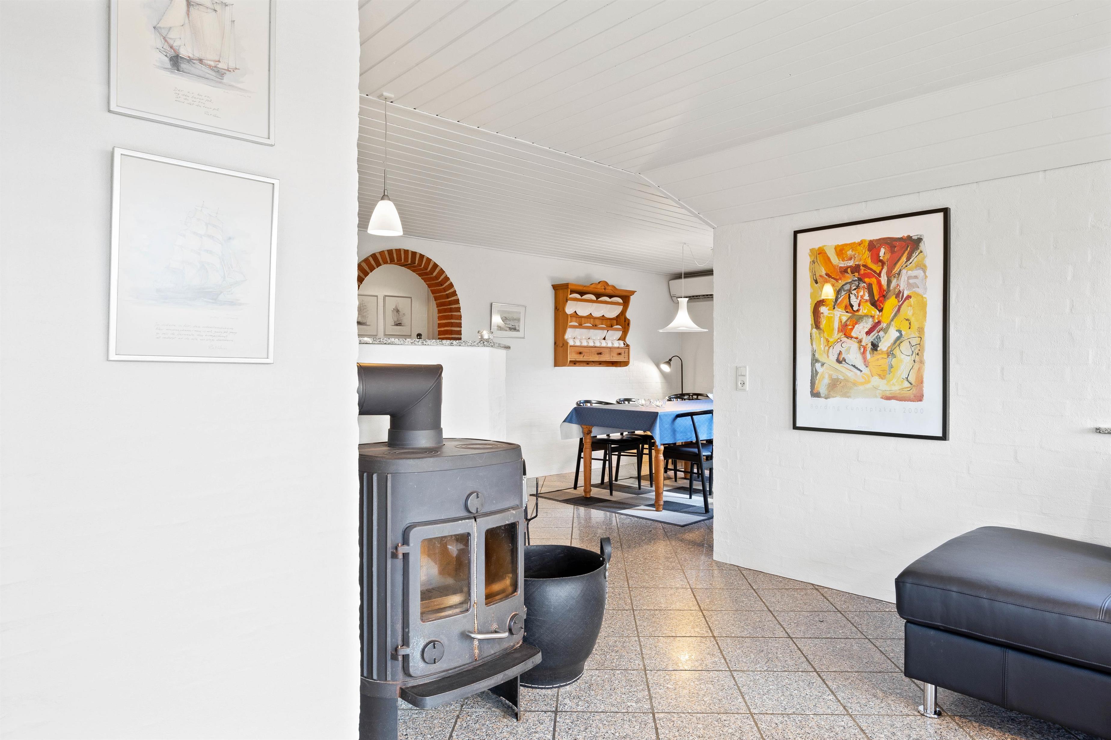 Indretningen i sommerhuset er klassisk med gode møbler og masser af kvalitetsudstyr. En rar atmosfære hvor man hurtigt føler sig hjemme. Her er lyst, et praktisk klinkegulv, som er ideelt for hundeejerne samt en masse vinduer. De mange vinduer inviterer det flotte klitlandskab med helt ind i stuen.