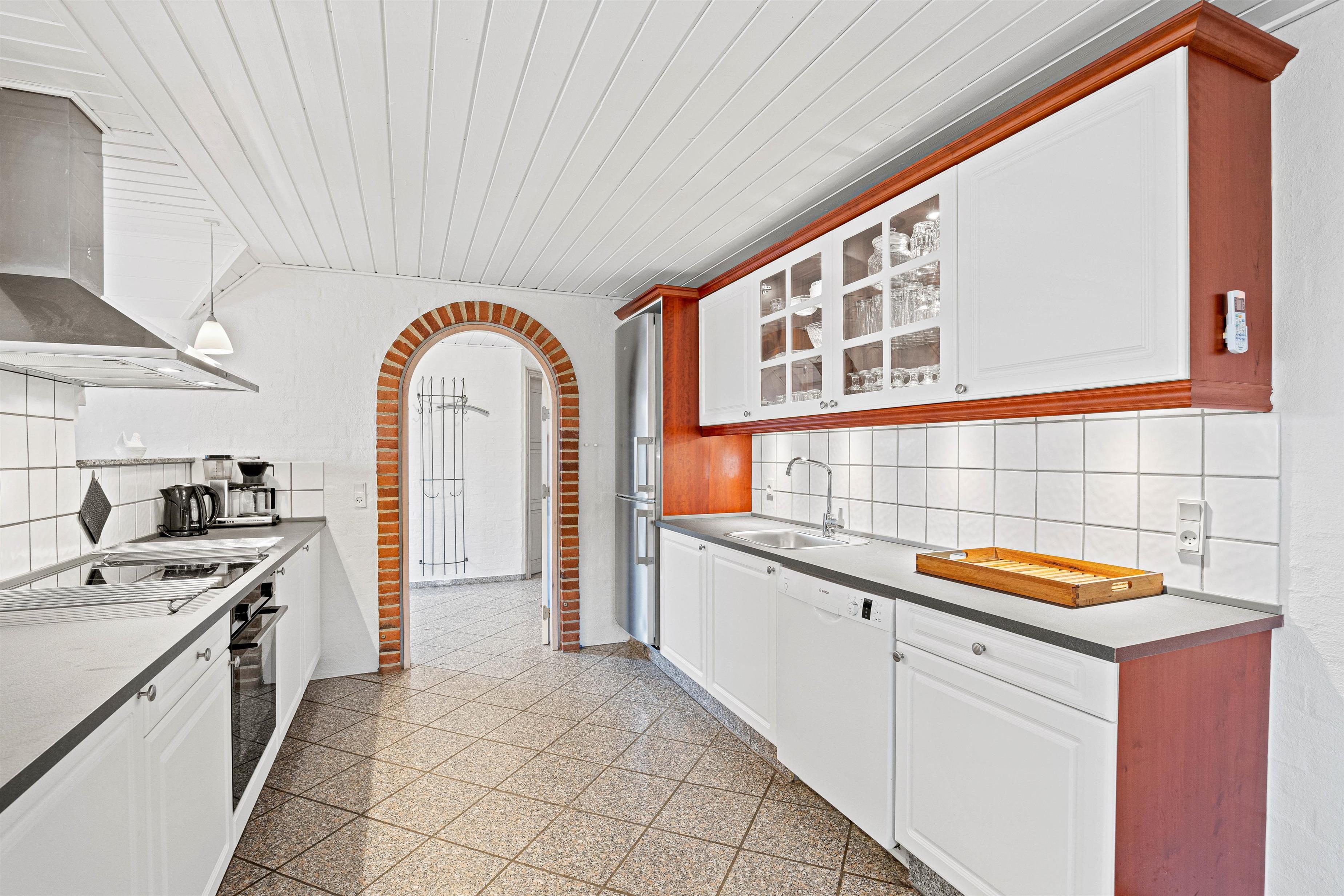 I stuen står den på afslapning, filmhygge eller hyggelige spilleaftner med yatzy, kort eller lign. Tænd op i brændeovnen, der både spreder glæde og varme. Et skønt fællesrum, hvor I kan være samlet – også selvom nogen snakker i sofaen, mens der laves mad i køkkenet. Mellem køkken og stue er der nemlig en halvvæg, der skaber et fint samtalekøkken, hvor der kan tilberedes lækre retter. Retter, der samler hele flokken omkring spisebordet.