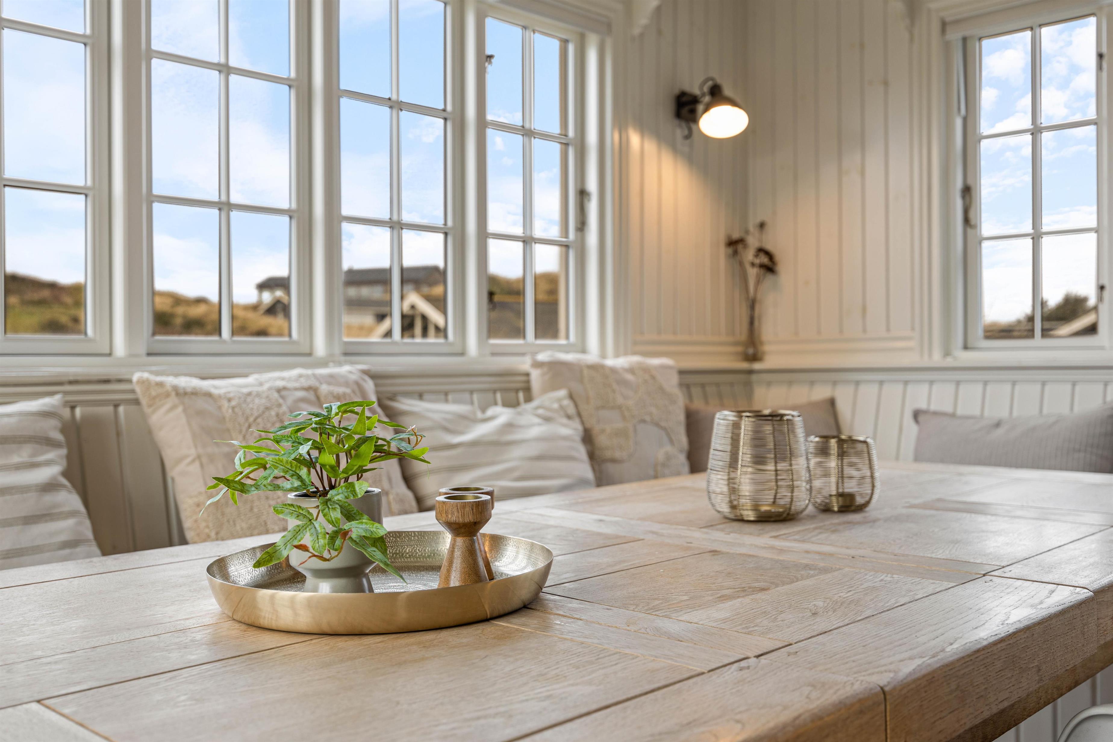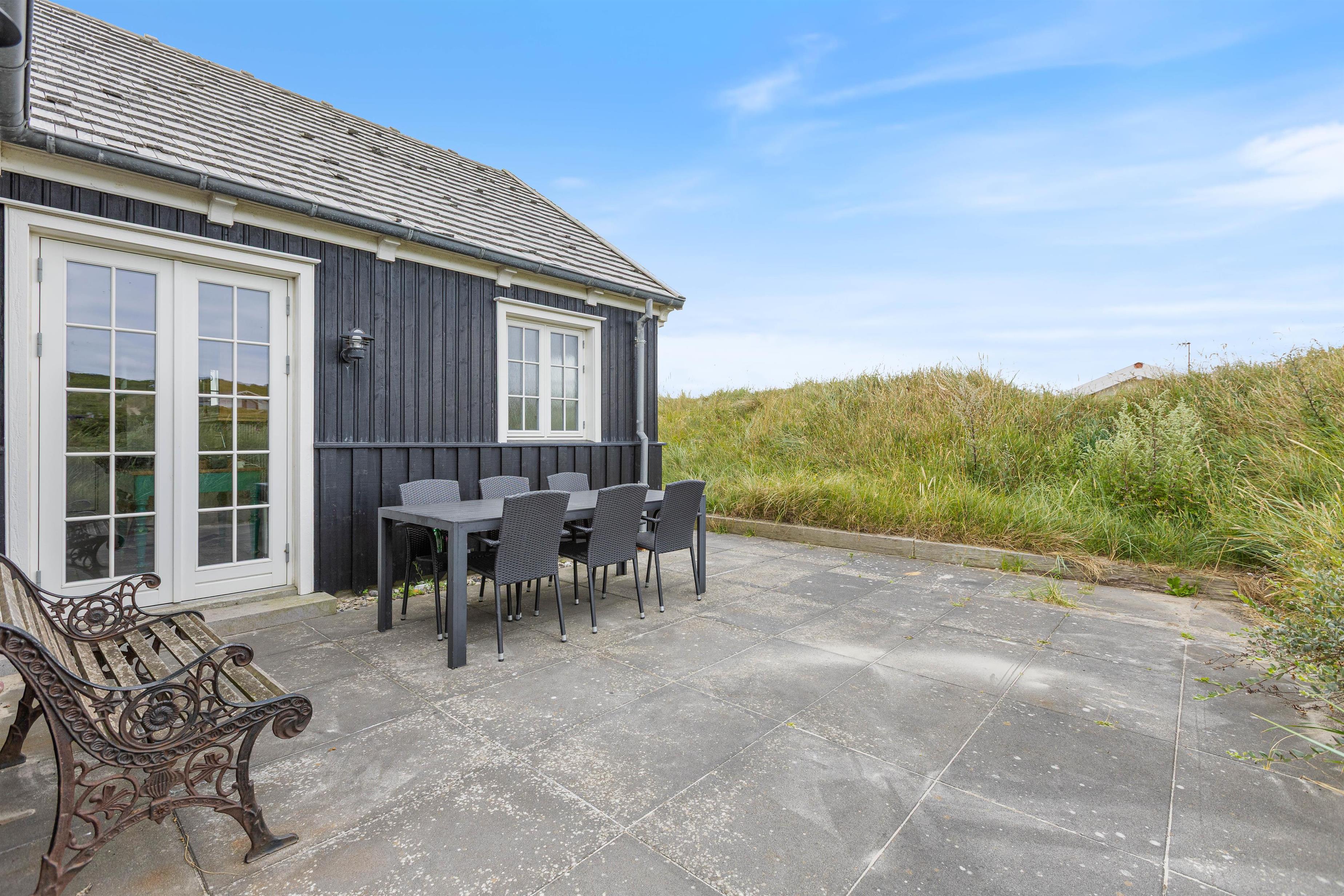 Til feriehuset hører der også skønne terrasser. Her kan du altid finde en hyggelig krog, nyde roen og de smukke omgivelser – måske endda med et glas vin, mens bøfferne vendes på grillen og du hører Vesterhavets brusen i det fjerne.