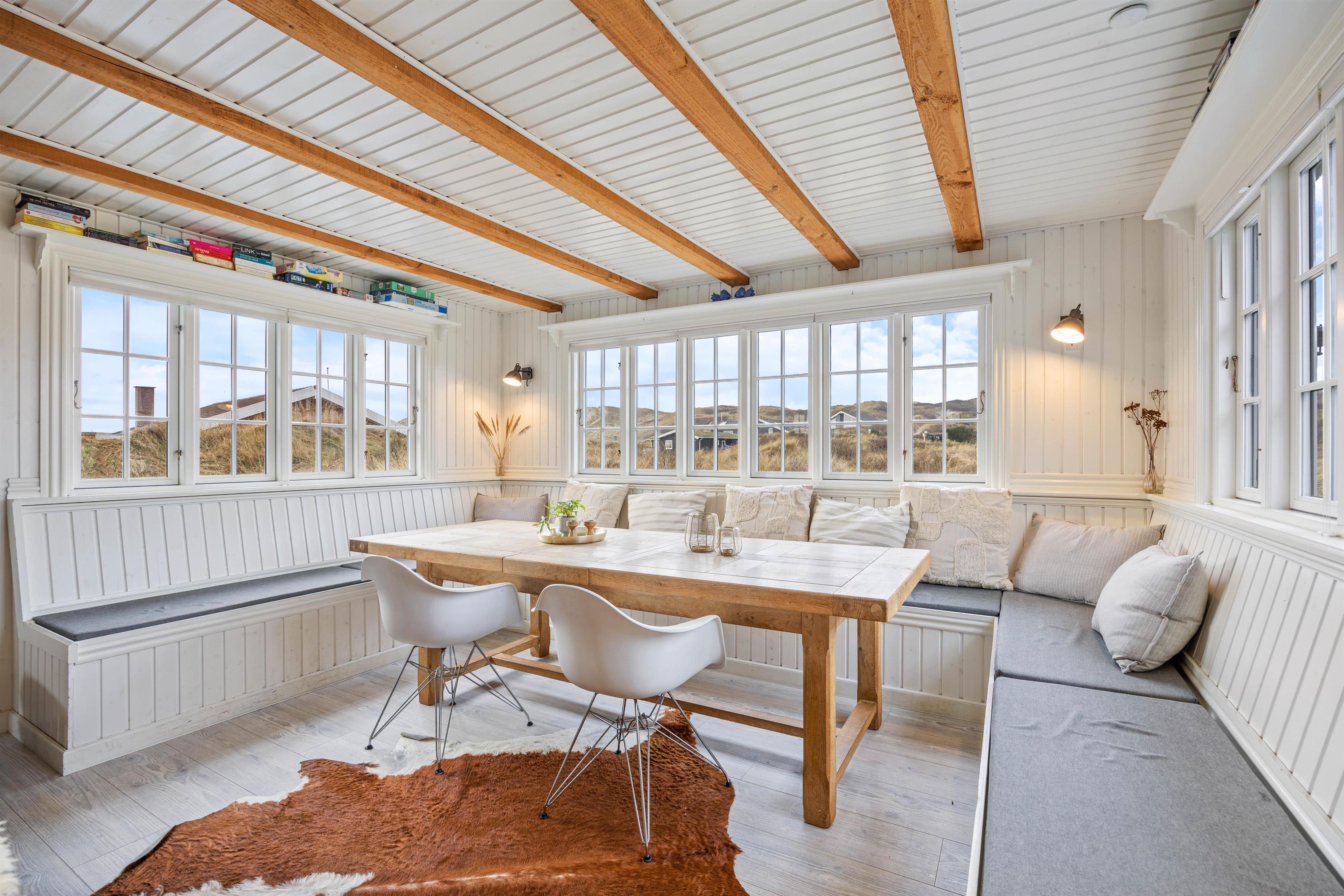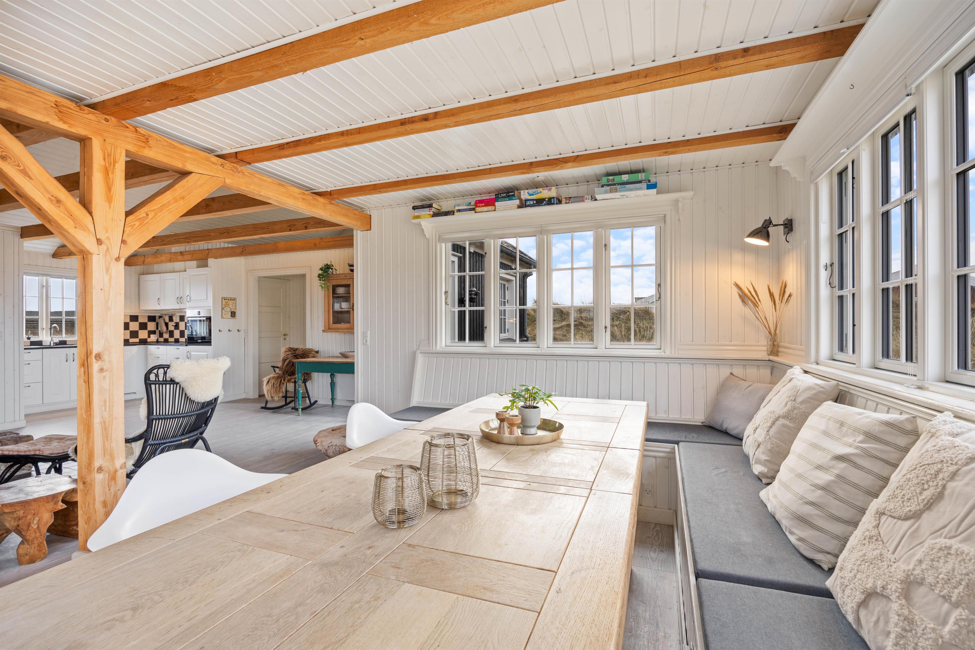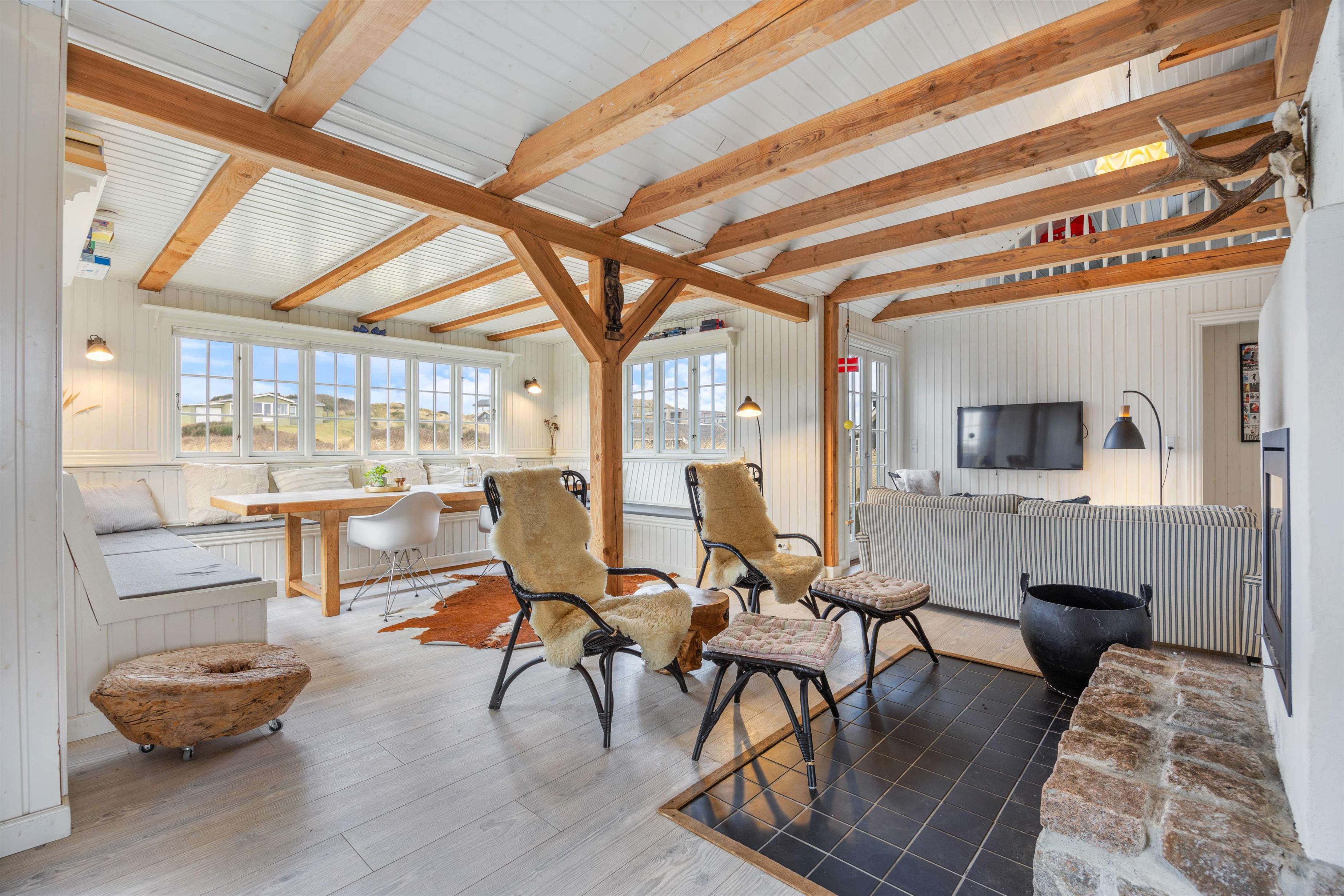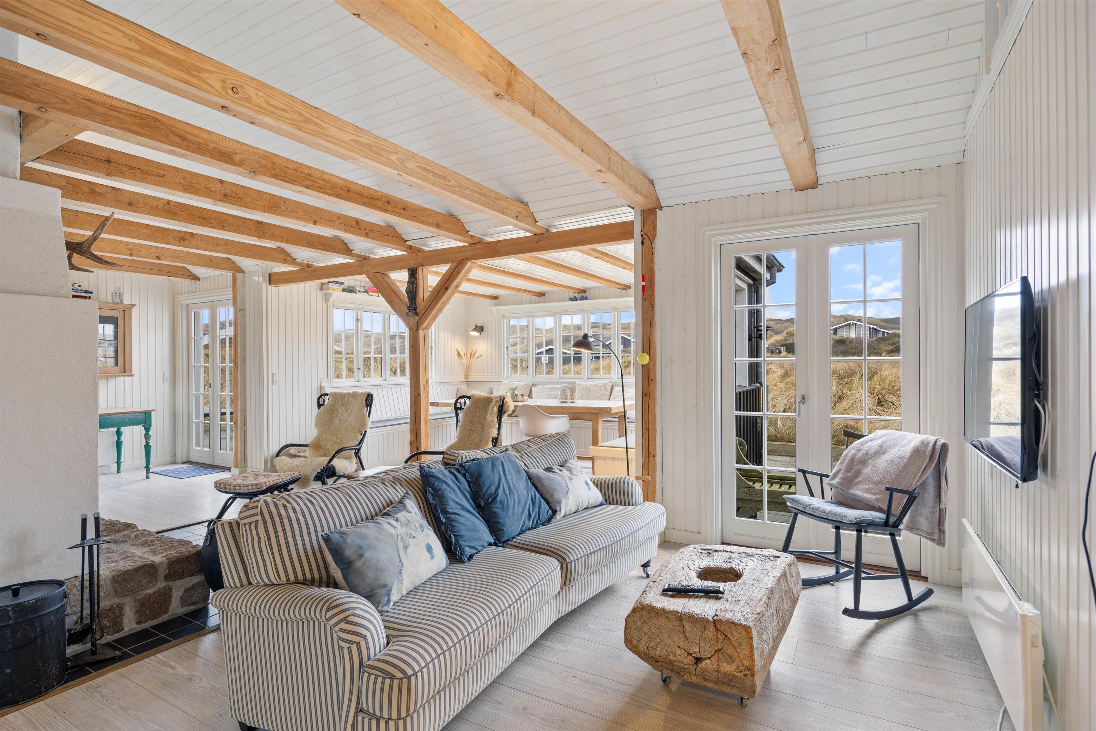Dette feriehus har en helt fantastisk beliggenhed, og en helt fantastisk skøn og smagfuld indretning. En af Vesterhavets bedste sandstrande, gode områder for surfing samt havnebyen, Hvide Sande så tæt på, at du bare kan gå eller cykle dertil.
