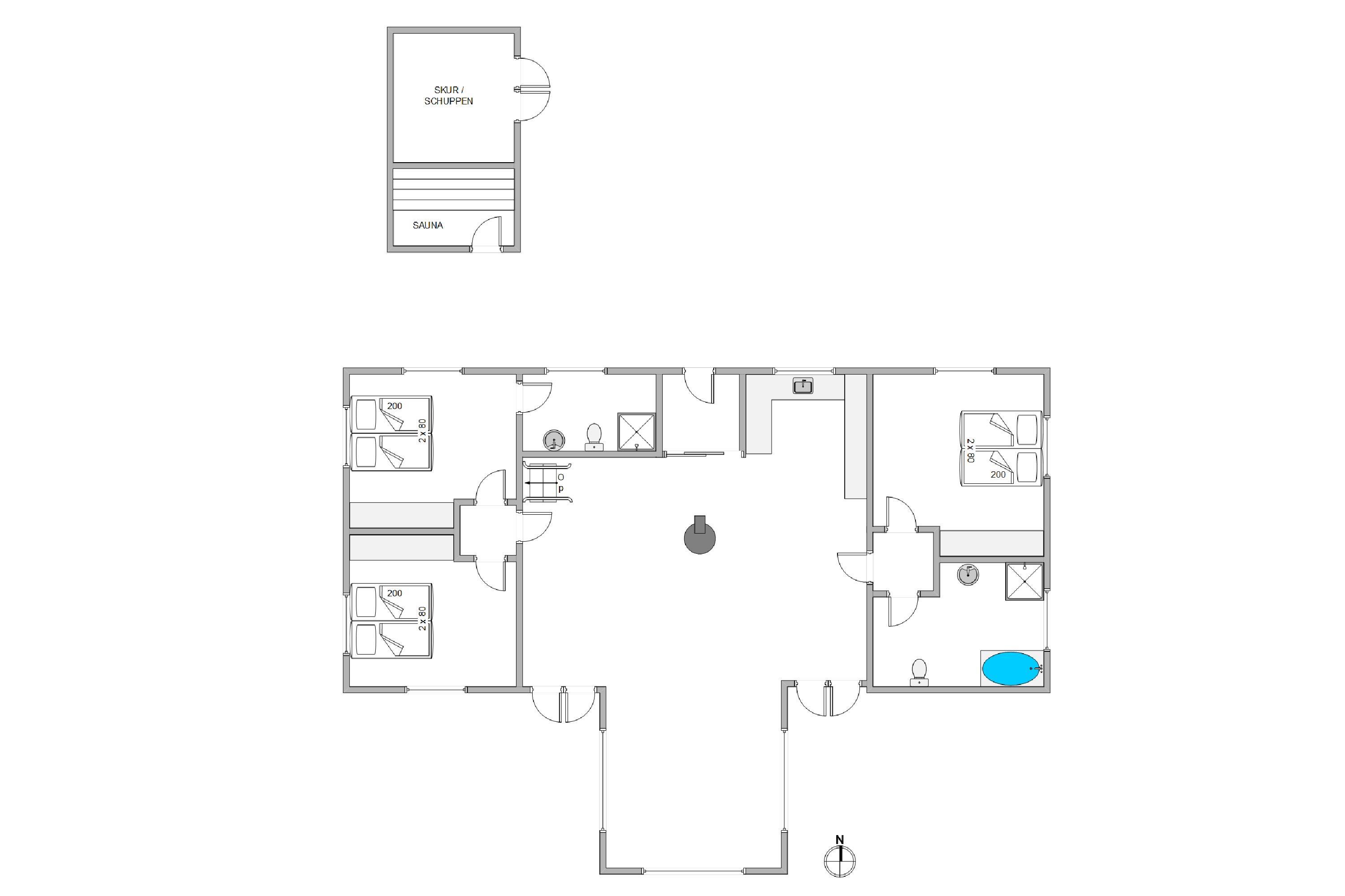 Fra feriehuset har du kun en kort gåtur ned til Vesterhavet og dets skønne sandstrand, som ikke alene indbyder til forfriskende badeture om sommeren, men også til dejlige gåture langs vandet hele året rundt. Fra april til novemver kan du skylle salt og sand fra strandturen af under husets udebruser.