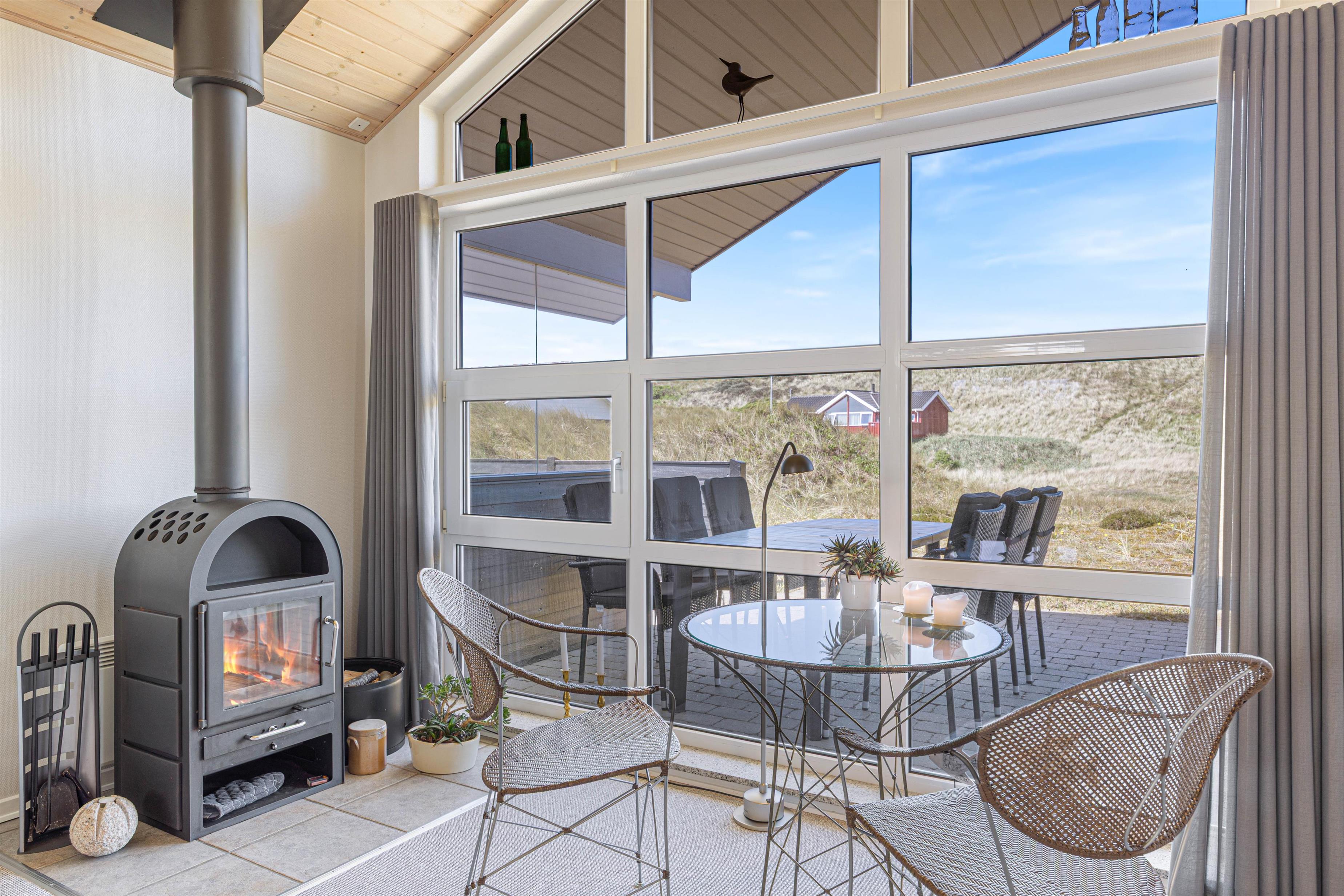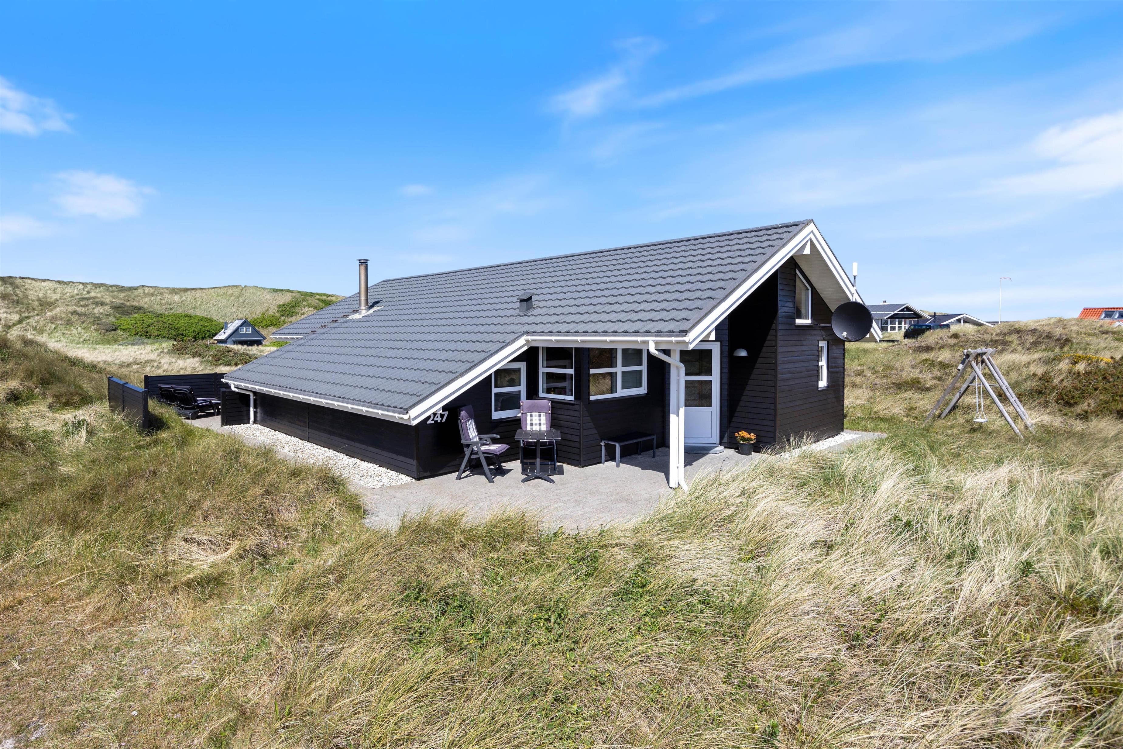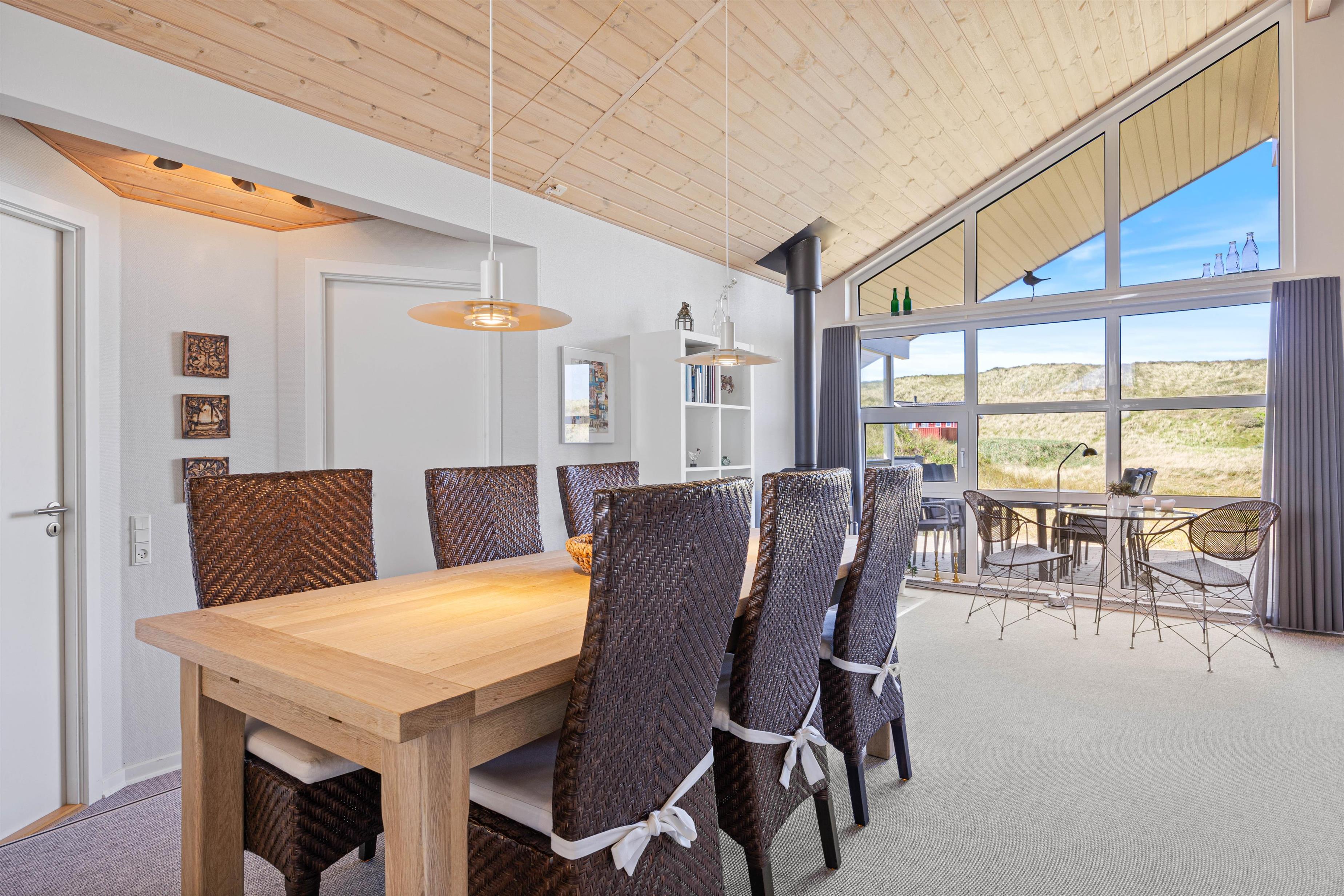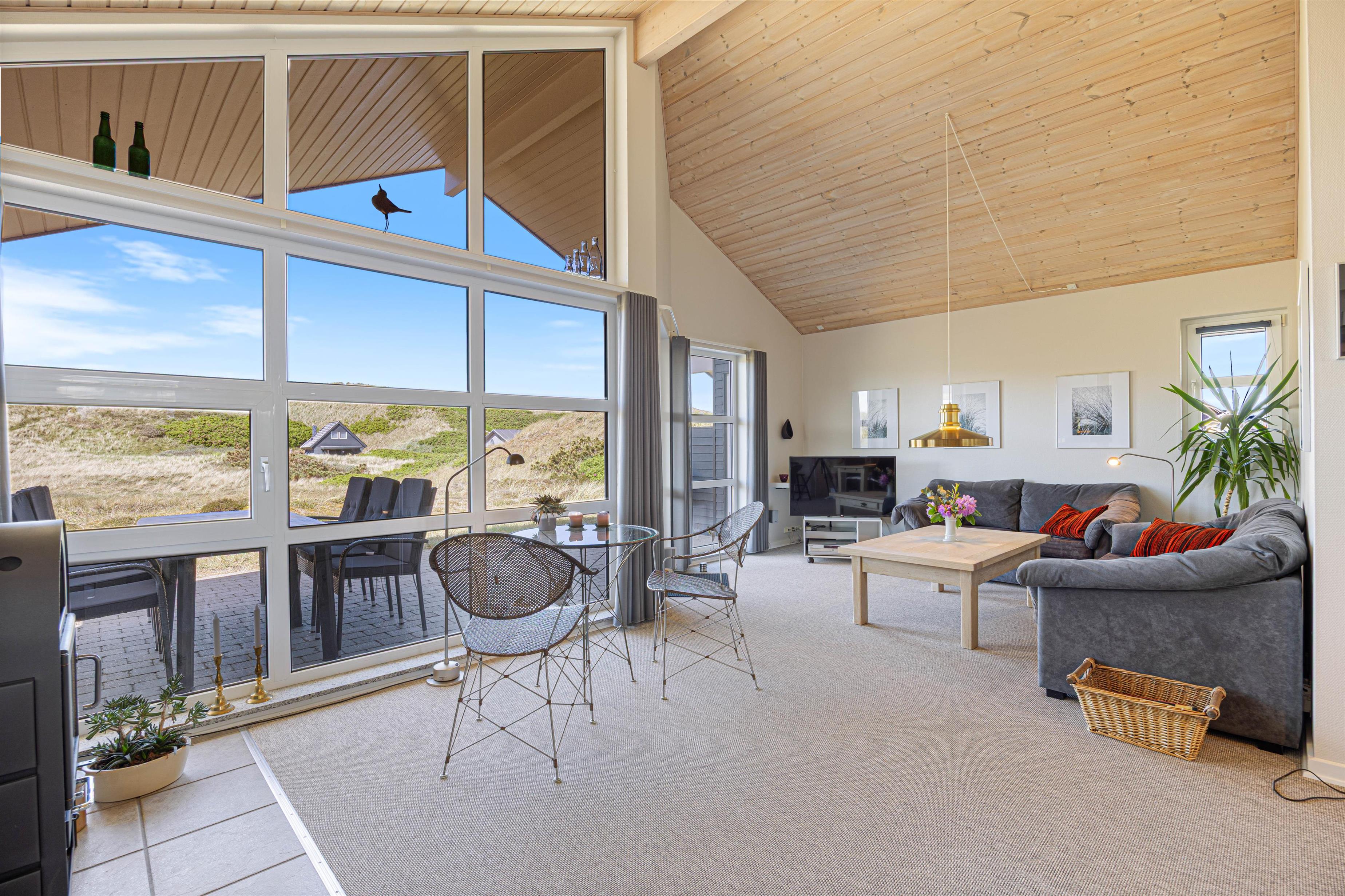 Ferie er lig med afslapning, gode middage og ro. I dette feriehus er der rig mulighed for dette, og her er plads til at I kan være sammen som familie. Indretningen i sommerhuset er hyggelig, og de mange personlige elementer formår at skabe en hjemlig og indbydende stemning. I det åbne køkken med stue kan I samles hele familien og nyde en lækker middag med udsigt til de grønne klitter.
