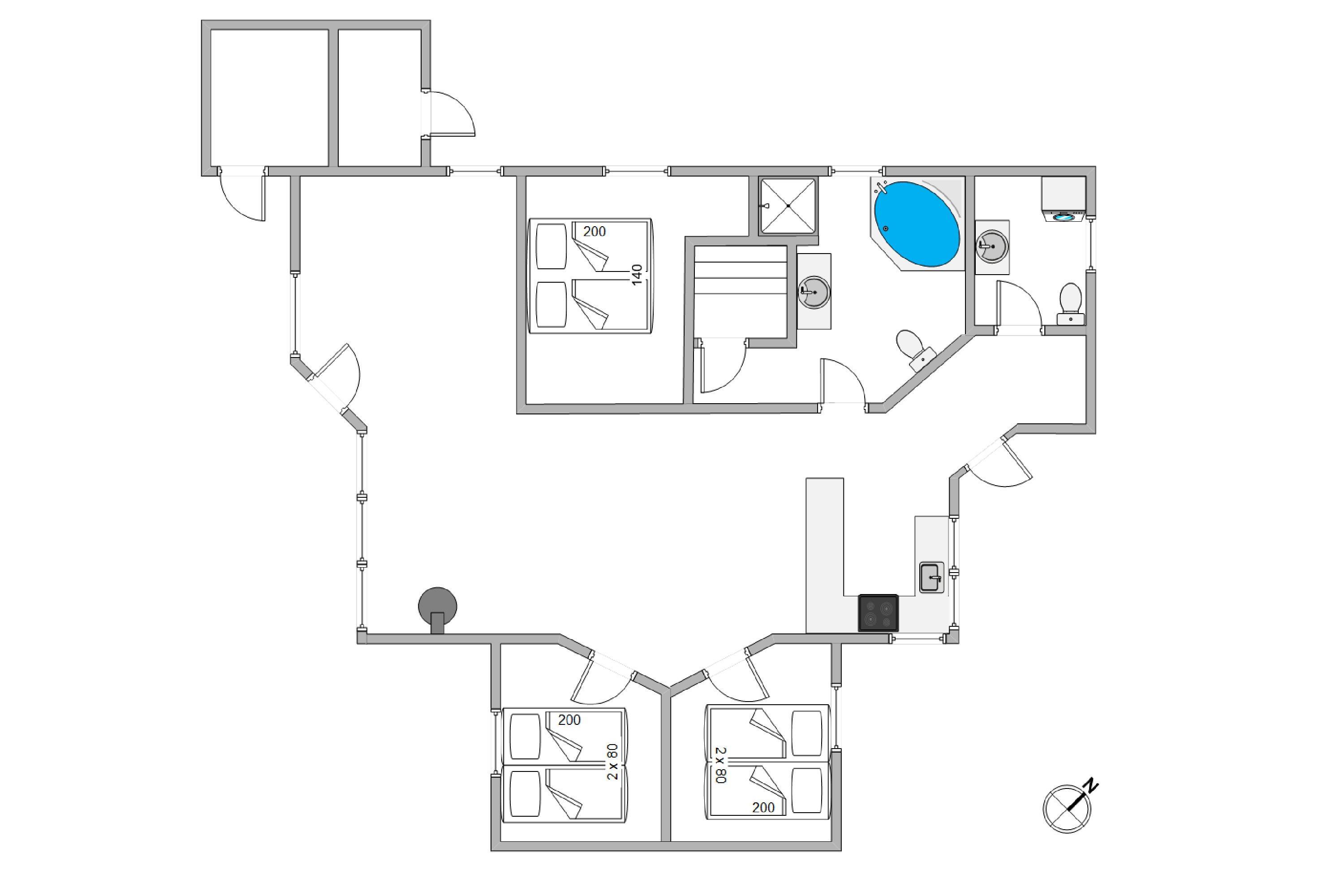 Sommerhusets 6 sovepladser fordeler sig på 3 gode værelser, som alle er indrettet med dobbeltsenge. Her kan I tanke ny energi til morgendagens ferieaktiviteter. Derudover finder I et badeværelse samt et gæstetoilet, begge med gulvvarme.