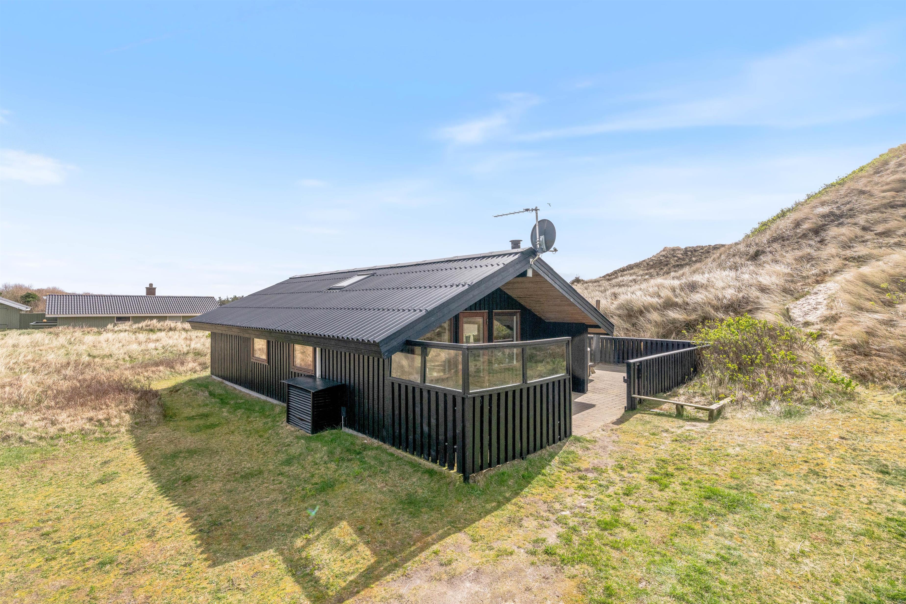 Sommerhuset er placeret på et af områdets karakteristiske natur- og klitgrunde, hvor både både børn og voksne vil nyde at være og gå på opdagelse.