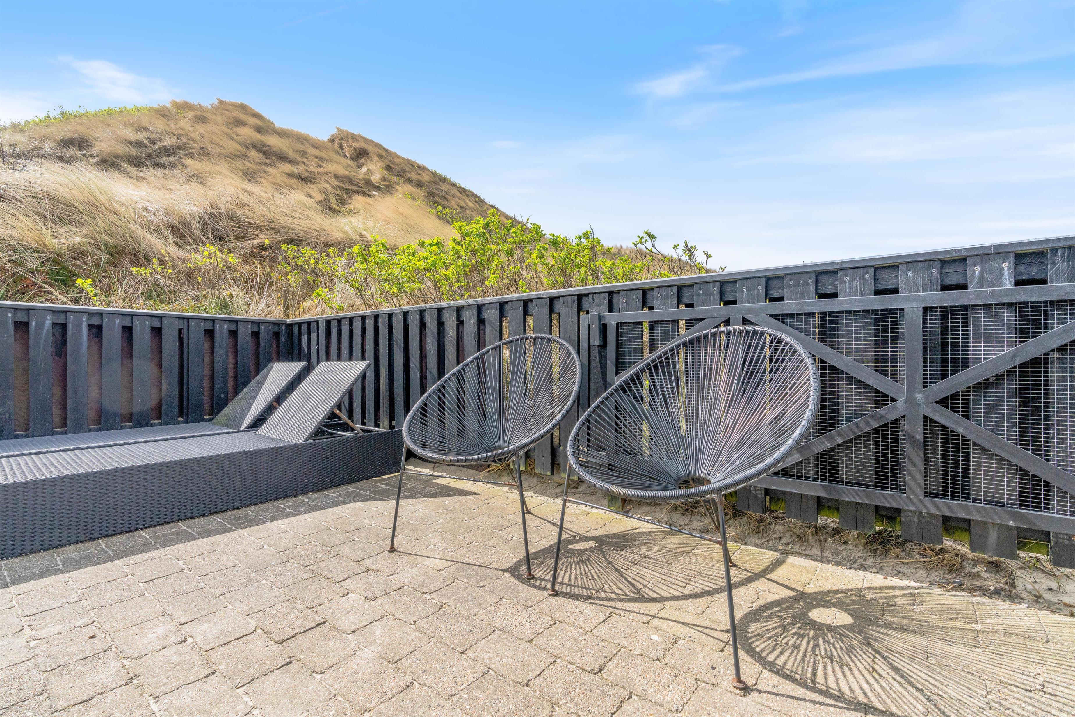 Husets rummelige, delvist afskærmede og overdækkede terrasse er lavet til forholdene tæt på Vesterhavet, så I altid kan finde et læfyldt sted og nyde den friske havluft. En lille ekstra bonus er den lille terrasse på sydsiden af huset, hvor man kan nyde en stille stund med sin morgenkaffe.