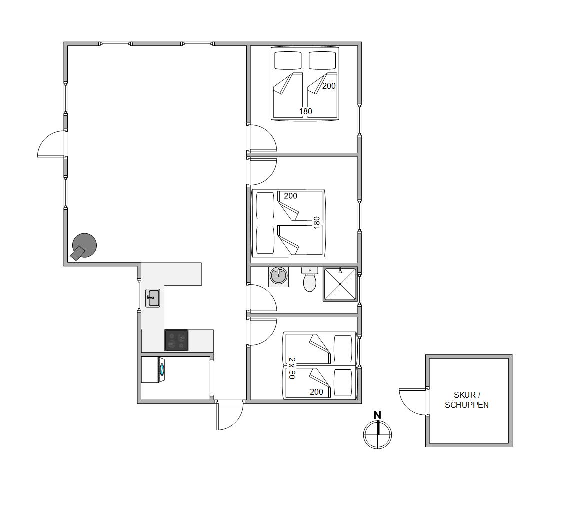 Ved ankomsten til Tingodden 174 omfavner jer en afslappet og beroligende atmosfære, hvor det smukke interiør straks får jer til at føle jer hjemme. De store og rummelige soveværelser er perfekte til at genoplade batterierne efter en dag fyldt med spændende oplevelser. Soveværelserne er indrettet som følger - 3 soveværelser med henholdsvis 2 dobbeltsenge og 2 enkeltsenge. Derudover er der et badeværelse med gulvvarme - så ingen kolde tæer om morgenen.