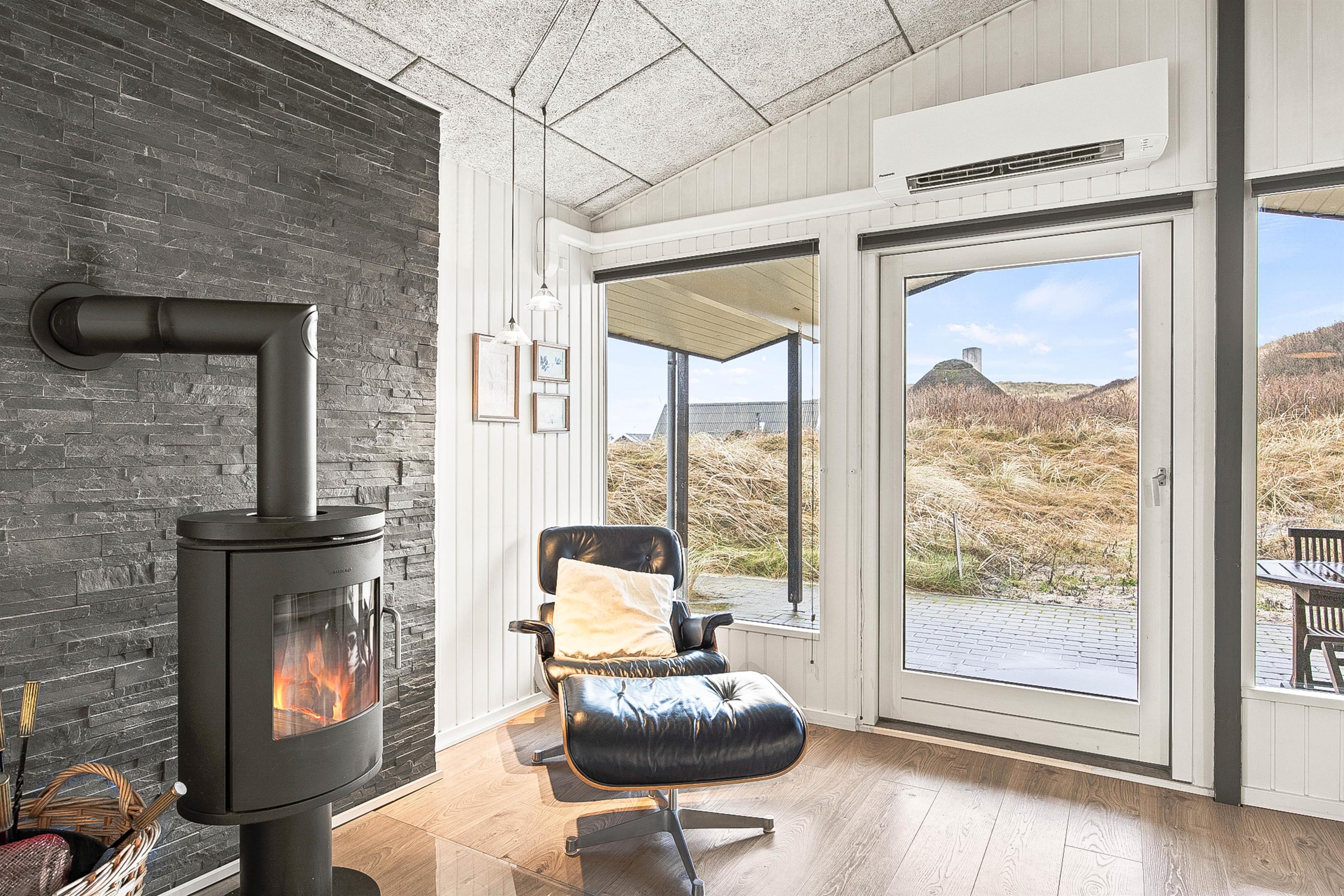 I stuen kan I tænde op i brændeovnen og skrue ekstra op for feriehyggen og varmen. Ellers sørger en energivenlig varmepumpe for et godt indeklima i feriehuset.