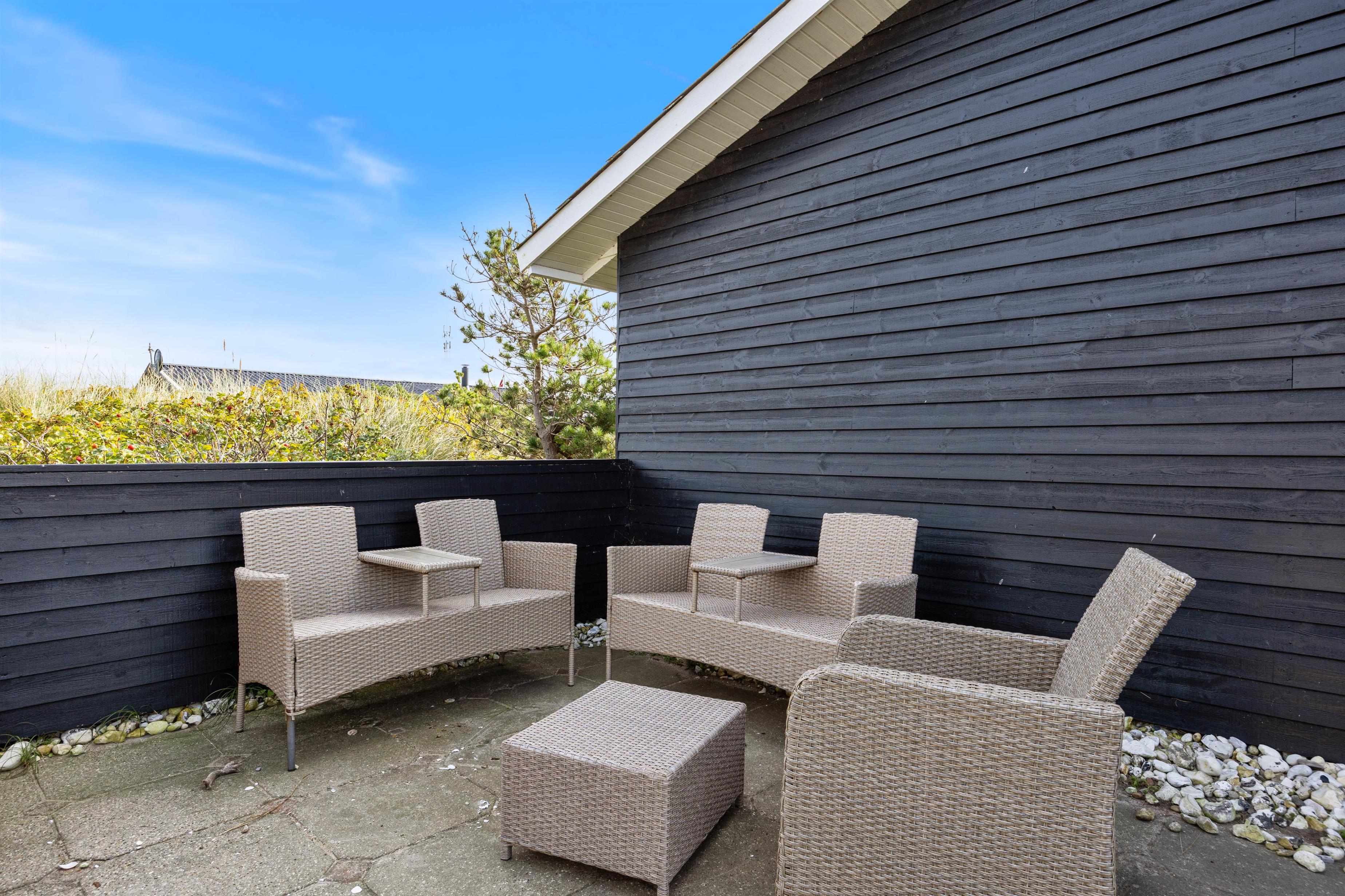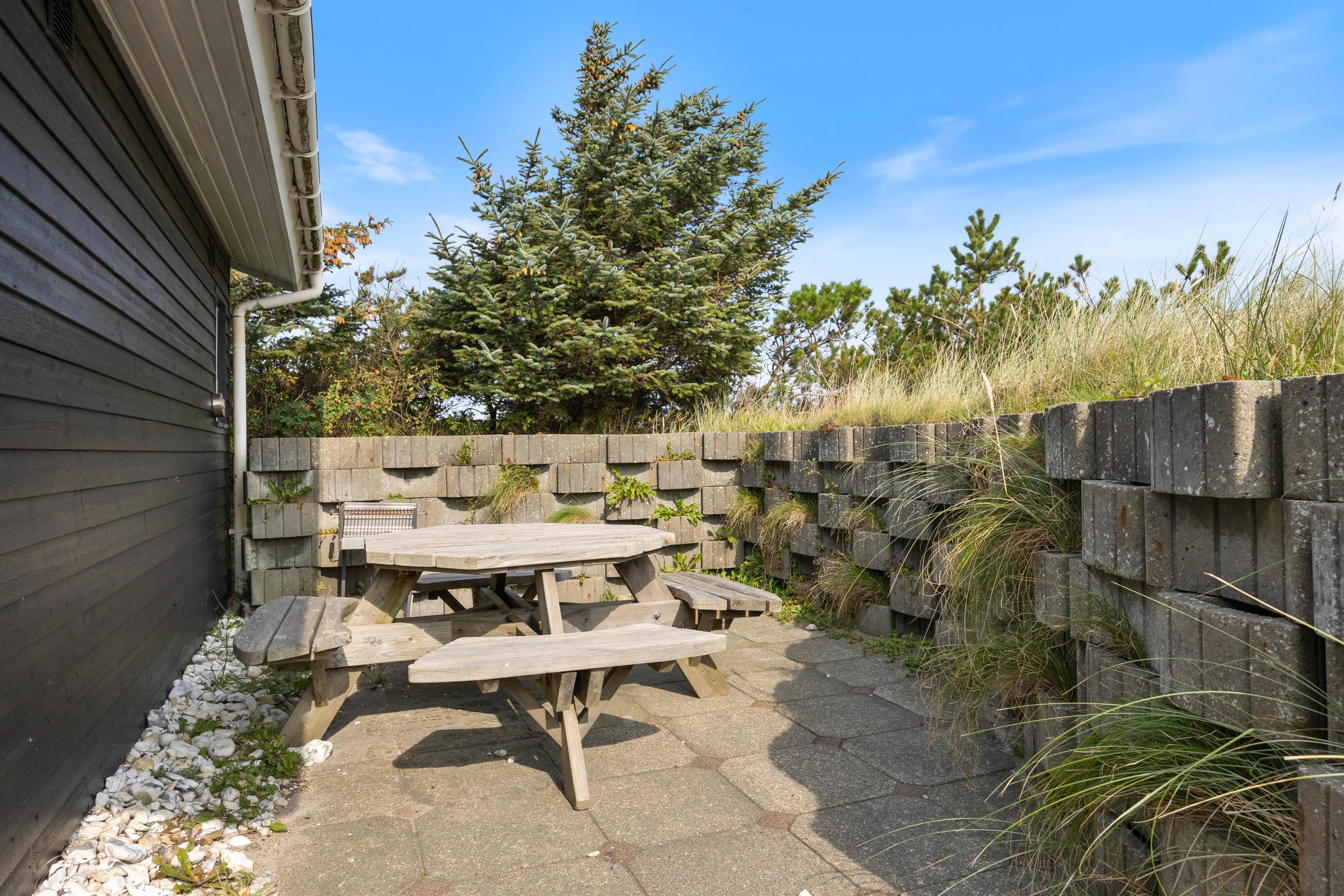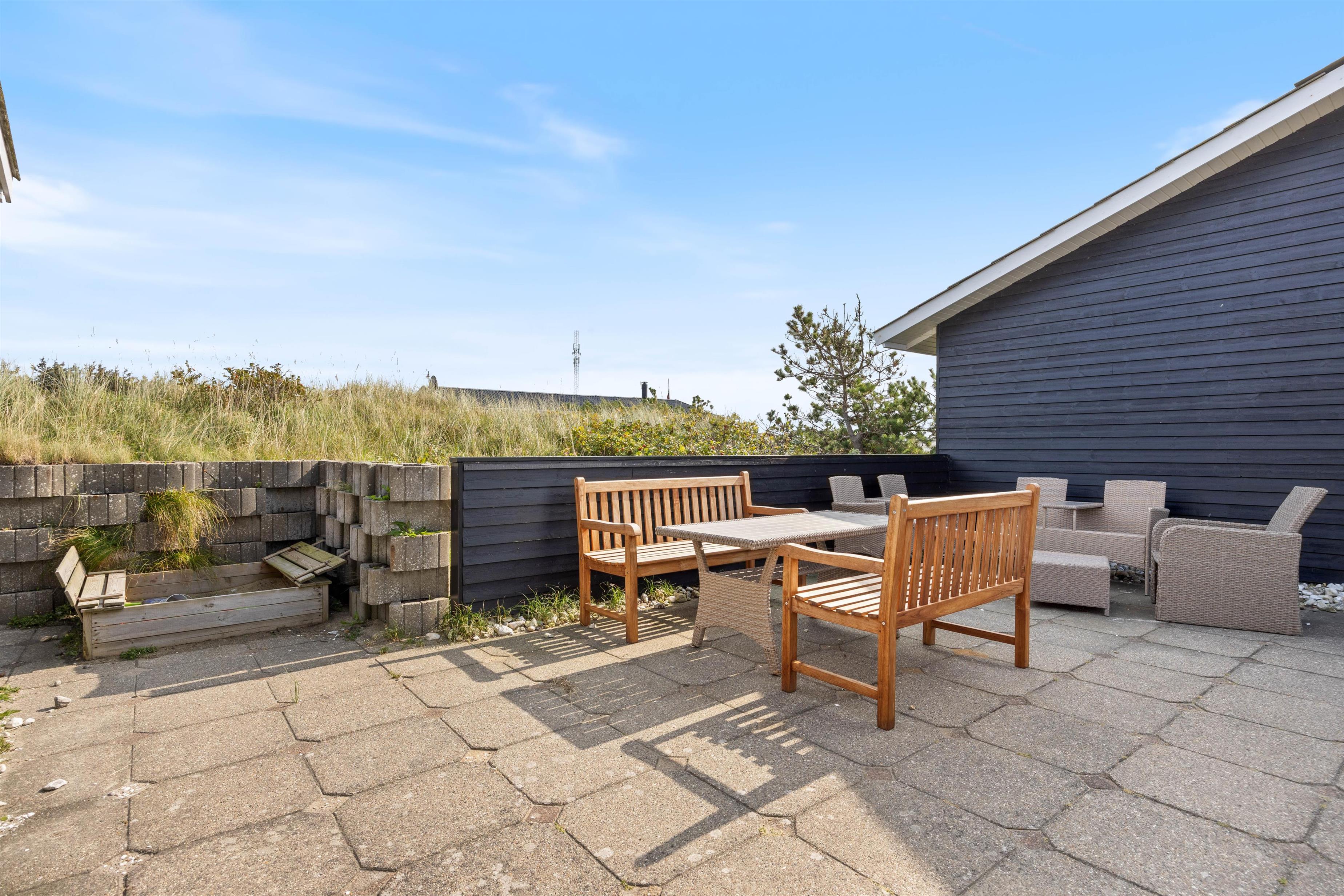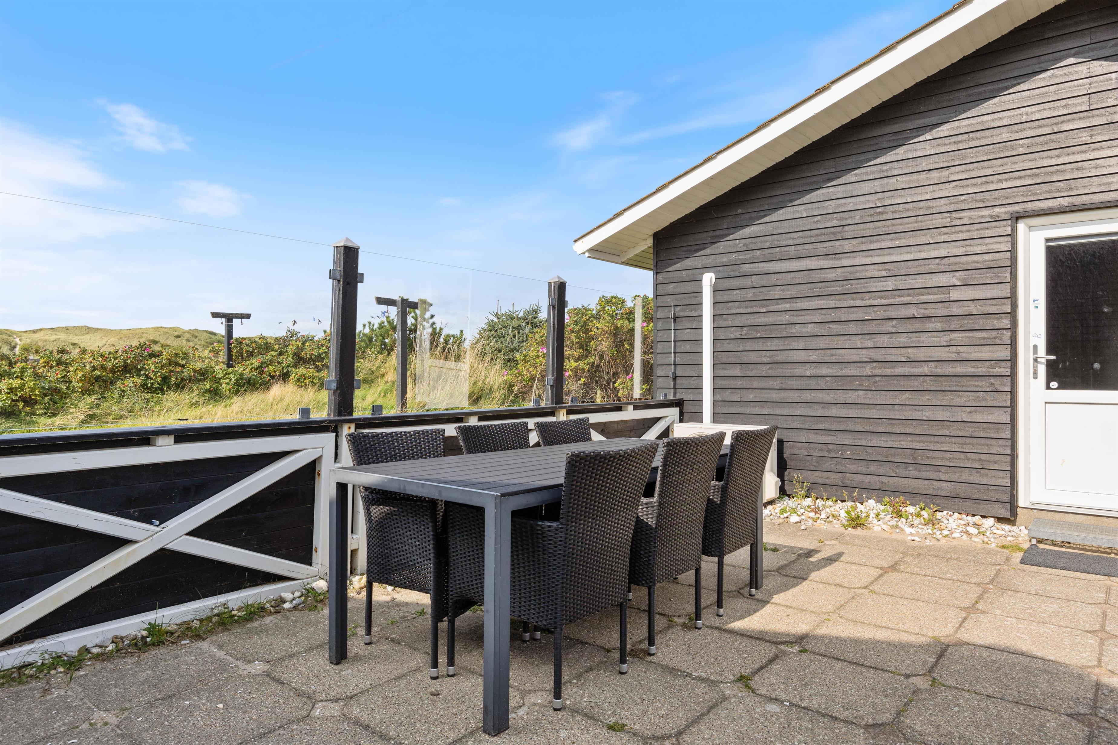 Den skønne solgård, der ligger mellem hovedhuset og annekset er perfekt til lange grillaftner, mens solen går ned. Nyd terrassen sammen med venner og familie. Når dagen gå på hæld, kan I gå en tur til vandet, som ligger bare 250 meter fra huset. Her kan I nyde den smukke natur, mens solen går ned i horisonten. Et besøg ved Vesterhavet er altid noget særligt – både sommer og vinter, morgen, middag og aften.