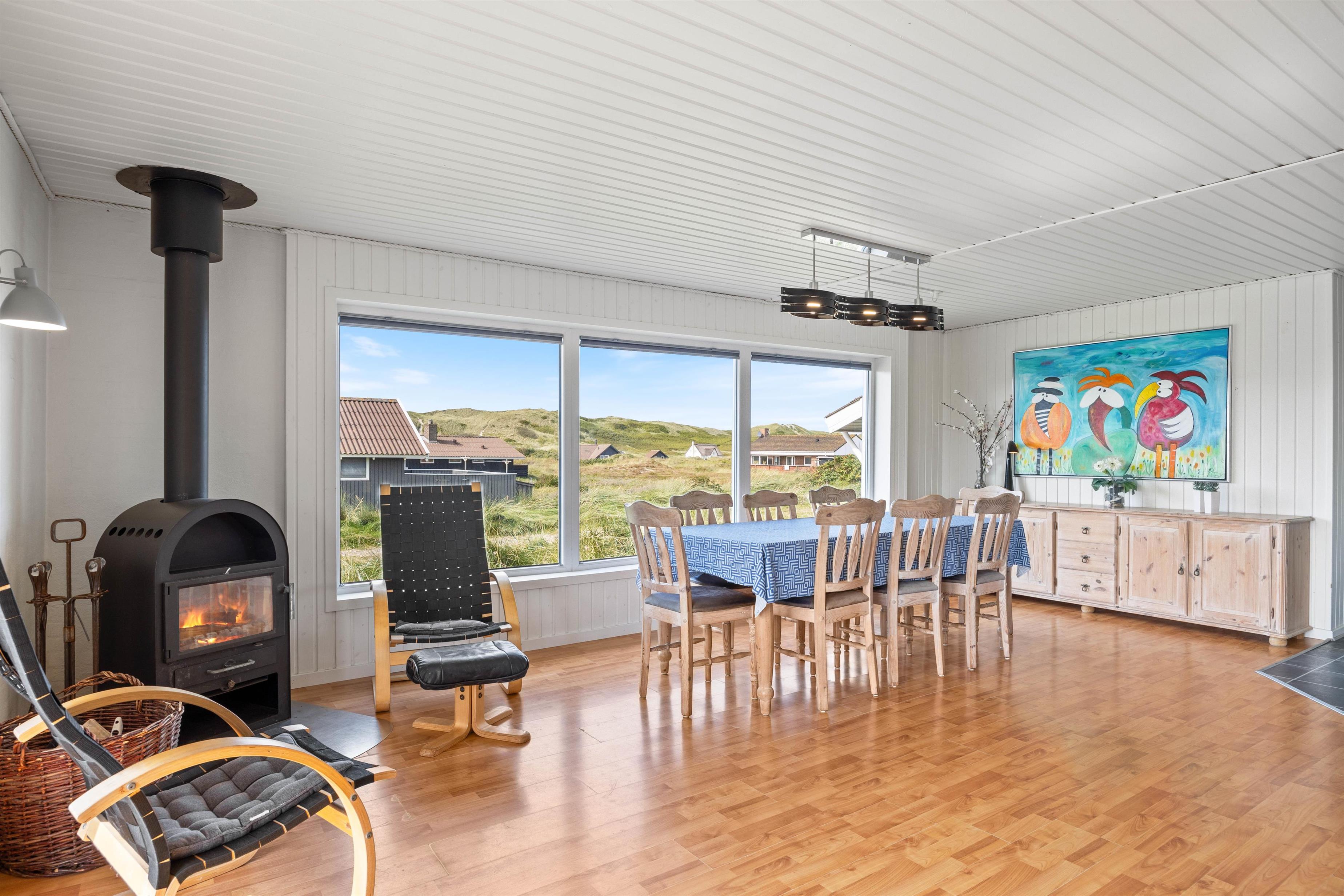 Det dejlige sommerhus på Tingodden ved Årgab ligger i et naturskønt område med bølgende klitter, flade hedestykker og dejligt vand. Designmæssigt er huset lyst og imødekommende indrettet. De træbeklædte vægge er malet hvide for at trække så meget dagslys ind i huset som muligt, også på regnvejrsdage.