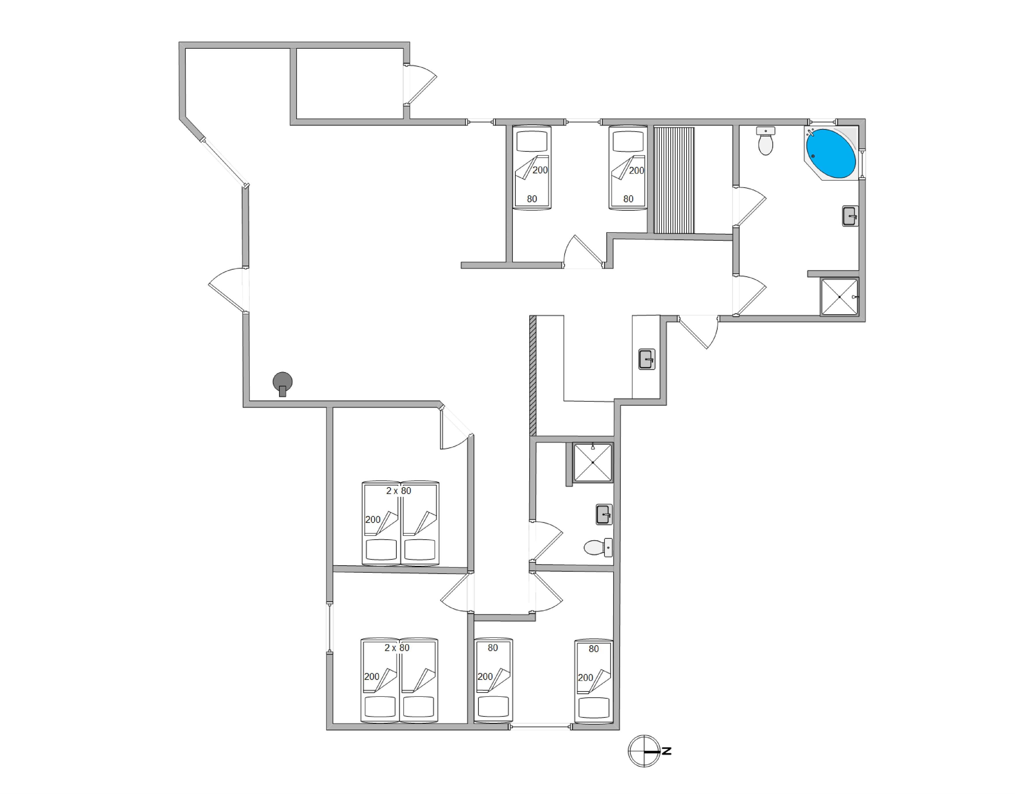 Efter en dejlig lang dag ude i det fri, er det skønt at komme tilbage til huset og bare slappe af. Husets badeværelse har et dejligt stor spabad. Over spabadet skaber små lys illusionen af en smuk stjernehimmel. Hop i det varme vand, nyd roen og lyset fra nattehimlens skær. Derudover er der fra badeværelset indgang til husets sauna, som man glædeligt kan benytte sig af.
