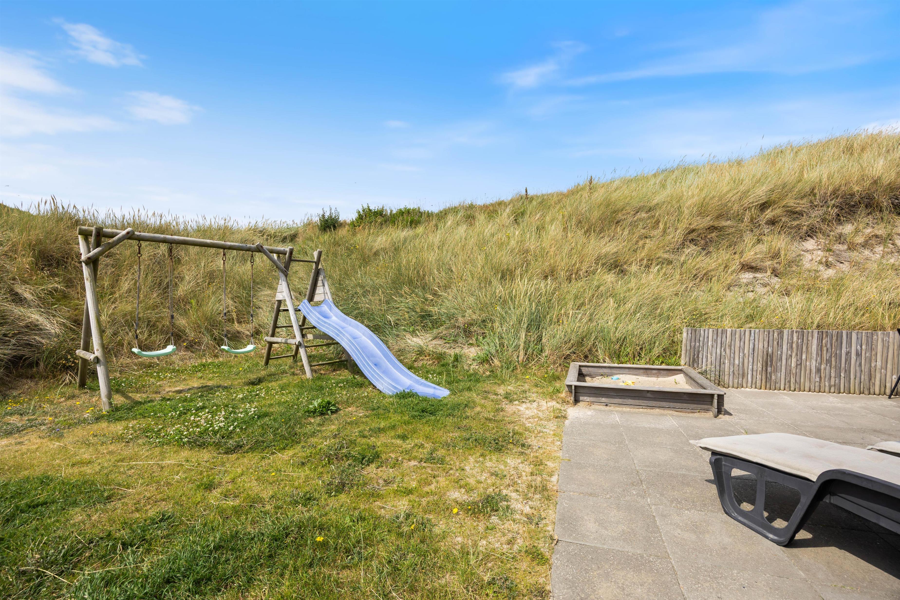 I finder også gynger og sandkasse til de mindste. Nyd en veltilberedt grillmiddag, mens I lytter til havets brusen og nyder aftensolens lune stråler. Det er rent velvære.