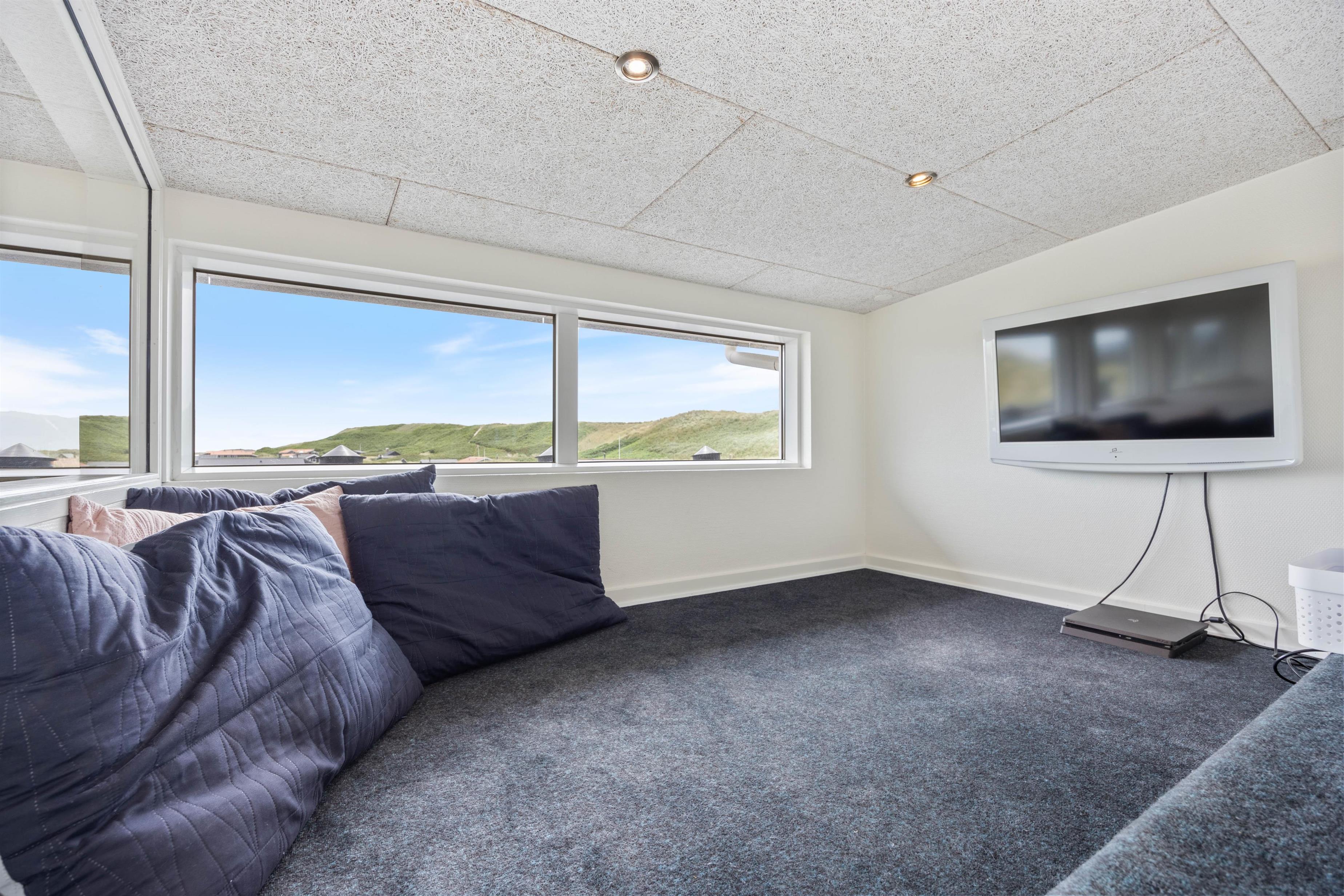 Det flotte poolområde er et sandt mekka for alle vandglade børn - og voksne. Den 18 kvadratmeter store pool er bygget i 2020 med en helt ny teknologi, som betyder, at poolen er godt isoleret og dermed har et meget lille varmeforbug. Er du ikke til den vilde leg i vandet, kan du nyde den store 7 personers-spa, mens du holder øje med børnene i poolen eller nyder det flotte klitlandskab lige uden for de store vinduer. Slap af og lad jer gennemvarme i saunaen efter al vandlegen.