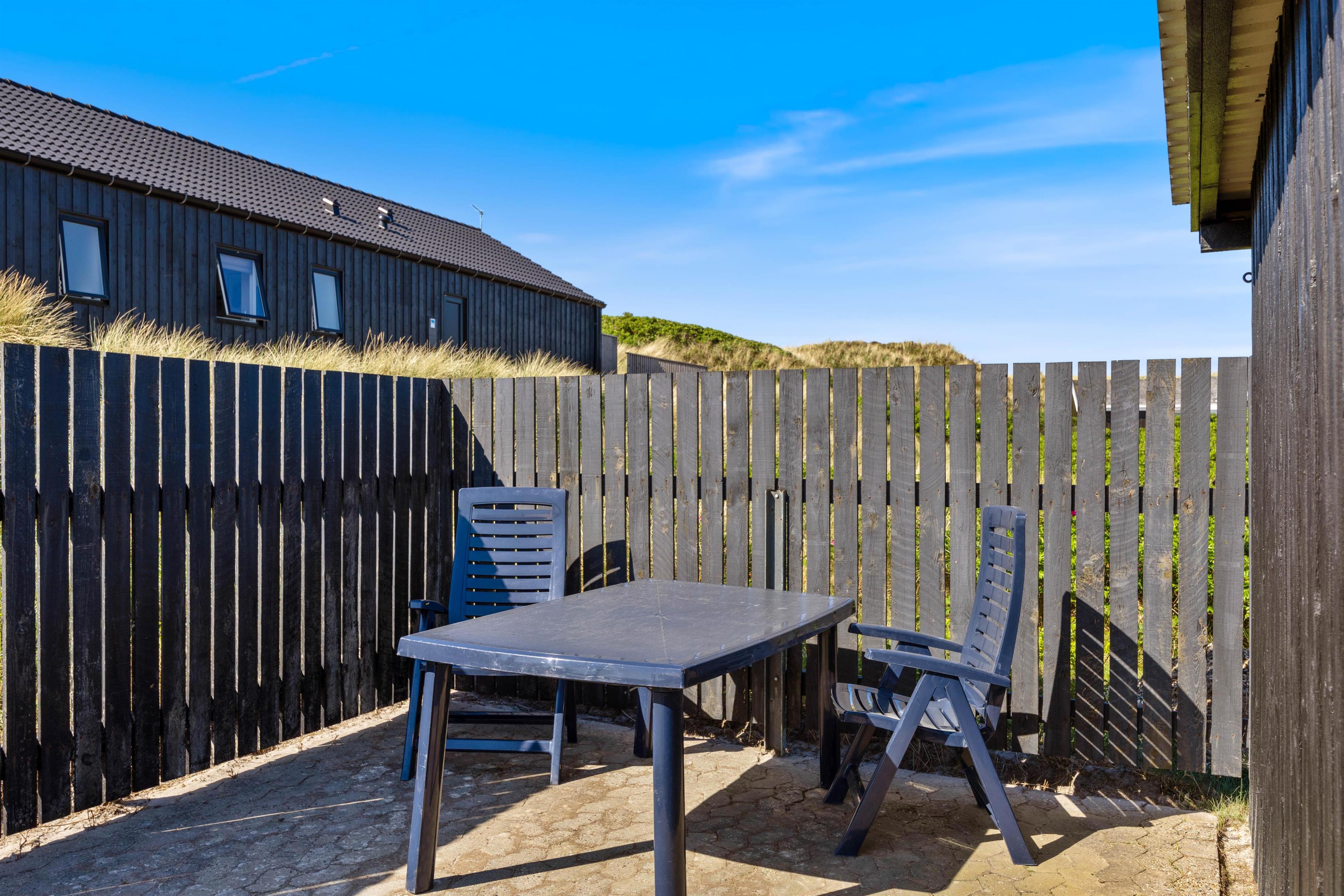 Og i læ af carporten har du også en skøn terrasse, hvor du kan sidde og nyde morgenkaffen – den perfekte start på en dejlig feriedag.