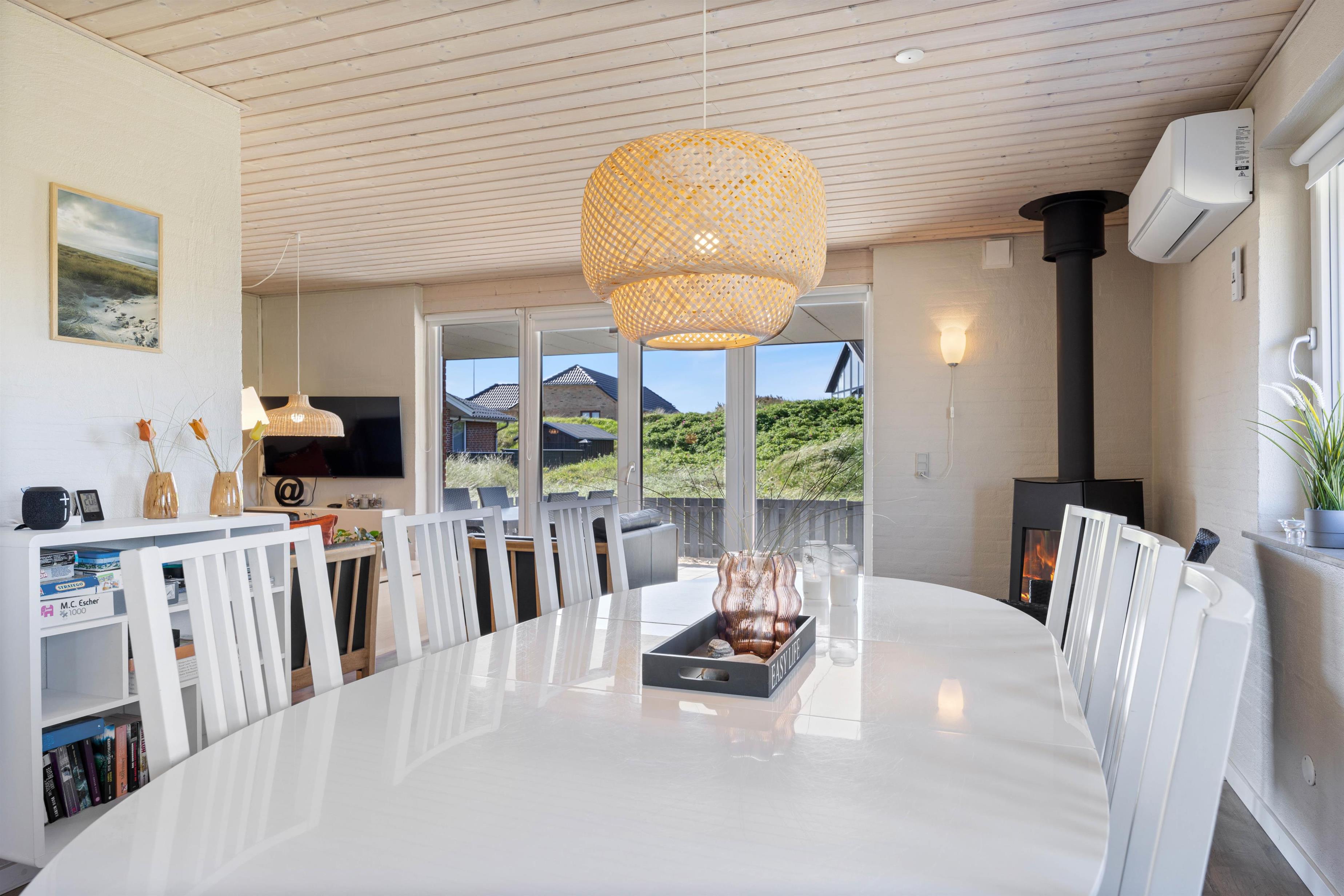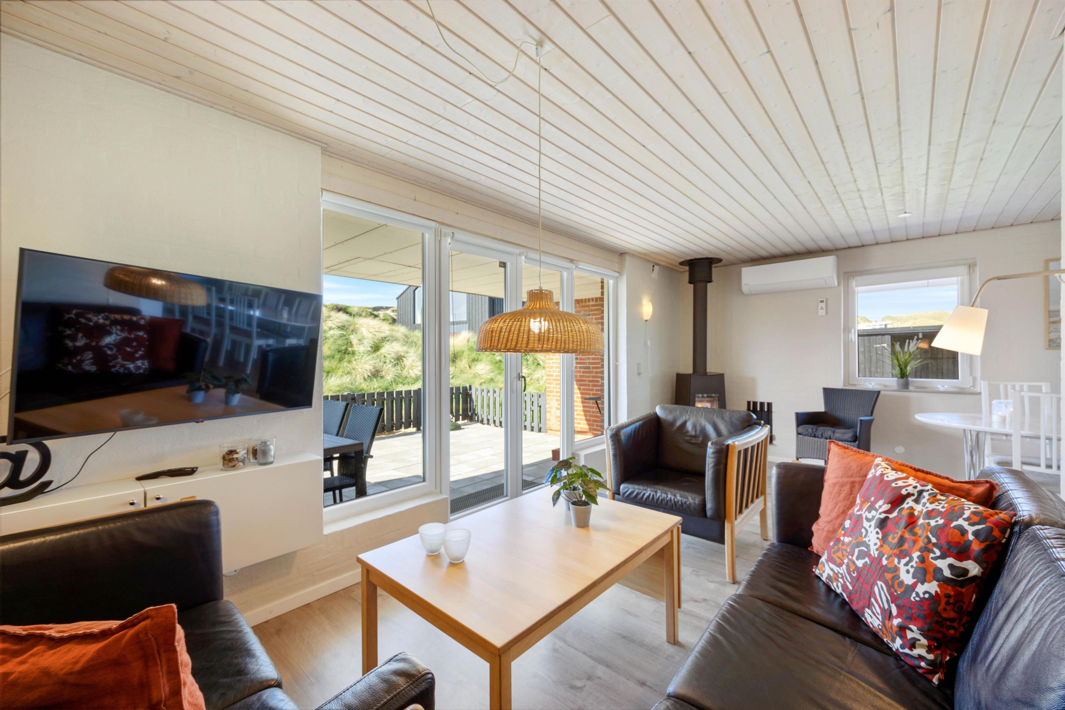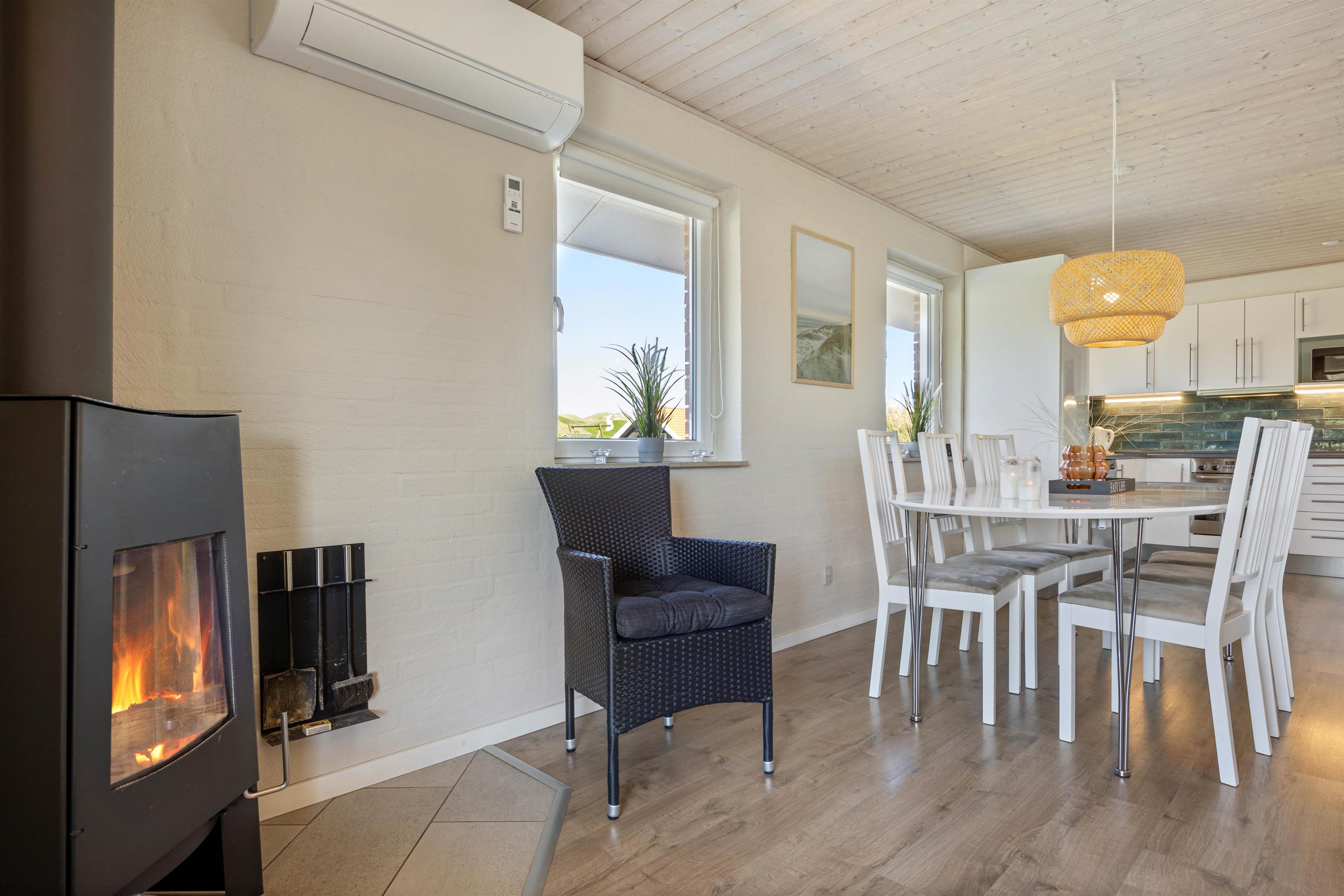 Et fint og hyggeligt feriehus, der er lyst og venligt indrettet, så du her kan slappe af og nyde tiden med dem, du holder allermest af. Tag plads i stuen og nyd udsigten til naturen omkring feriehuset, mens ilden fra brændeovnen knitrer i baggrunden.