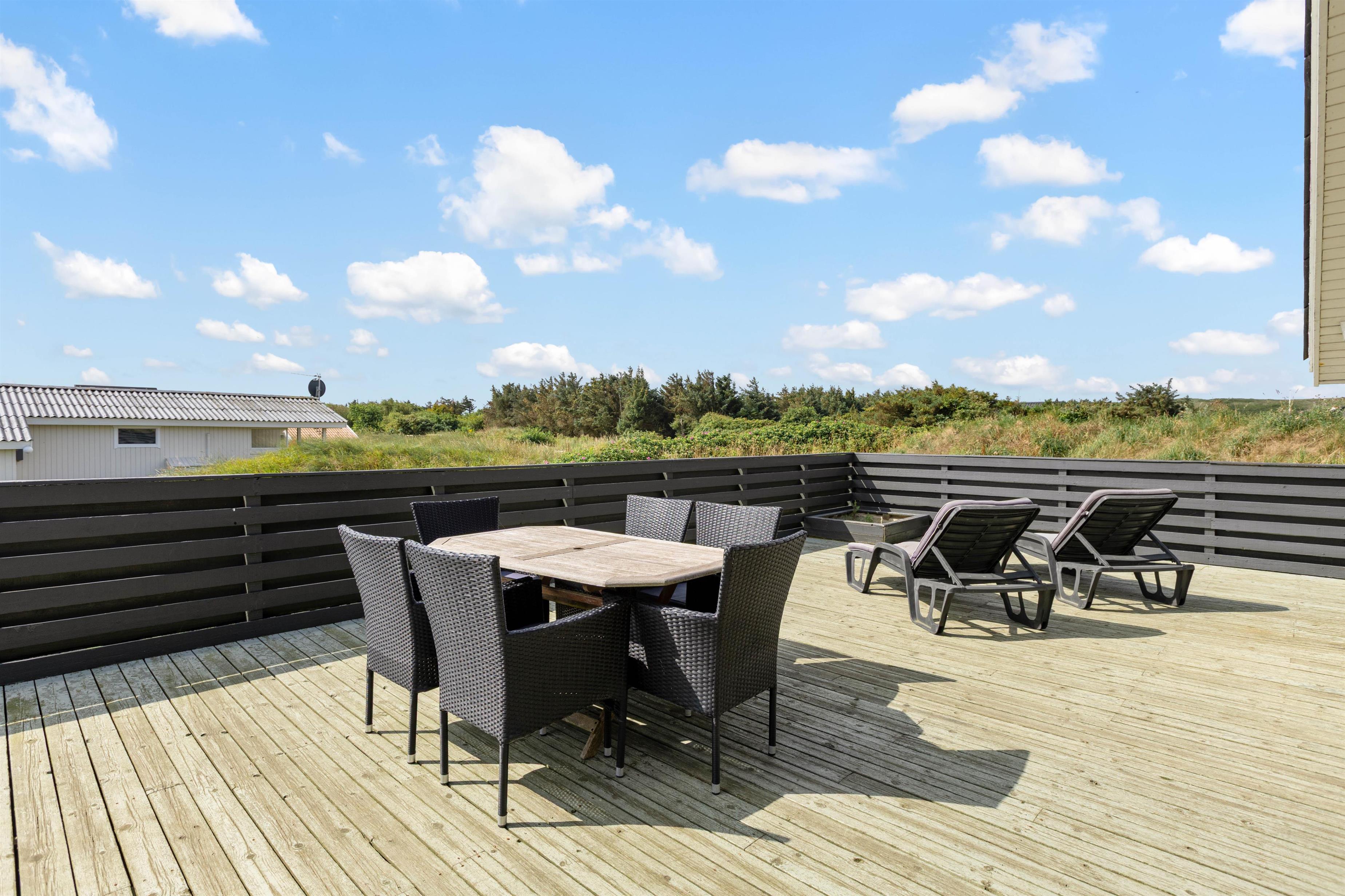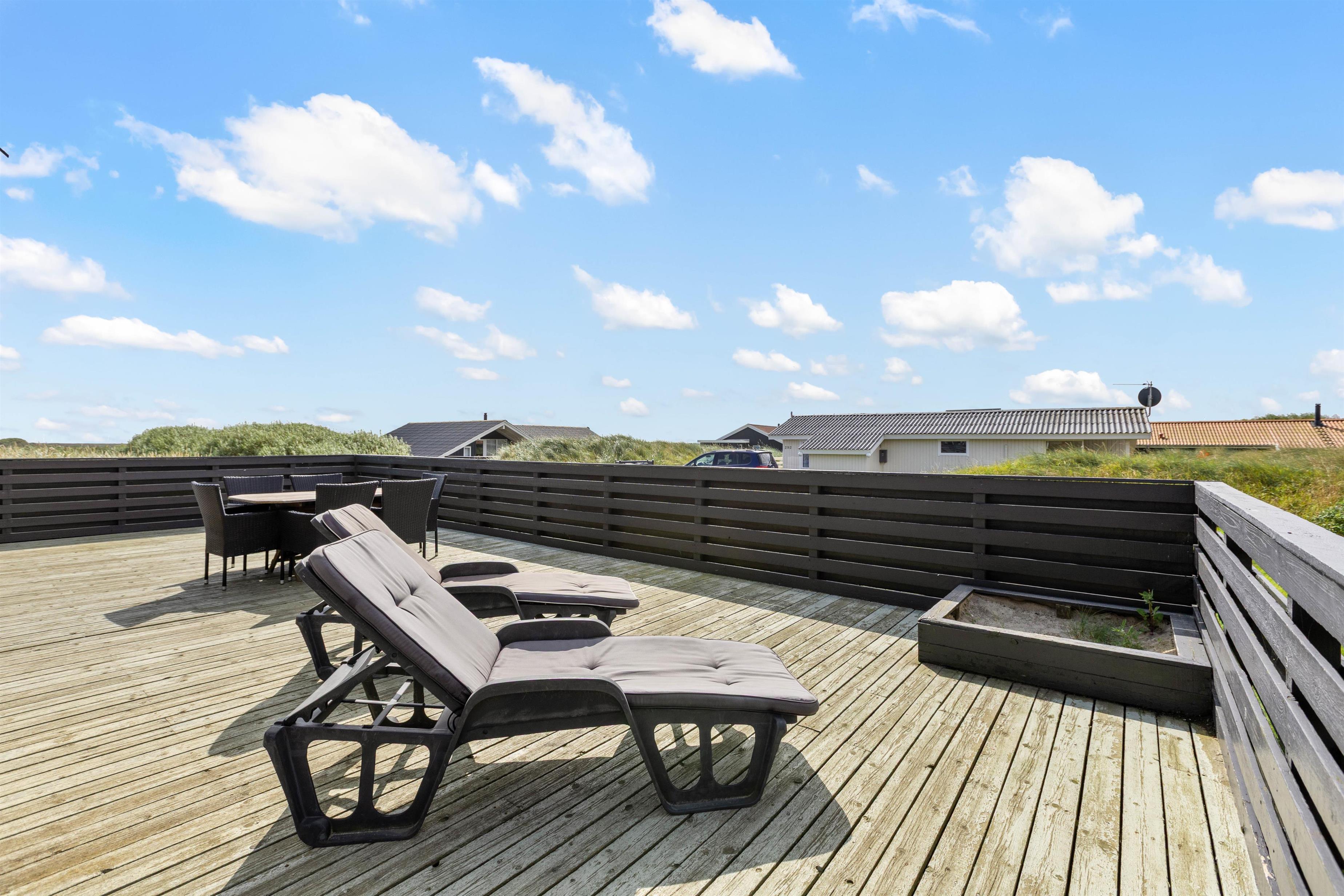 Den store terrasse med integreret sandkasse er helt lukket og egner sig derfor perfekt til børnene eller familiens hund. Her kan de få lov at lege frit, mens I slapper af og nyder solen. På det store grundstykke er der rigeligt plads til familiens mindste. Der kan evt. spilles bold eller kongespil, imens maden tilberedes på grillen.