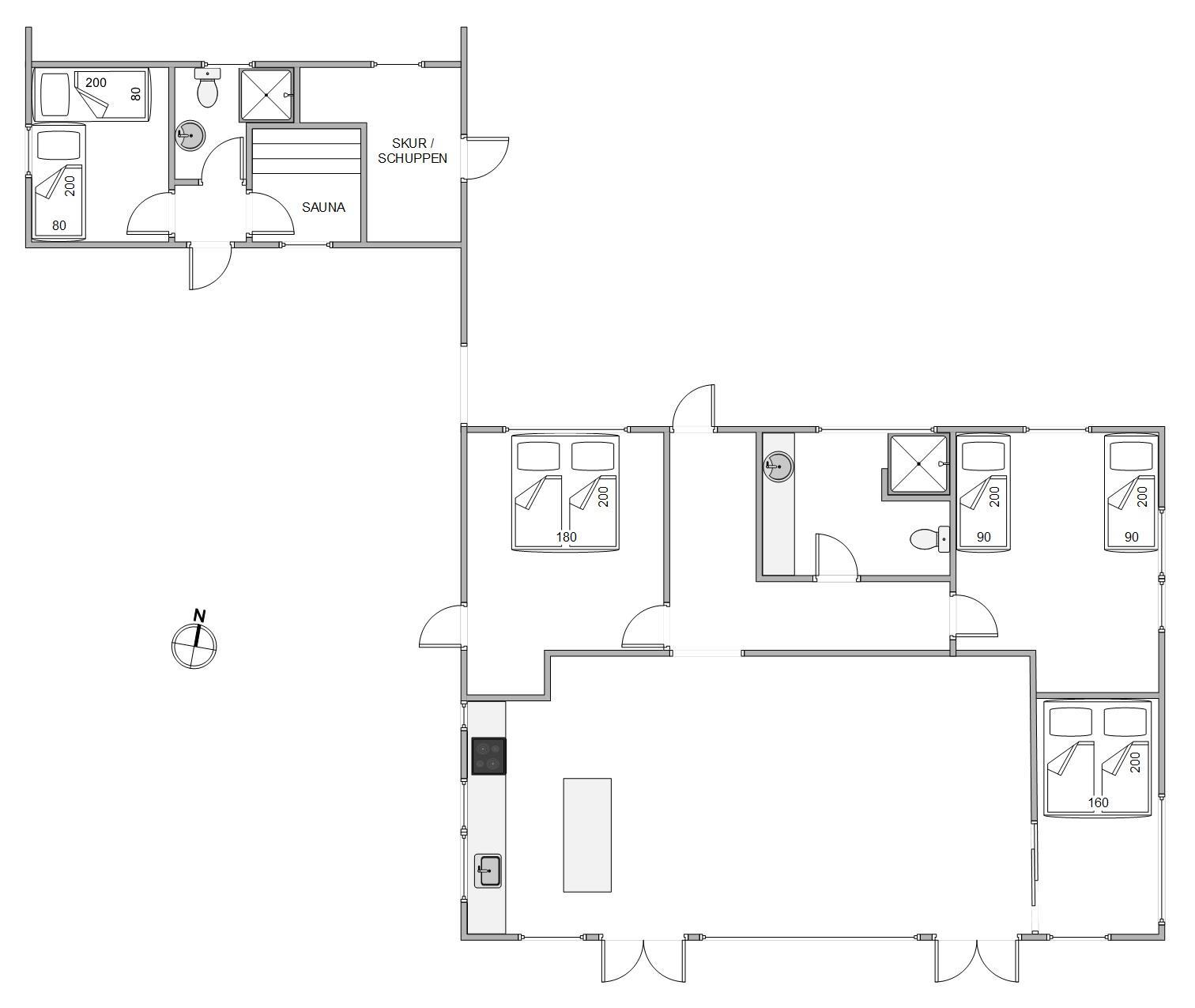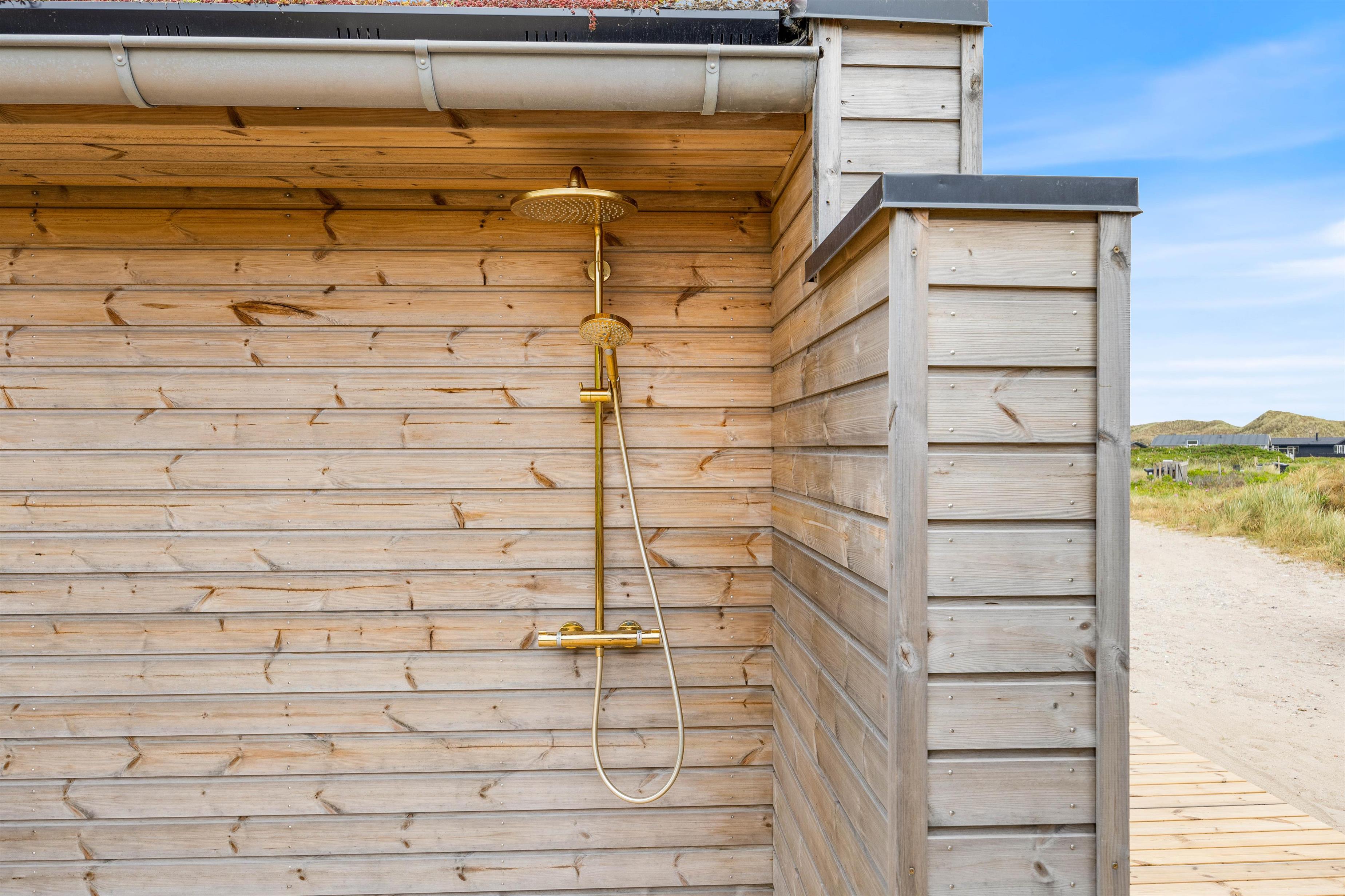 Derudover er der både udesauna og en udebruser, så I kan få et frisk og køligt skyl efterfulgt af en opvarmning i udesaunaen. I kan selvfølgelig også benytte udebruseren til at få skyllet fødderne for sand efter en hyggelig dag ved stranden, som ligger blot 100 meter fra sommerhuset. I skal dog være opmærksomme på, at udebruseren kun er tilgængelig fra april til november.