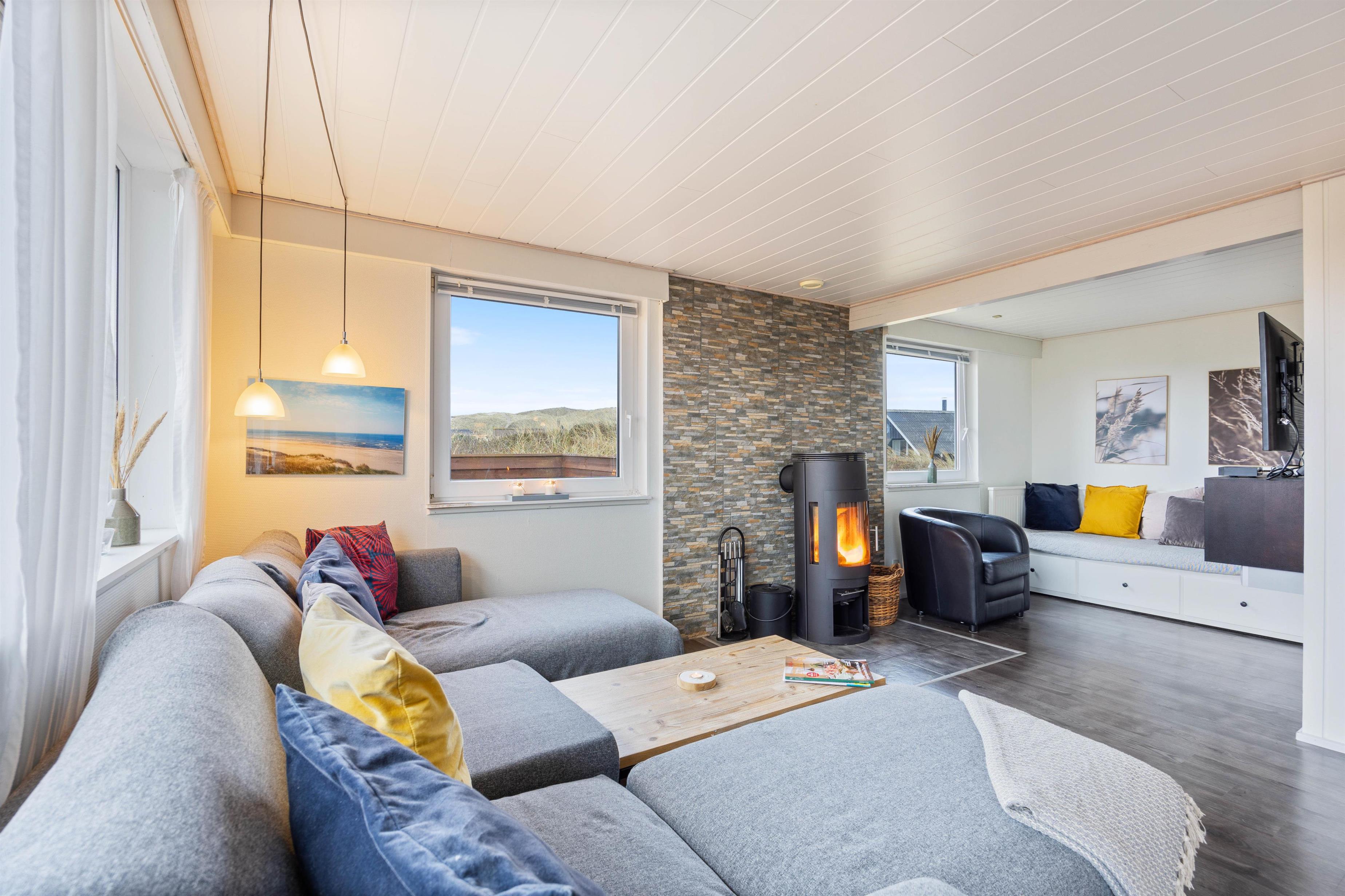 Feriehuset blev bygget tilbage i 1976, og senere hen, i 2020, blev det renoveret. De hvide loftbrædder og den flotte indretning sætter hyggelige rammer til jeres ferie. Hold en hyggelig spilleaften i sofaen, mens I hører brændeovnens knitren i baggrunden.
