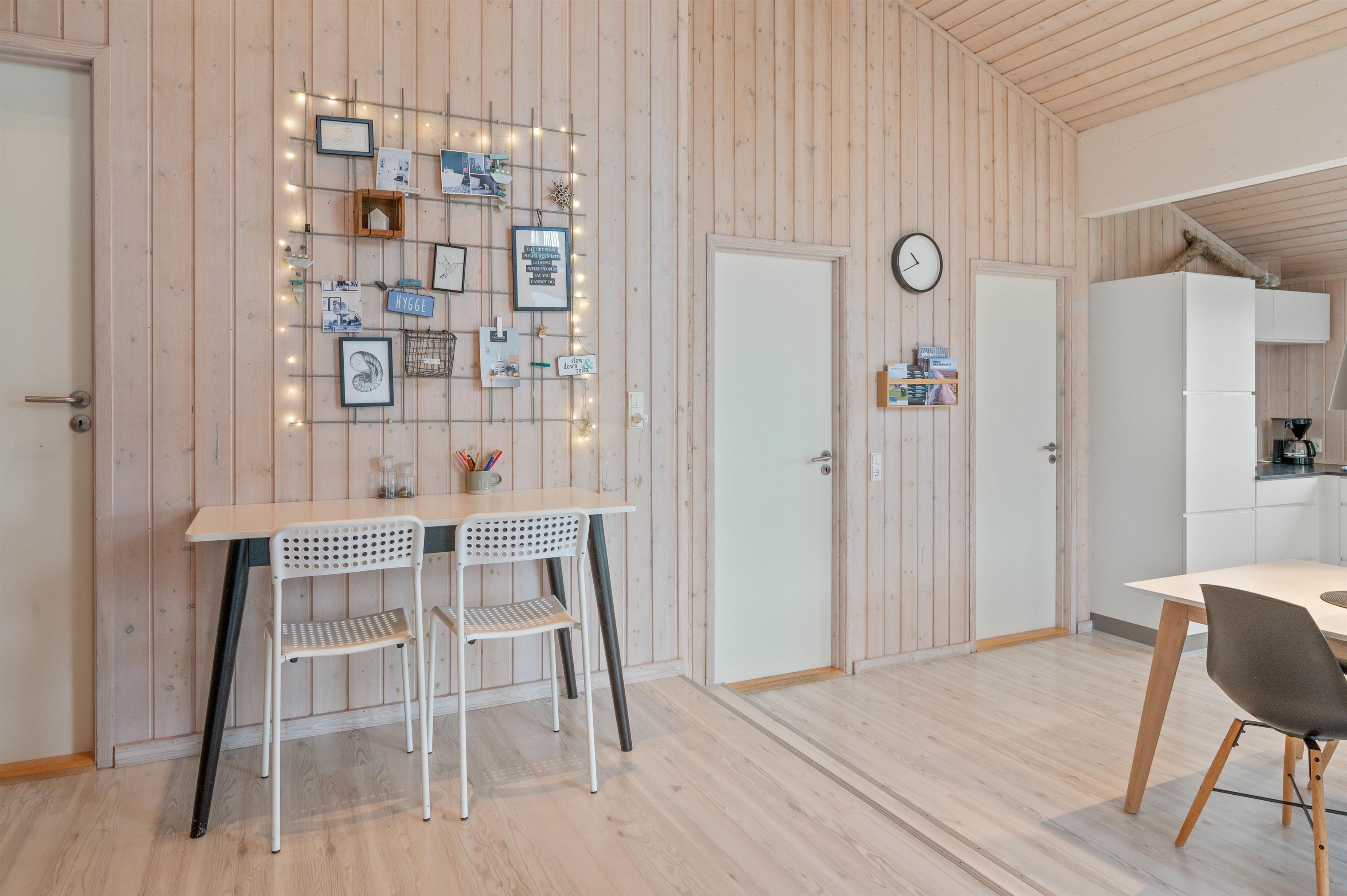 Spændende træferiehus, beliggende midt i det fantastiske klitlandskab, på Mettes Bjerg 1C i Årgab. Fra huset er der den mest fabelagtige udsigt til fjorden fra den lille hyggelige altan på 1. sal. Hvide Sande ligger kun 3 km væk, så her er virkelig alle muligheder for en skøn ferie, ligegyldigt om man er er til hav, fjord, smukt klitlandskab – eller til det aktive liv i Hvide Sande by.