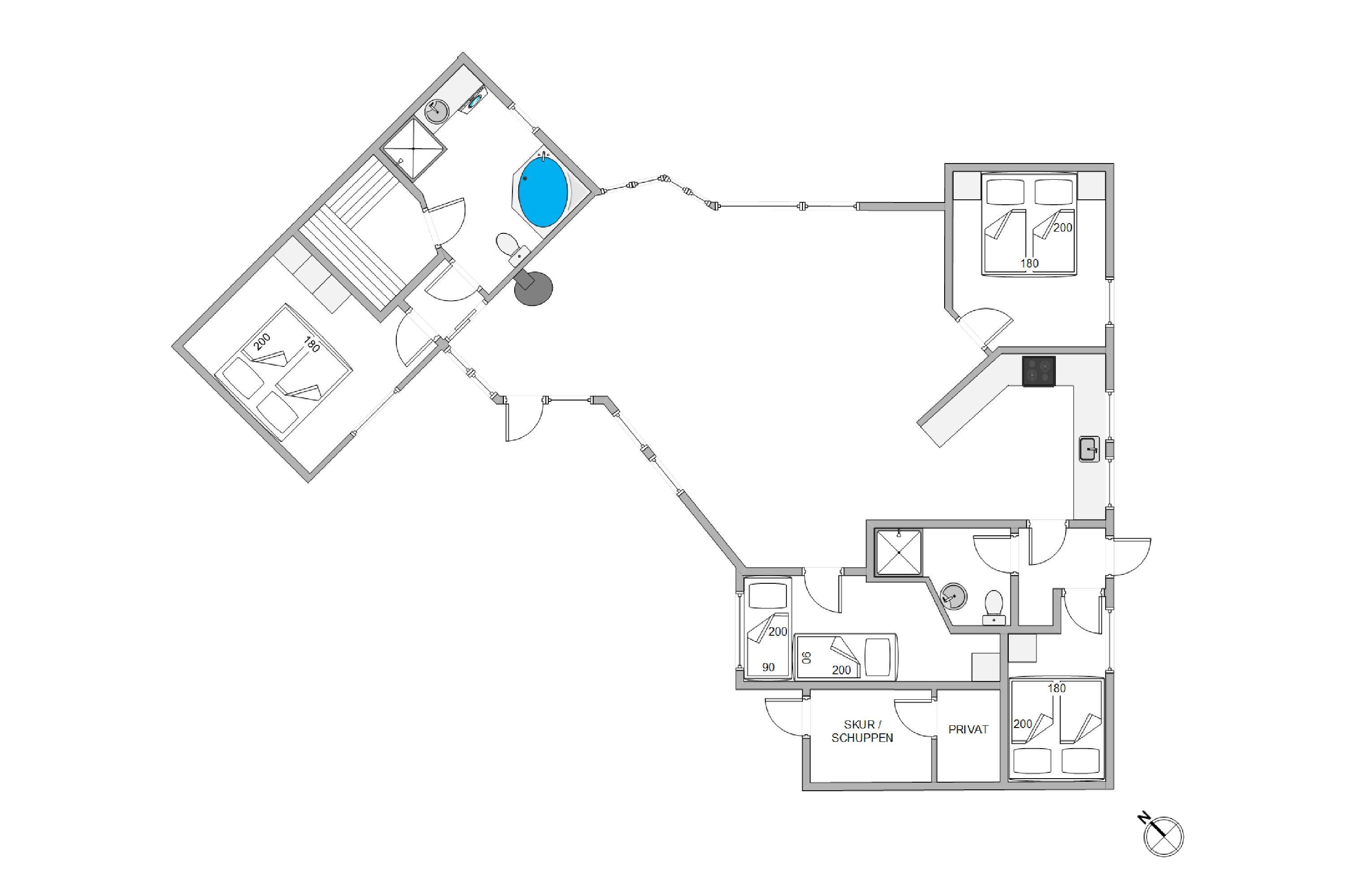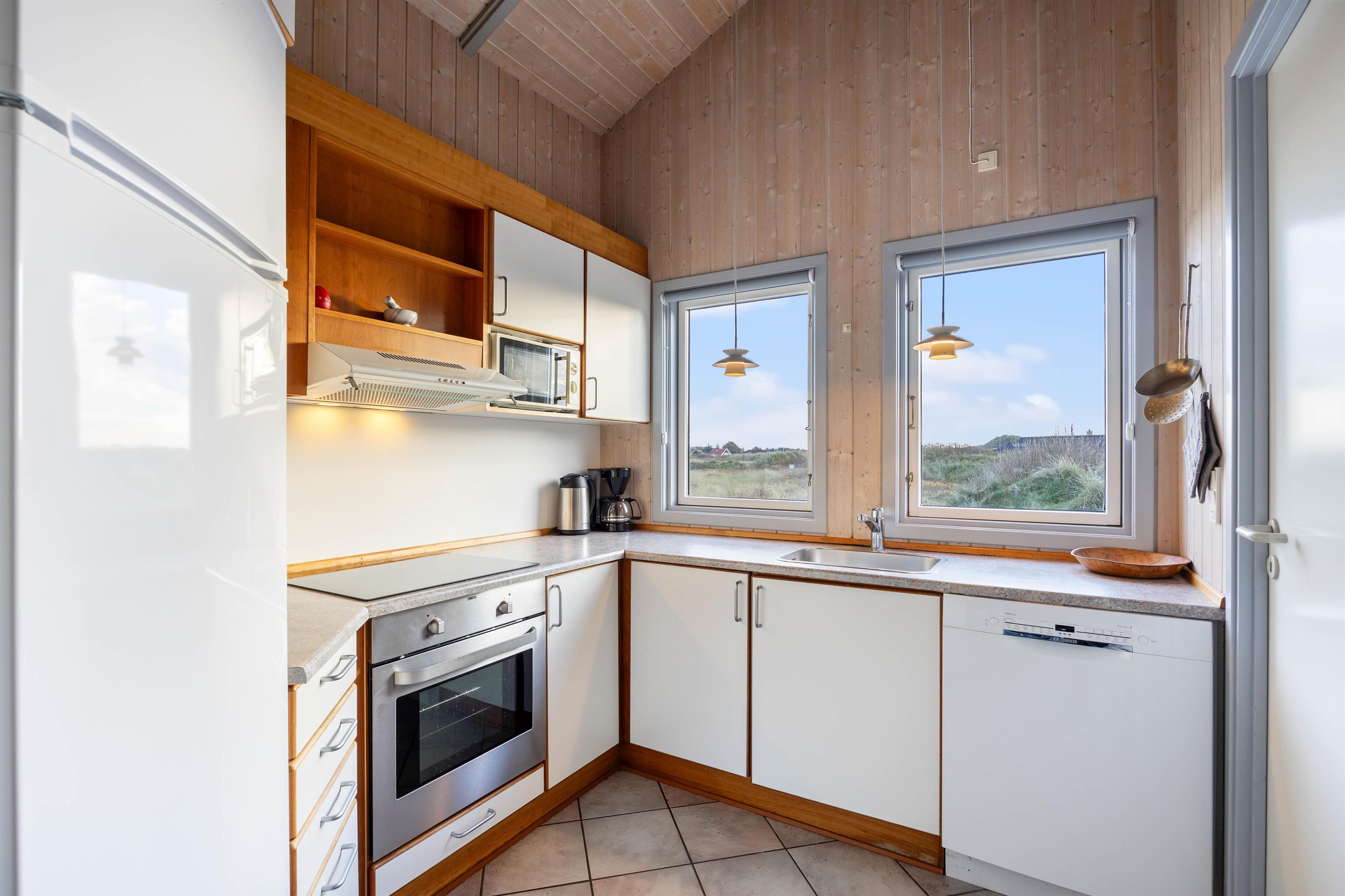 Der er 4 soveværelser i huset. 3 af værelserne er med dobbeltseng, og på det sidste værelse er der 2 enkeltsenge. Der er 2 badeværelser gulvvarme og bruseniche. På det store badeværelse er der endvidere en hjørnespa til 2 personer, en vaskemaskine og en sauna. Køkkenet er bl.a. udstyret med en opvaskemaskine og en mikroovn. Stuen er placeret midt i huset, og har store vinduespartier ud mod det smukke klitlandskab mod sydvest. Her er der en brændeovn, et fladskærms-TV, DVD-afspiller, radio m/CD-afspiller og gratis trådløst internet. Det er tilladt at medbringe 2 hunde.